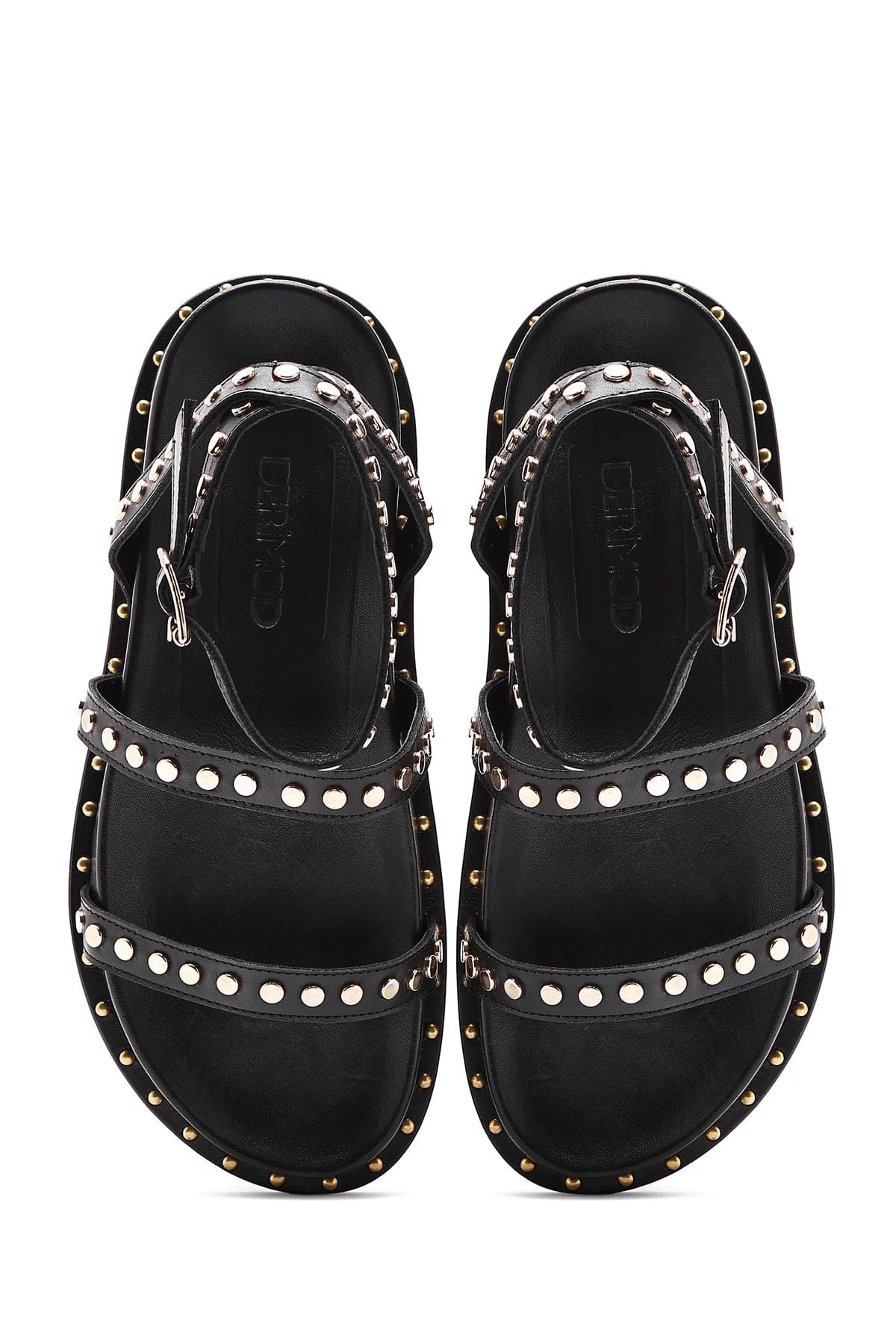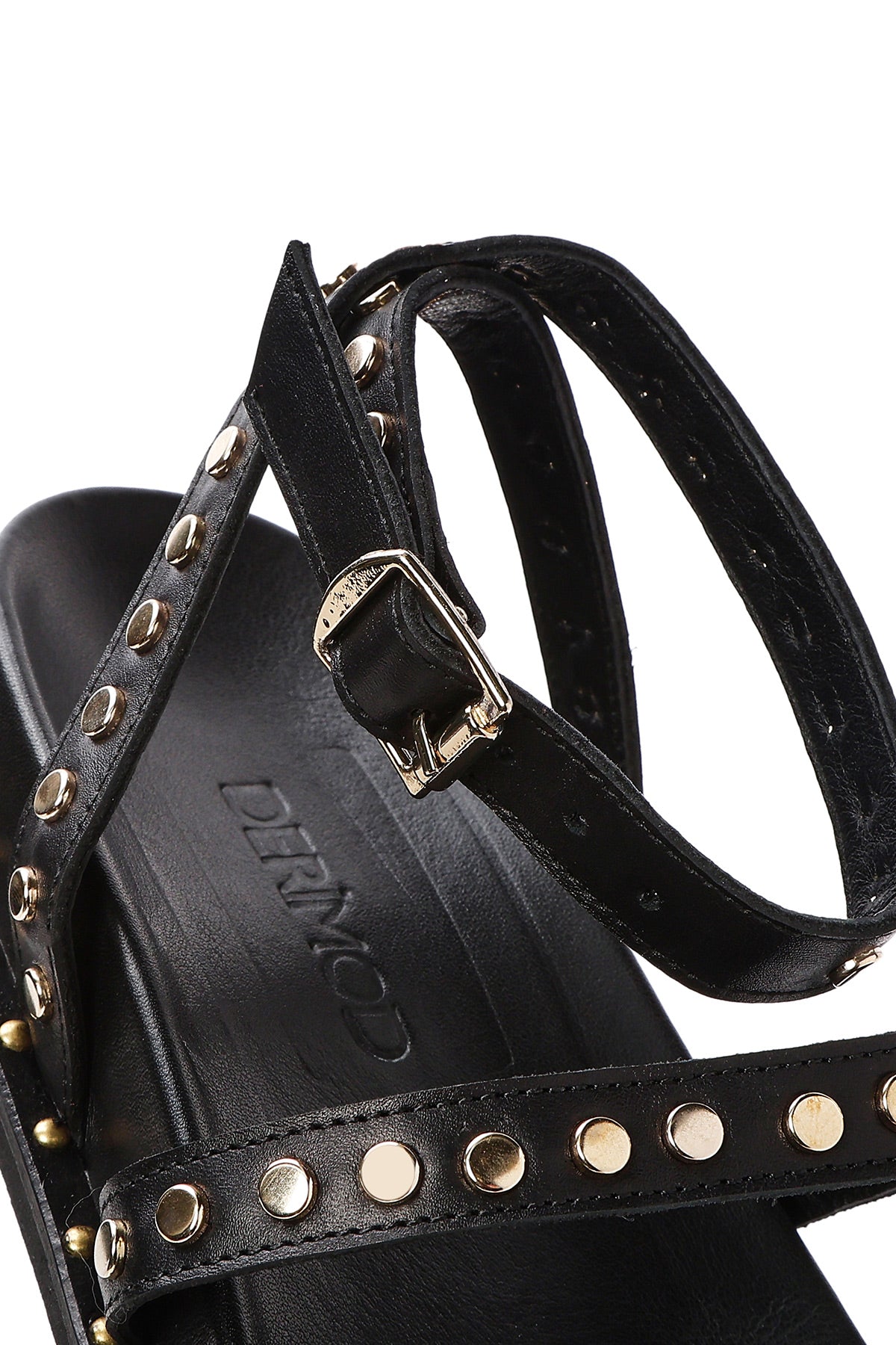 صندل زنانه مشکی چرم بنددار با جزئیات فلزی دری مد