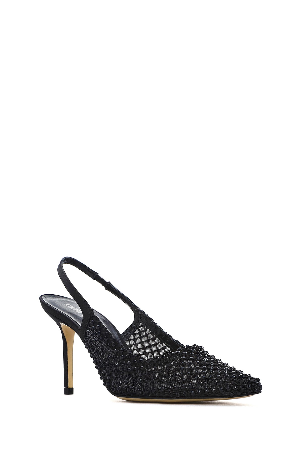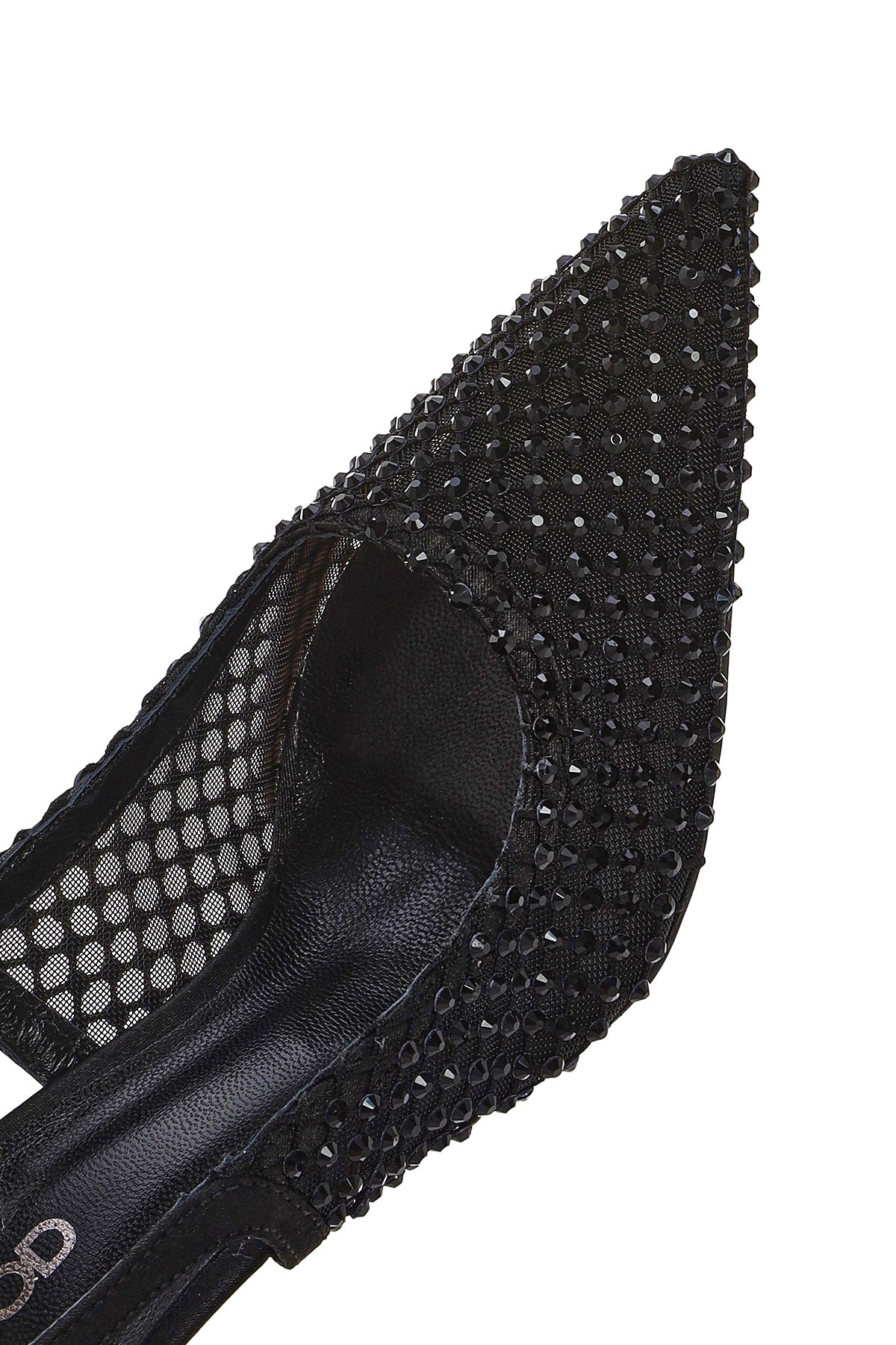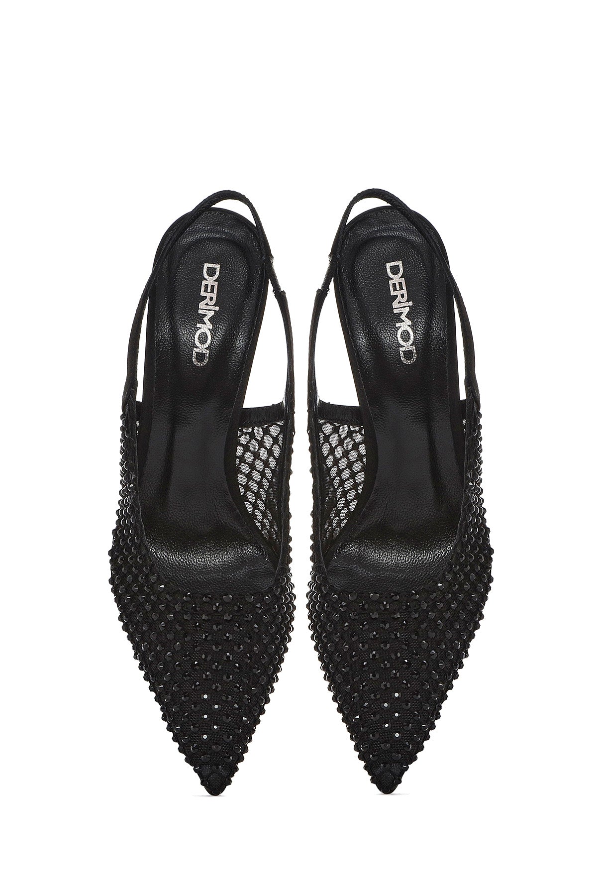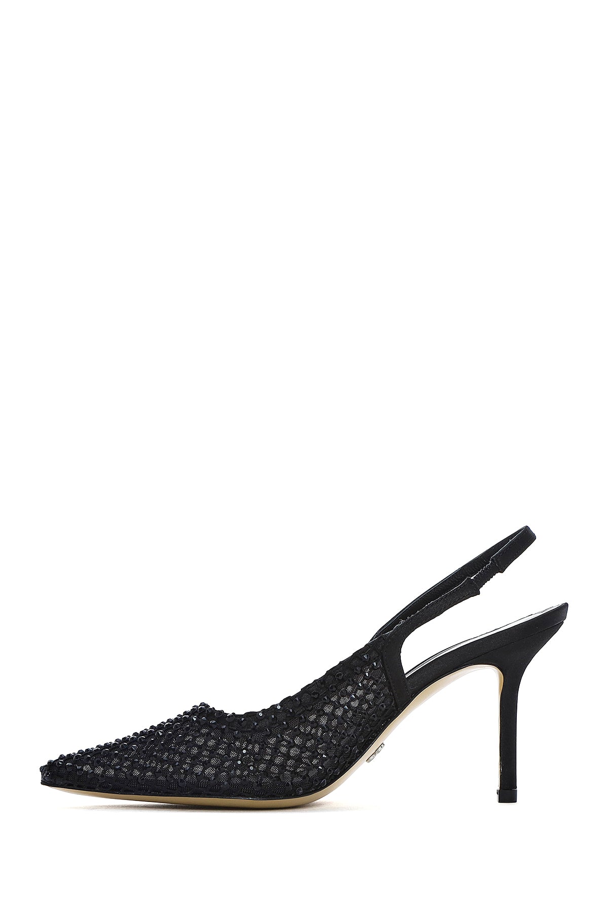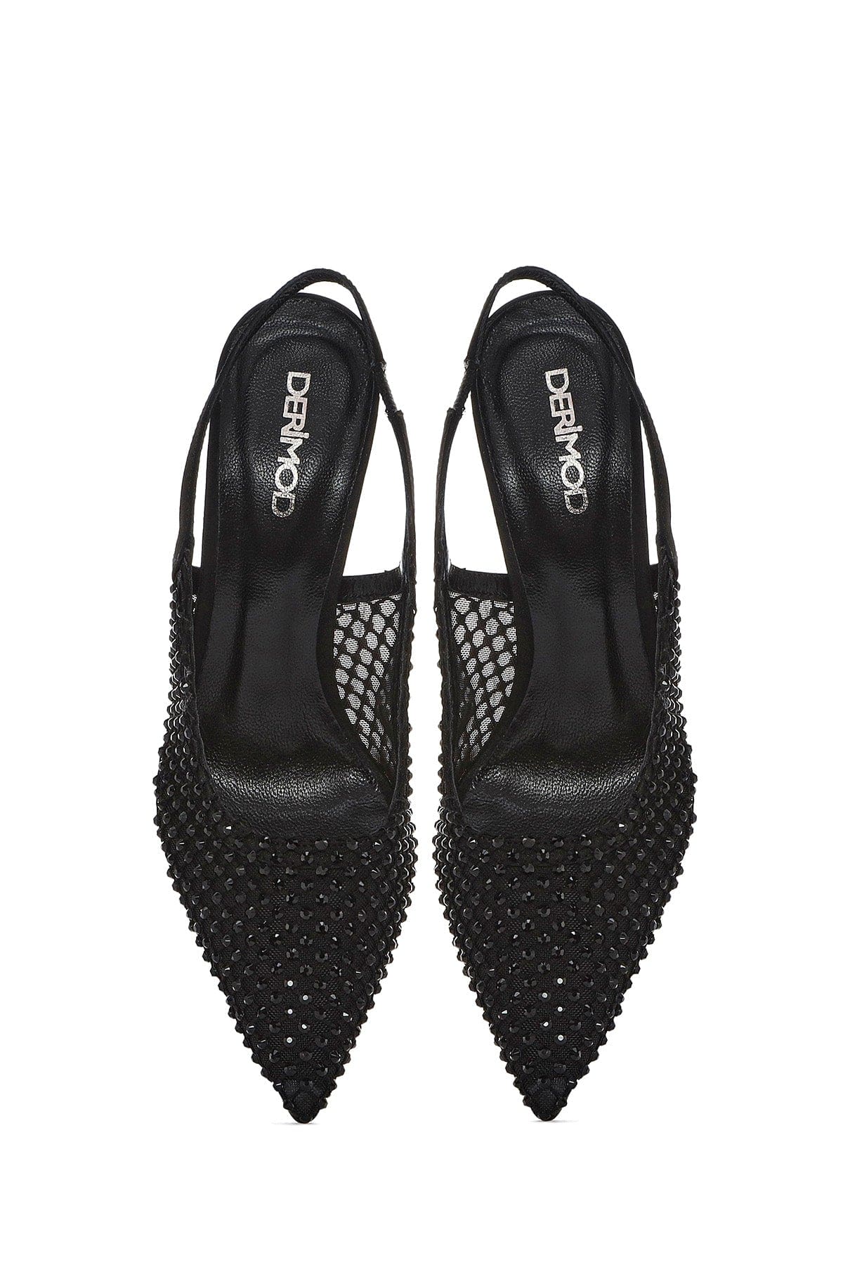 Kadın Siyah Taşlı Arkası Açık İnce Topuklu Deri Ayakkabı