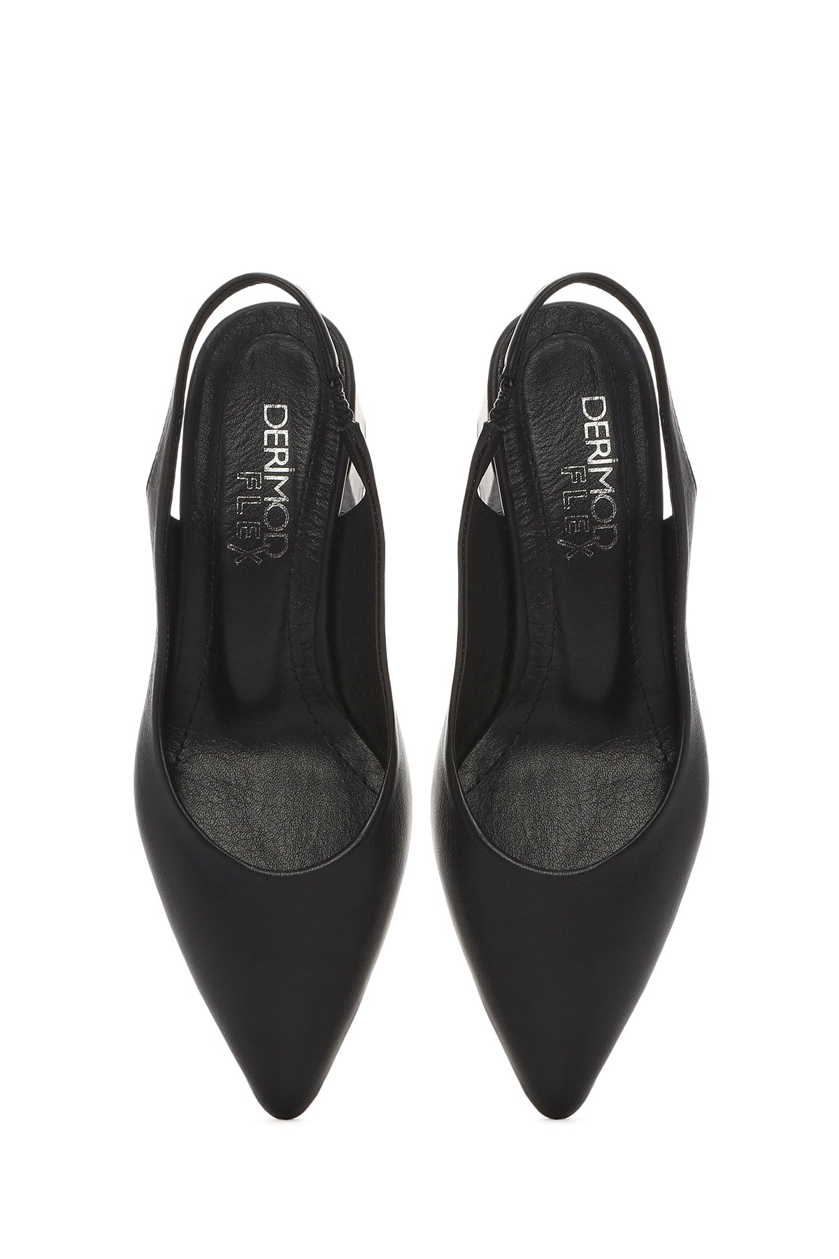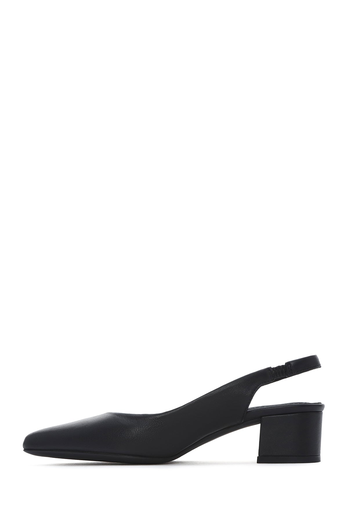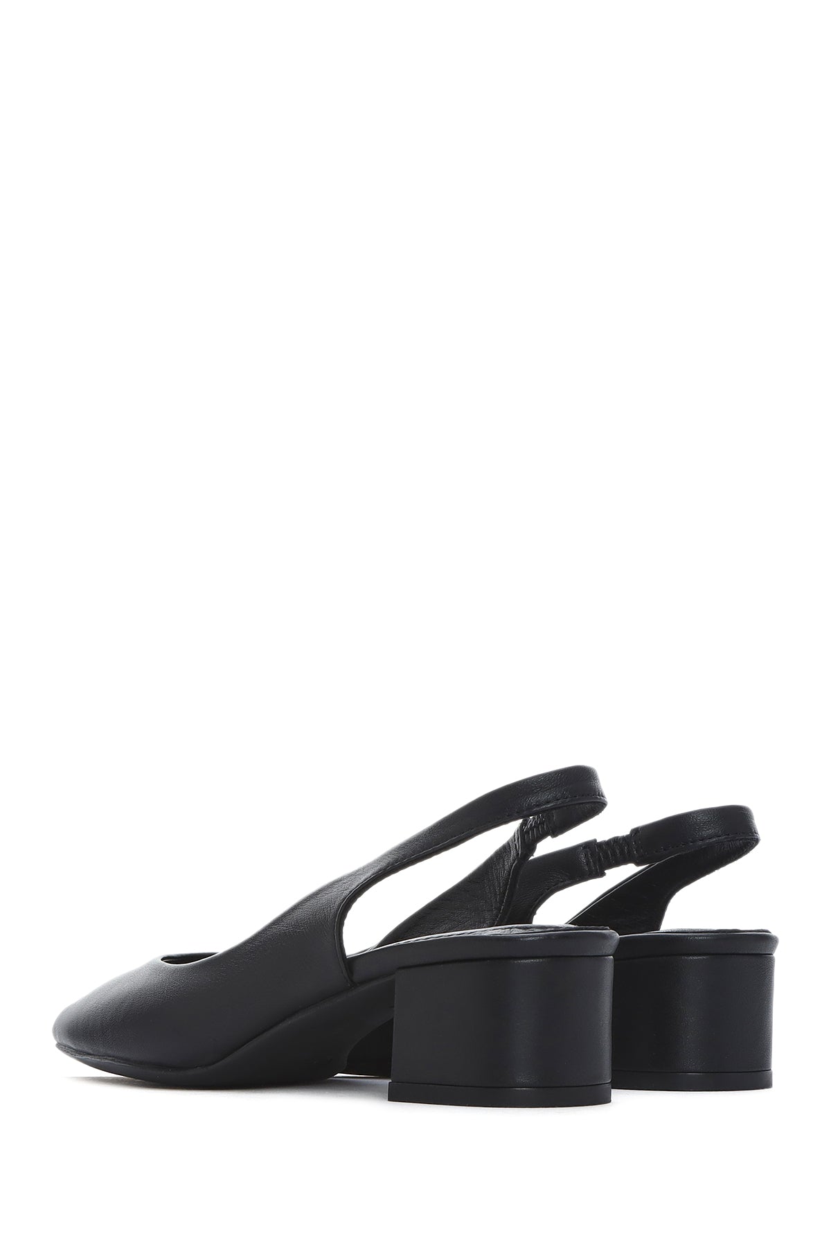 Kadın Siyah Arkası Açık Kalın Kısa Topuklu Deri Ayakkabı