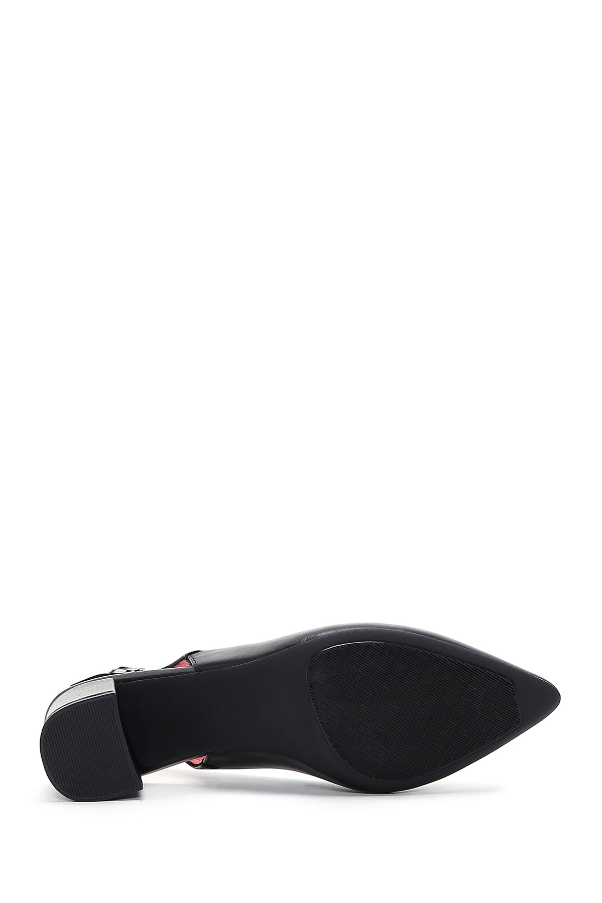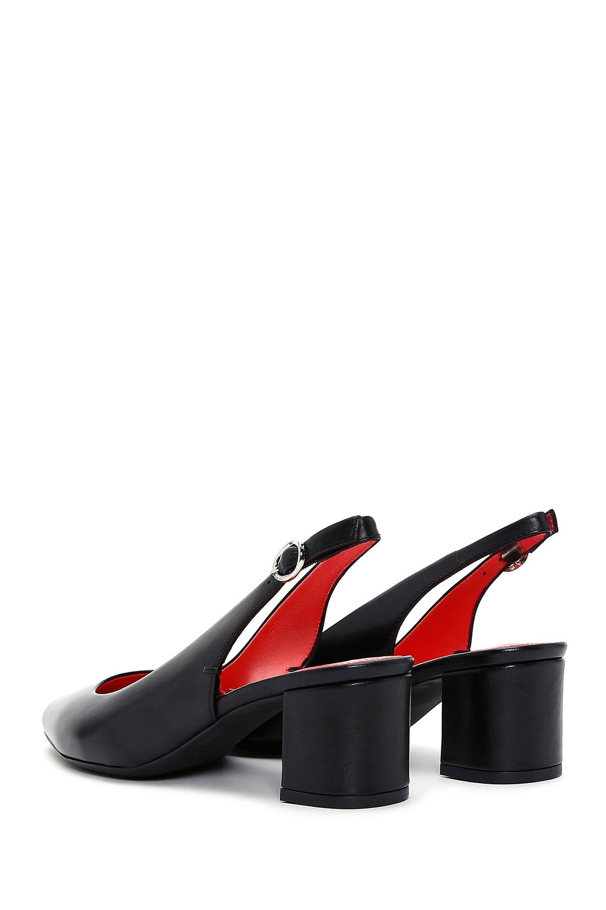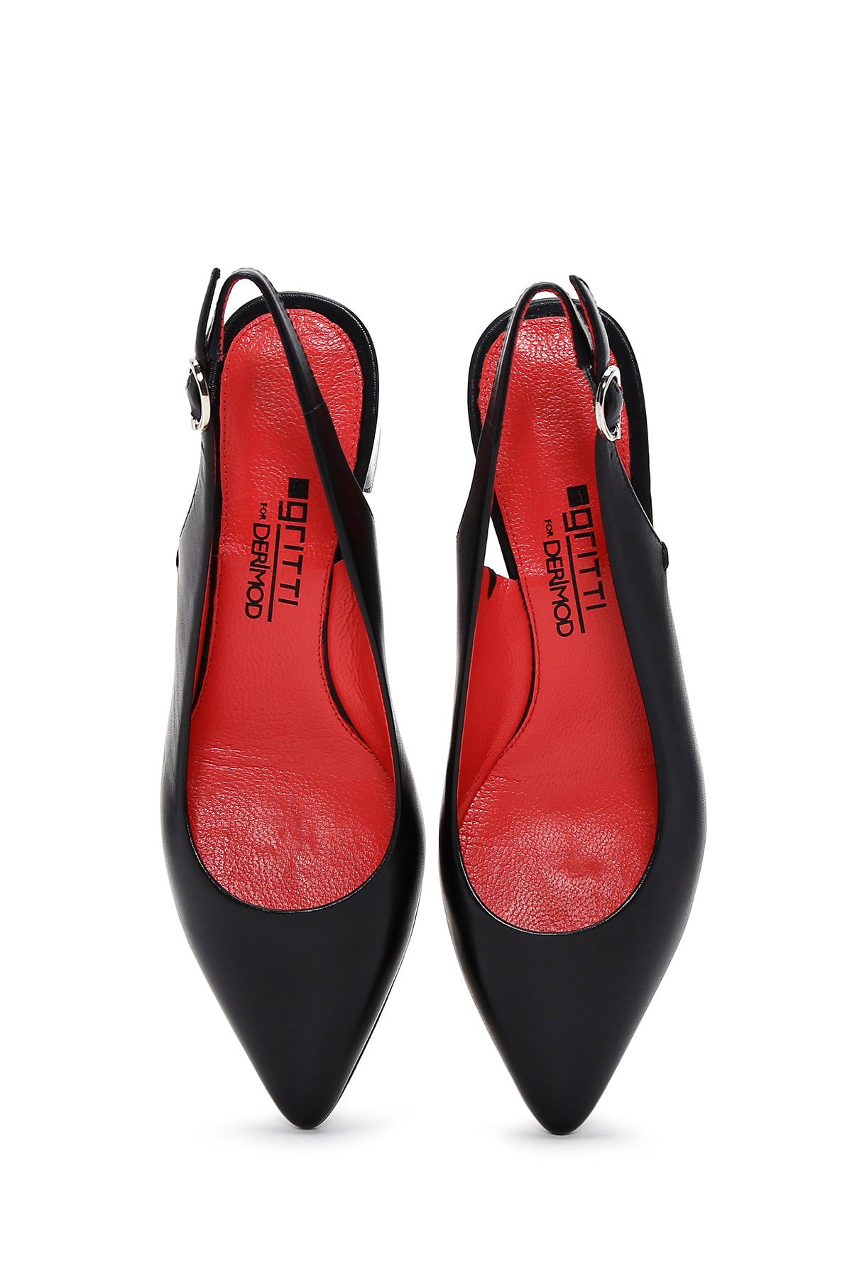 Derimod Gritti Kadın Siyah Arkası Açık Kısa Kalın Topuklu Deri Ayakkabı