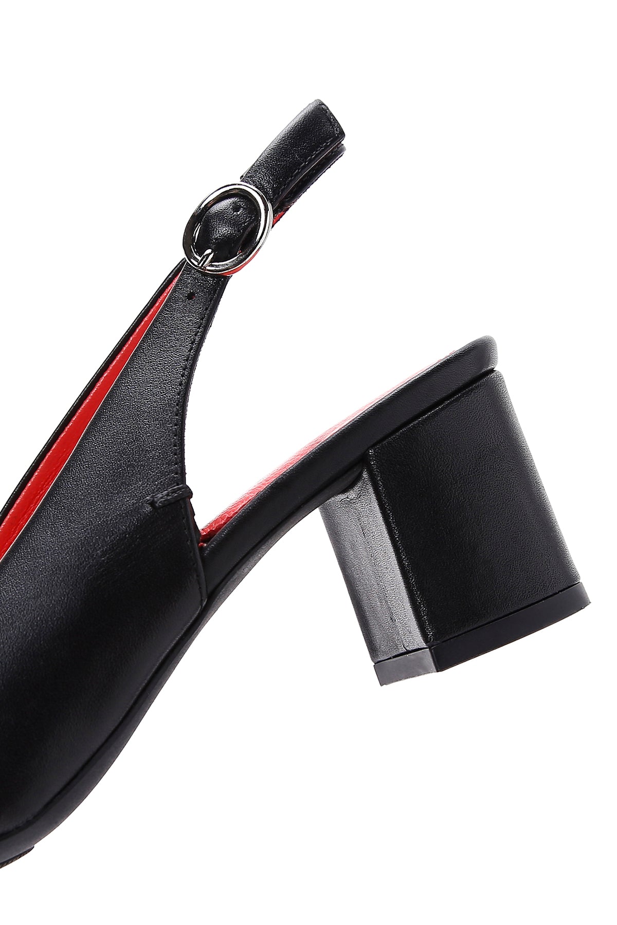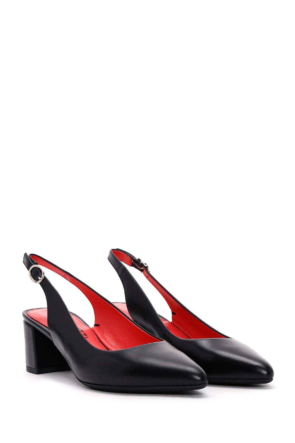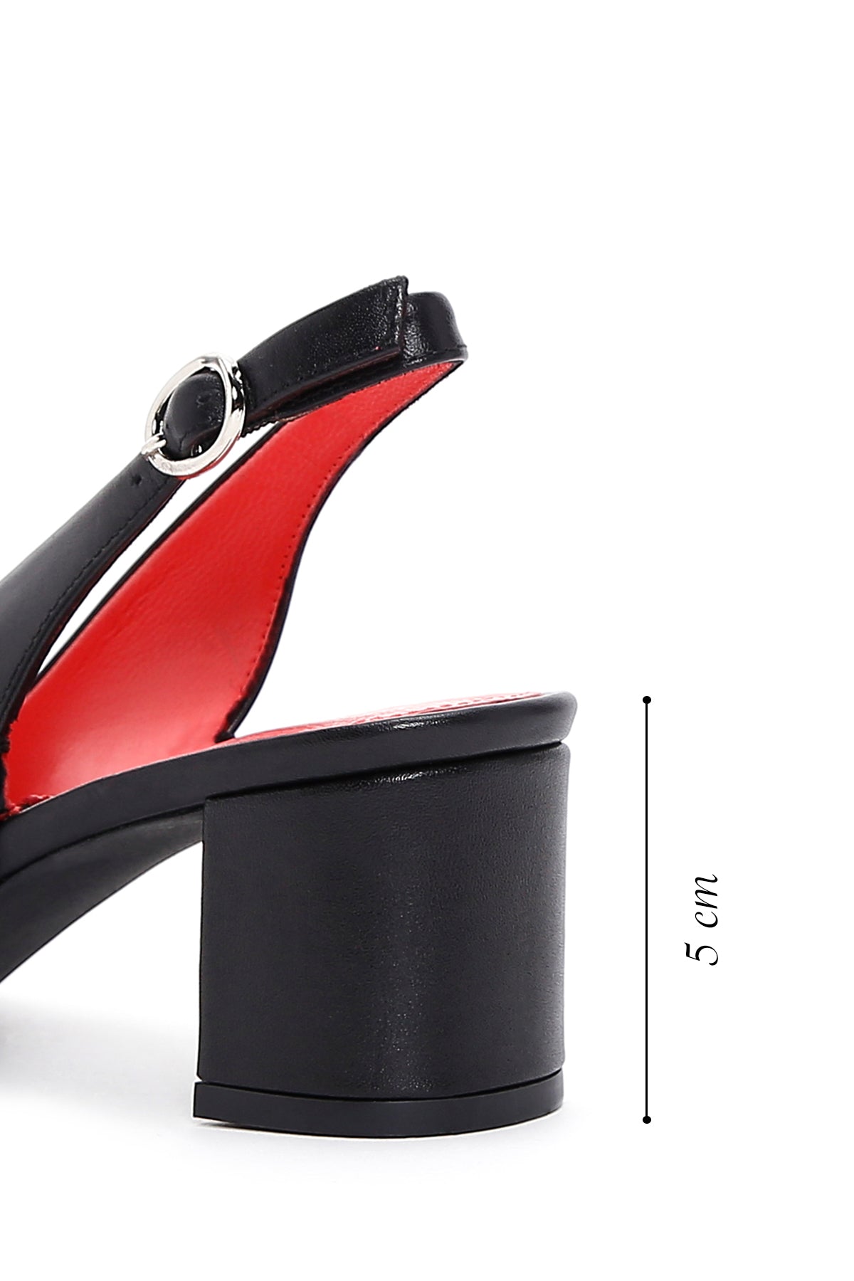 Derimod Gritti Kadın Siyah Arkası Açık Kısa Kalın Topuklu Deri Ayakkabı