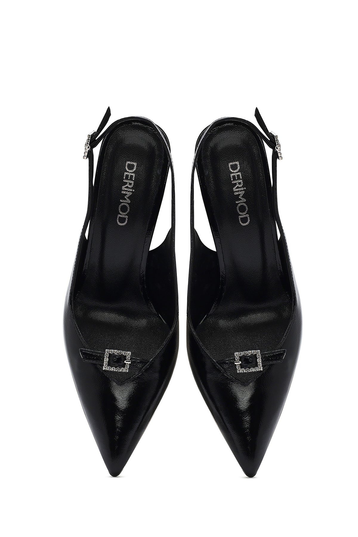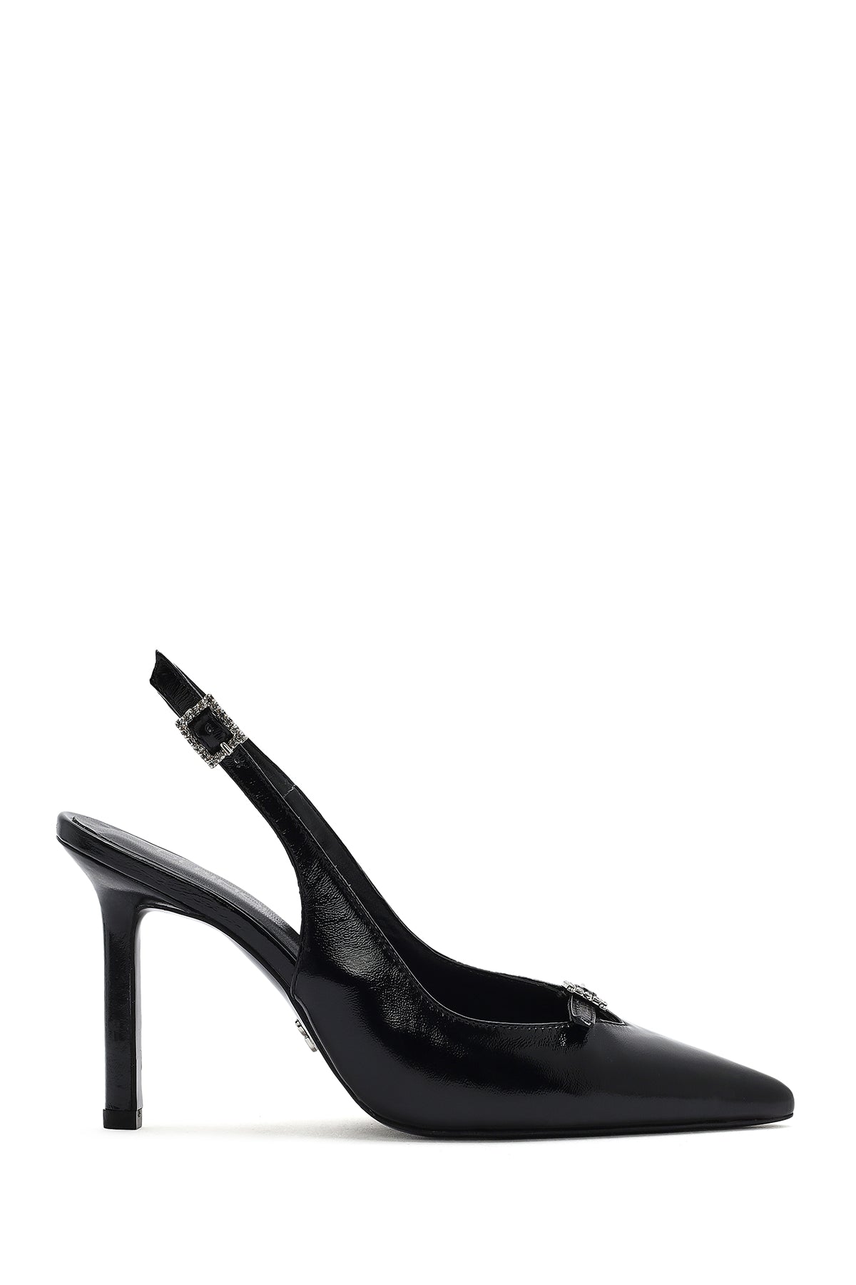 Kadın Siyah Bilekten Tokalı Arkası Açık İnce Topuklu Deri Ayakkabı