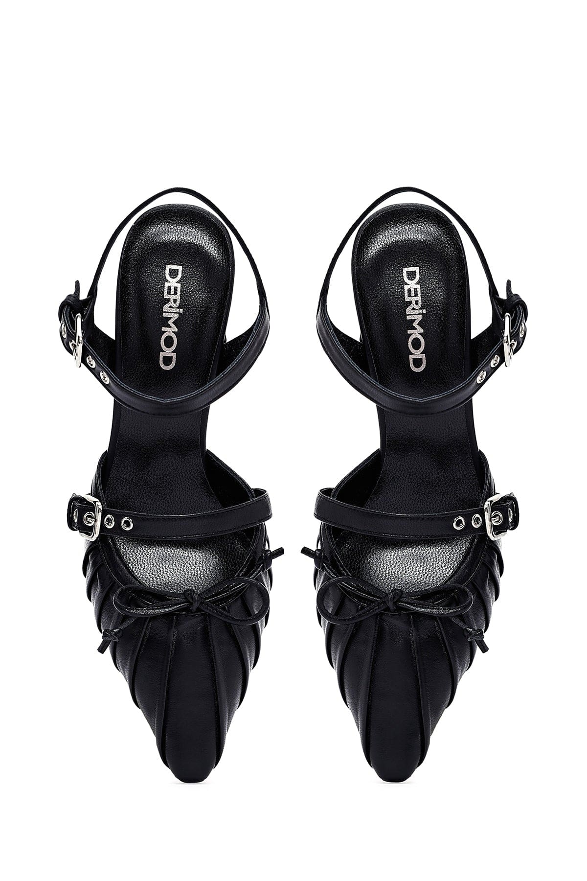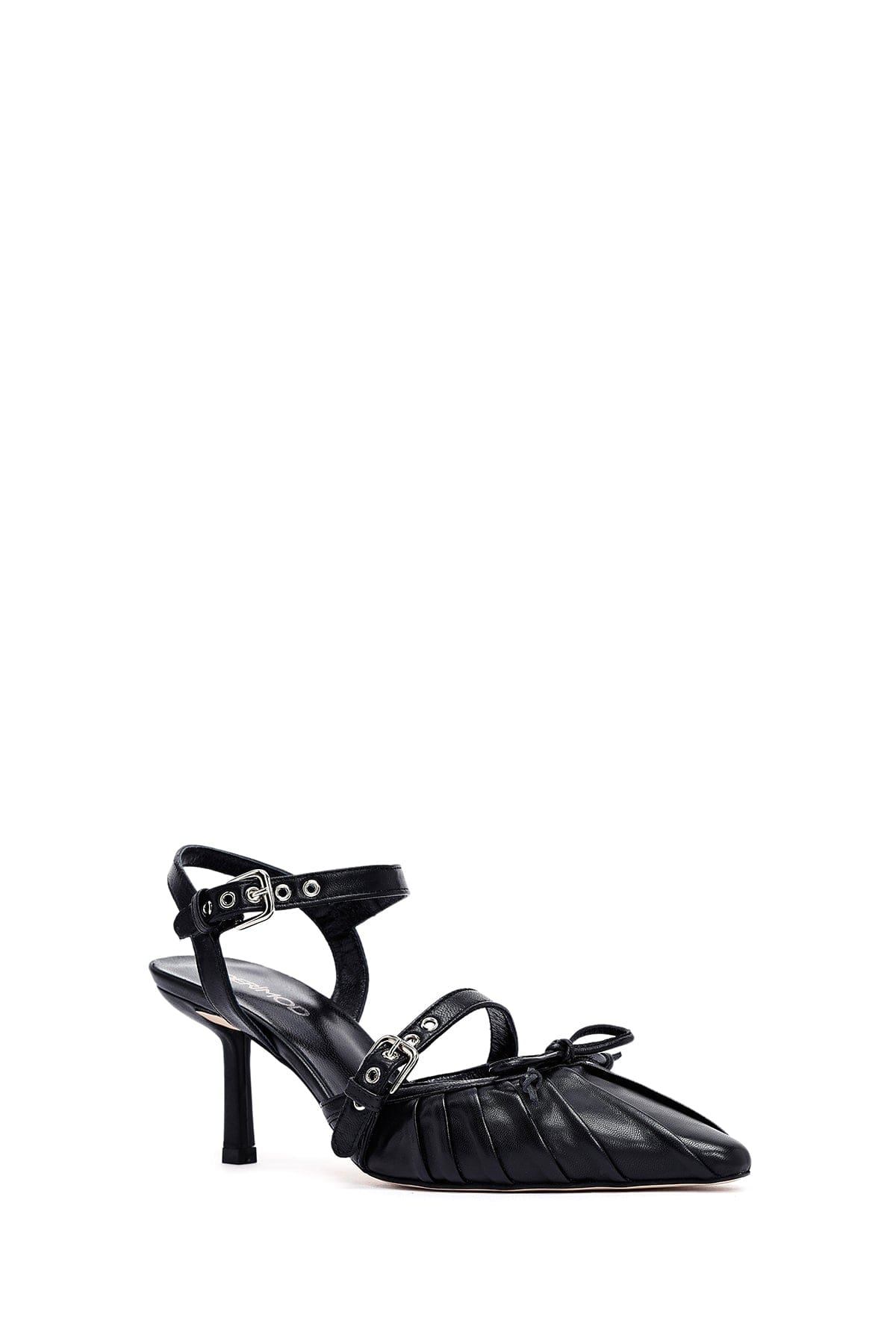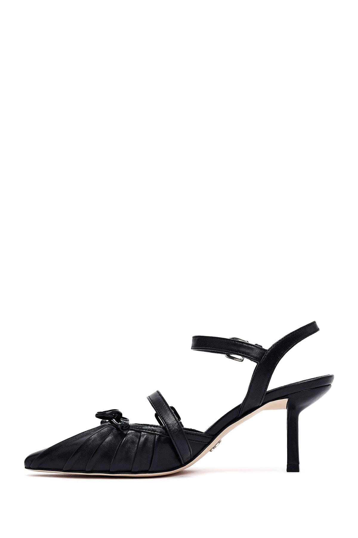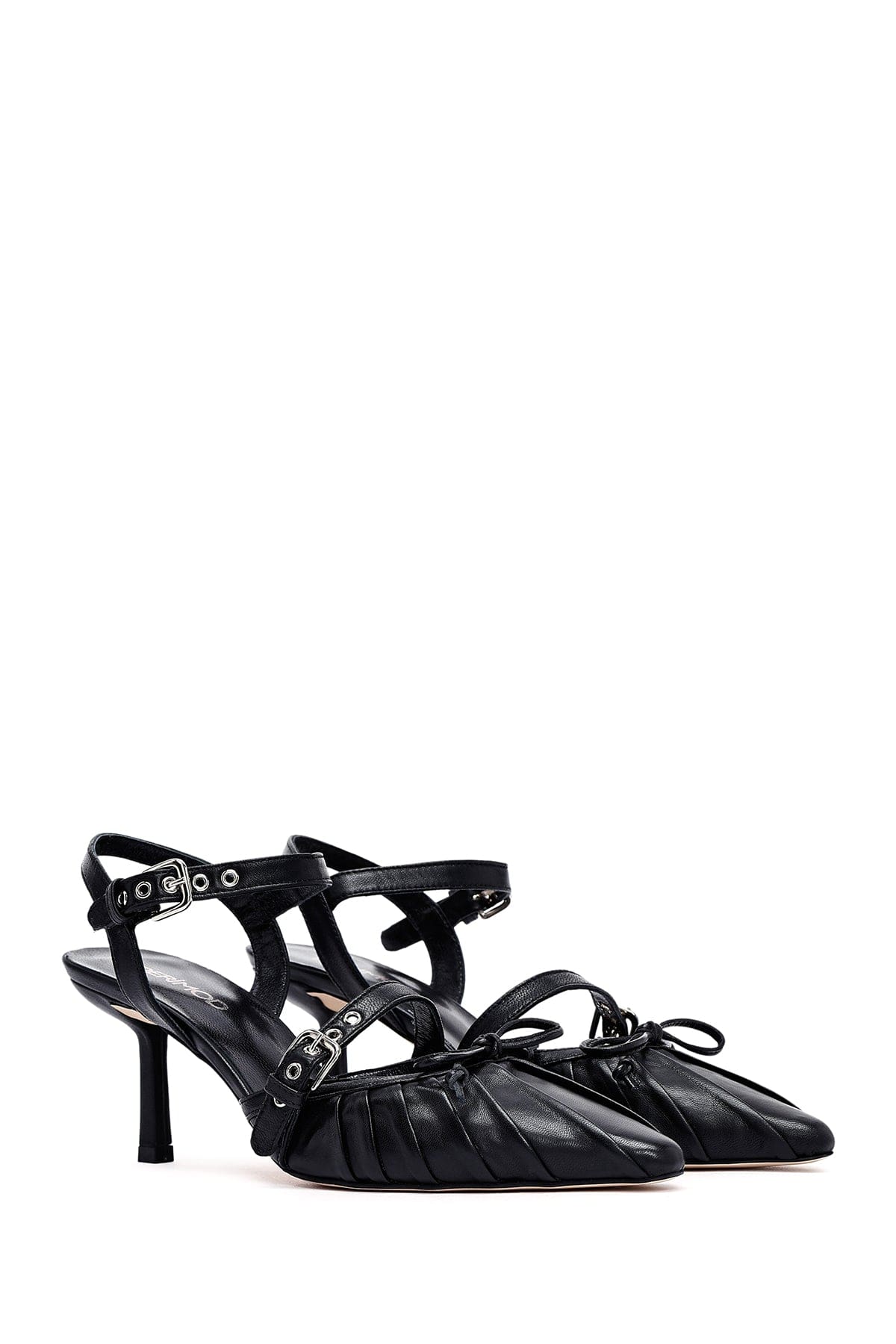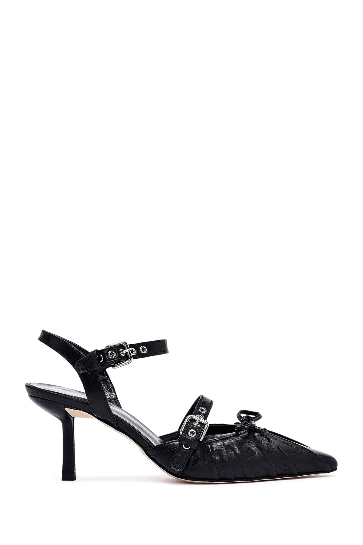 Kadın Siyah Bilekten Tokalı Arkası Açık İnce Topuklu Deri Ayakkabı