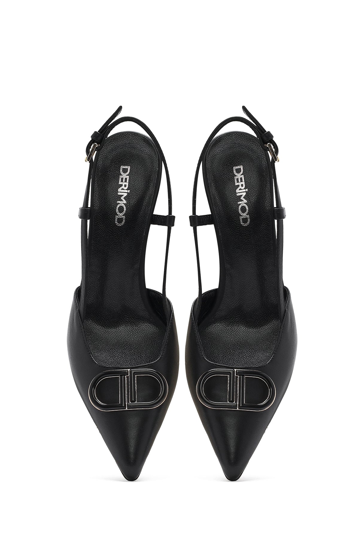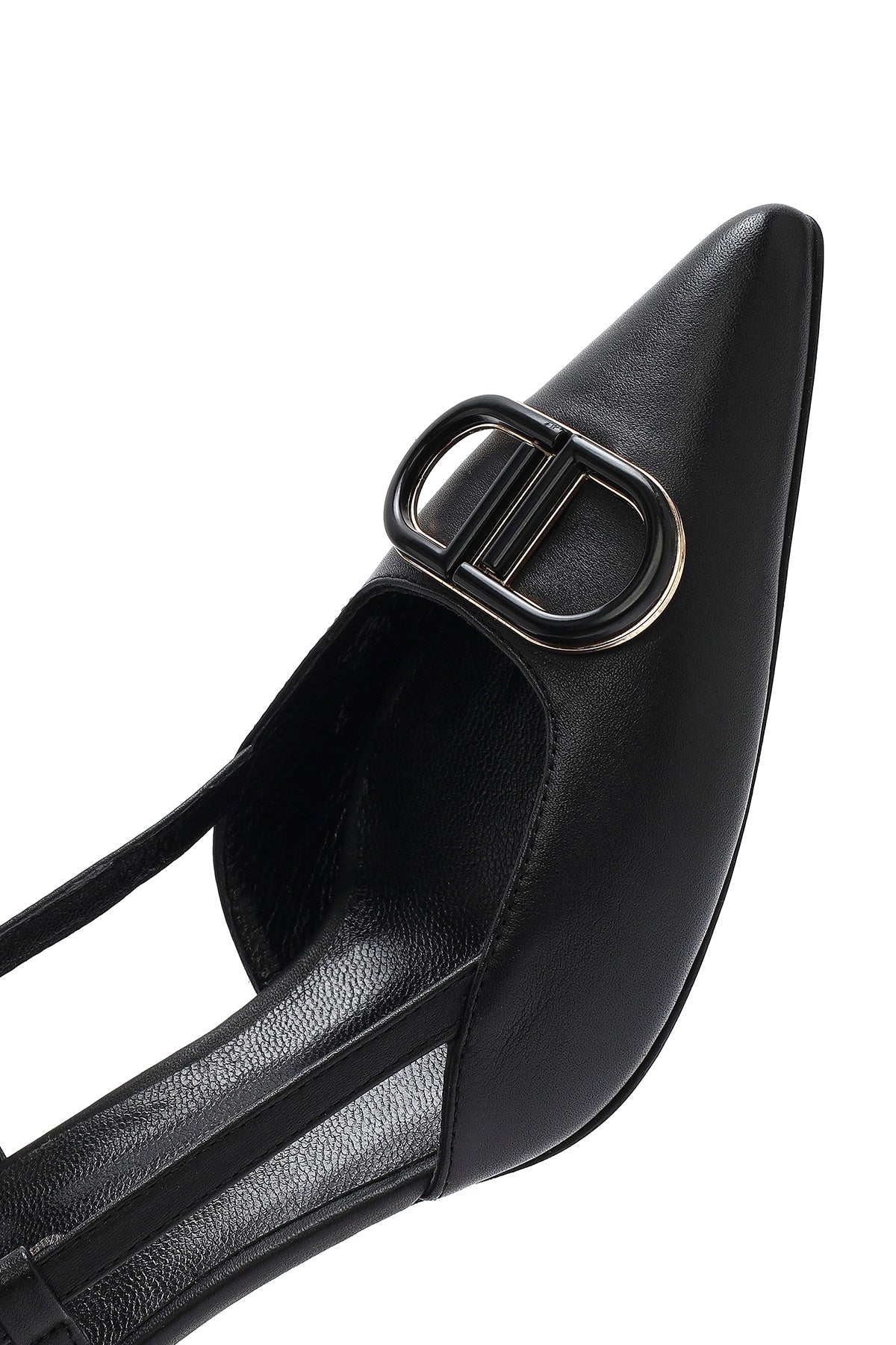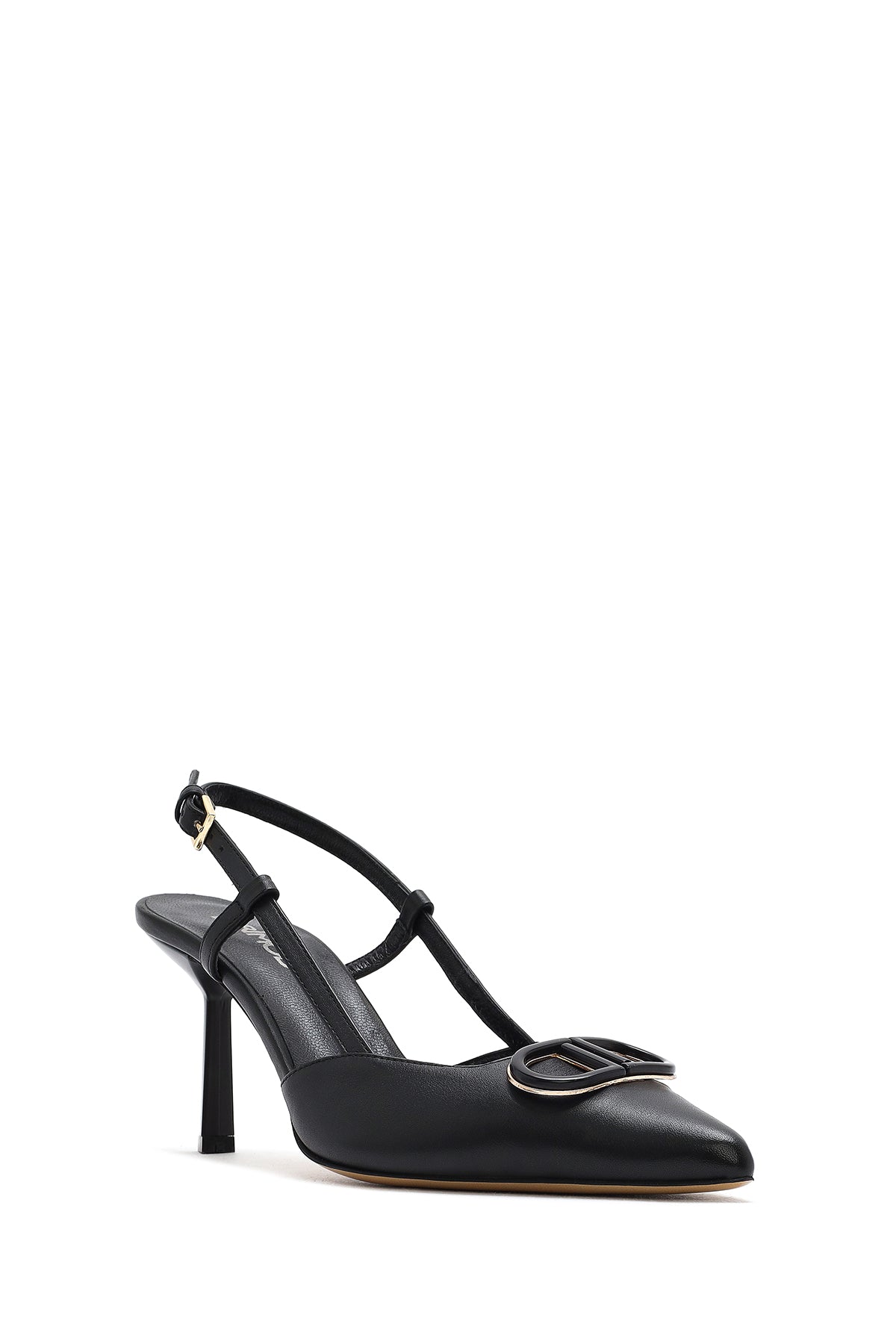 Kadın Siyah Bilekten Tokalı Arkası Açık İnce Topuklu Deri Ayakkabı
