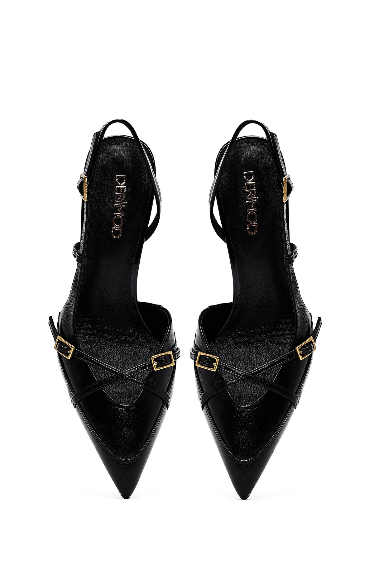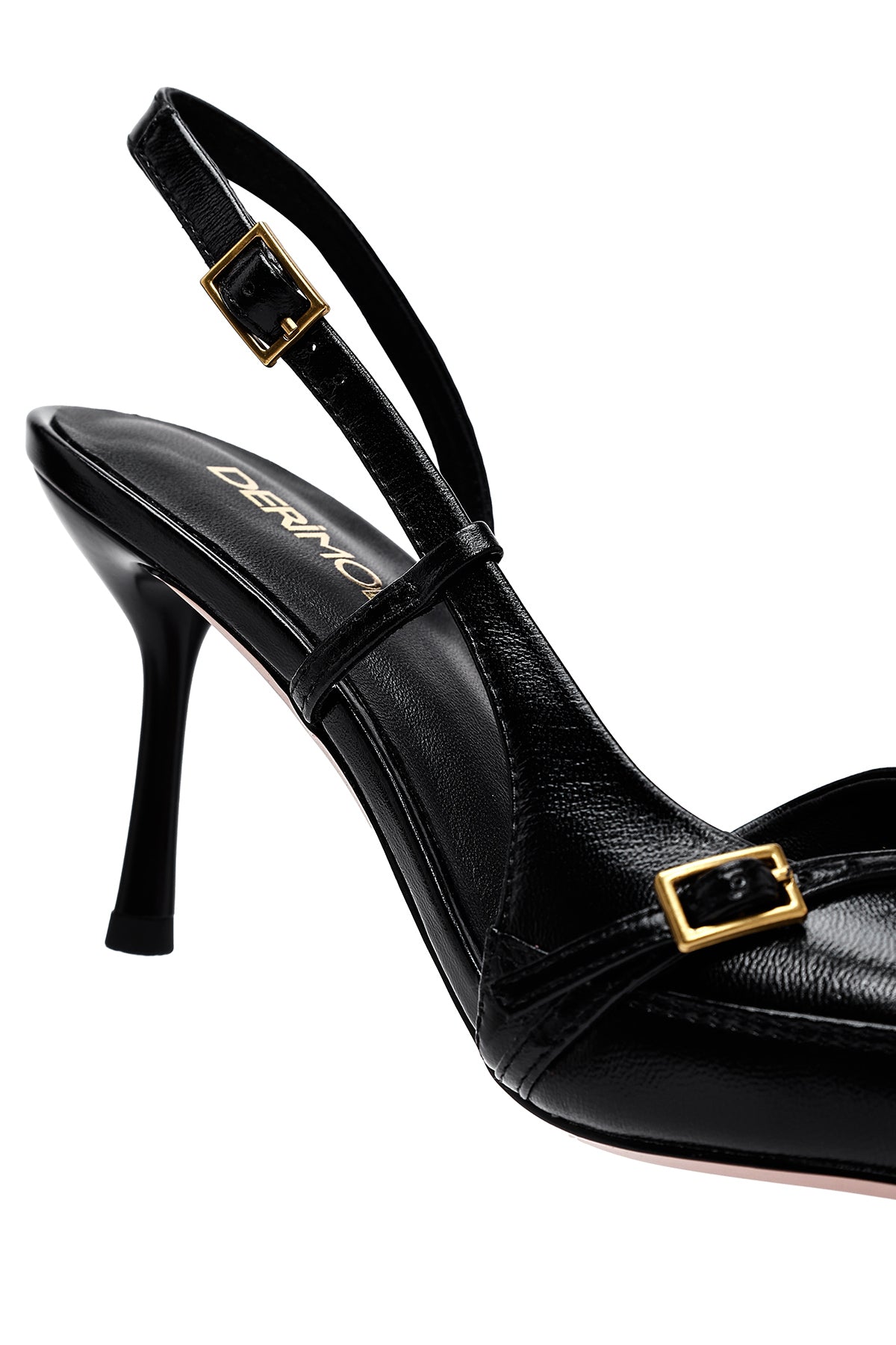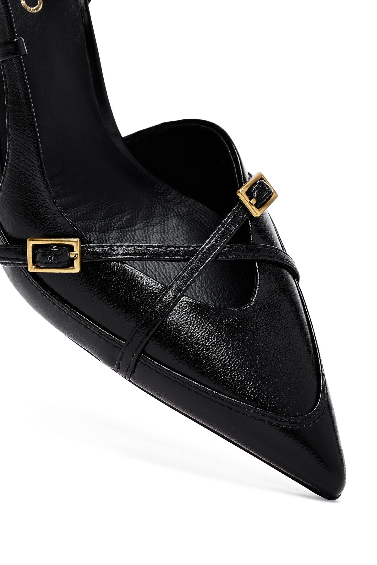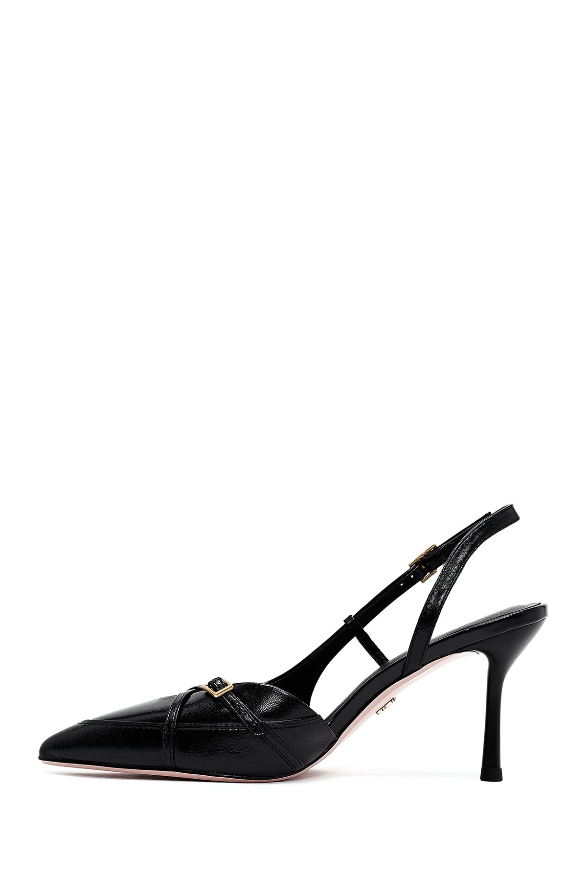 Kadın Siyah Bilekten Tokalı Arkası Açık İnce Topuklu Deri Ayakkabı