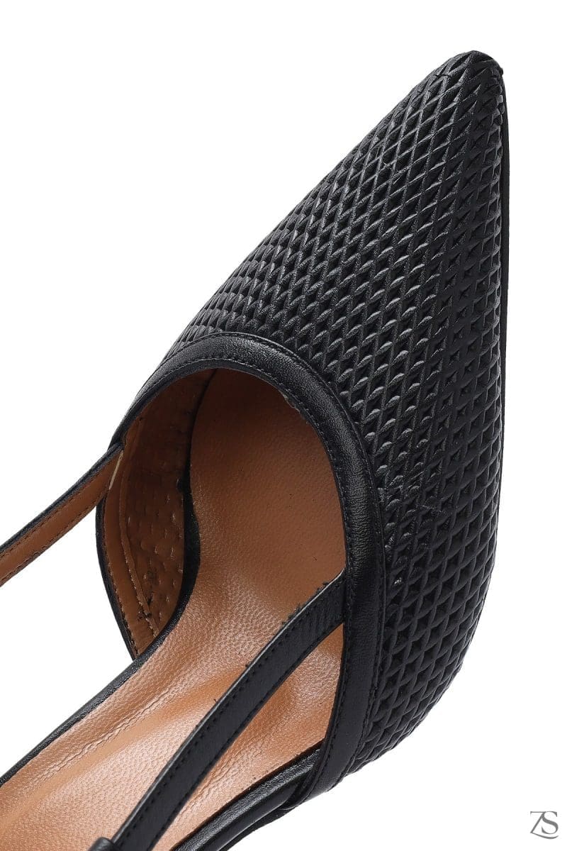 کفش زنانه مشکی چرم پاشنه نازک پشت باز دری مد