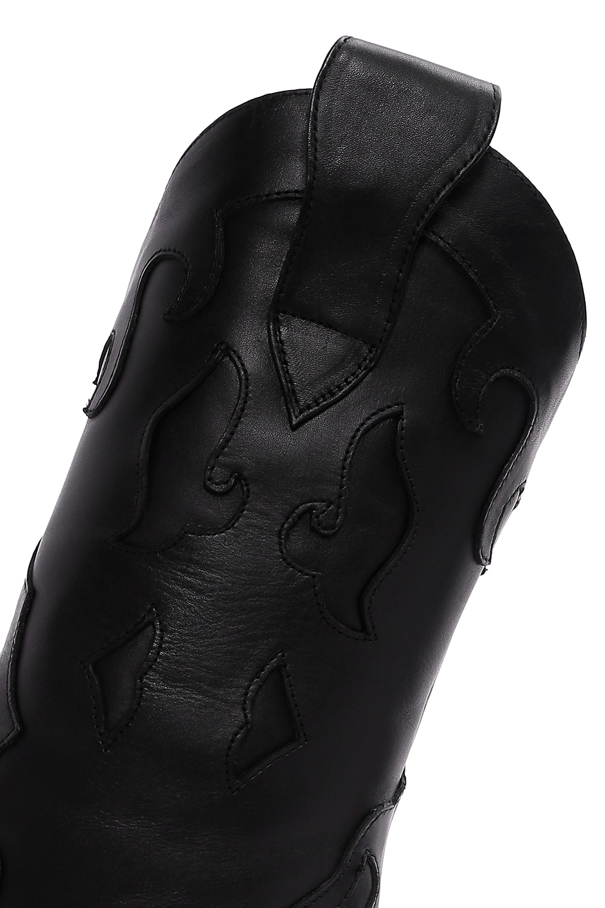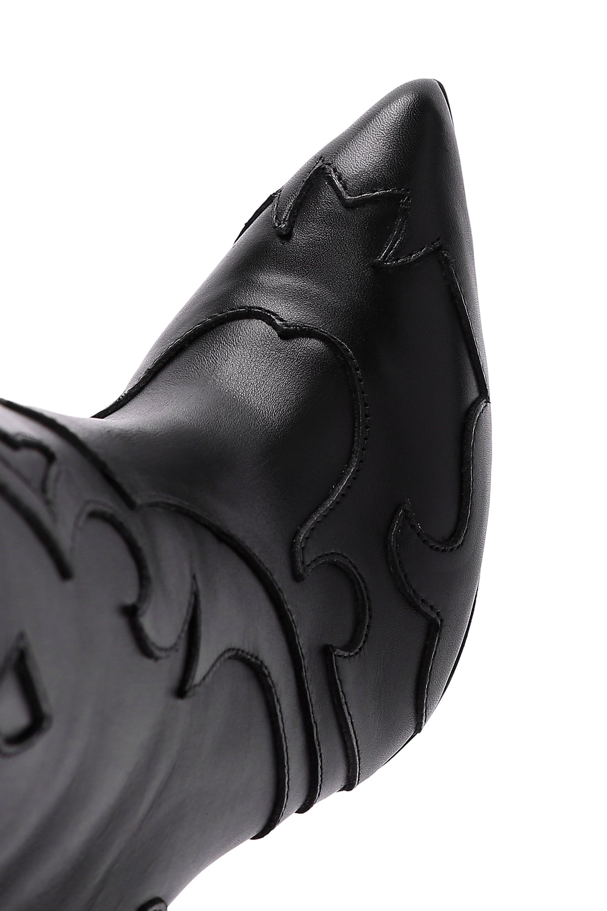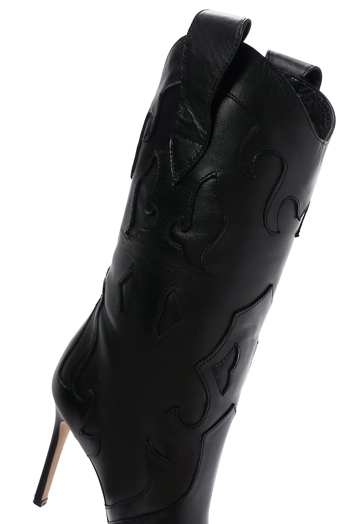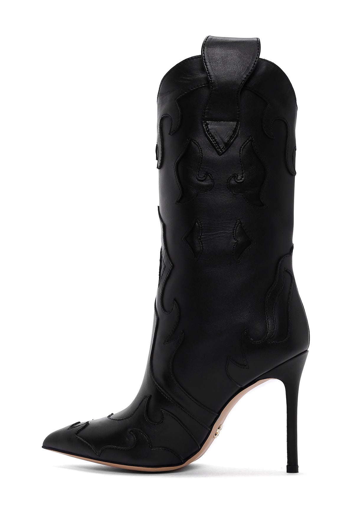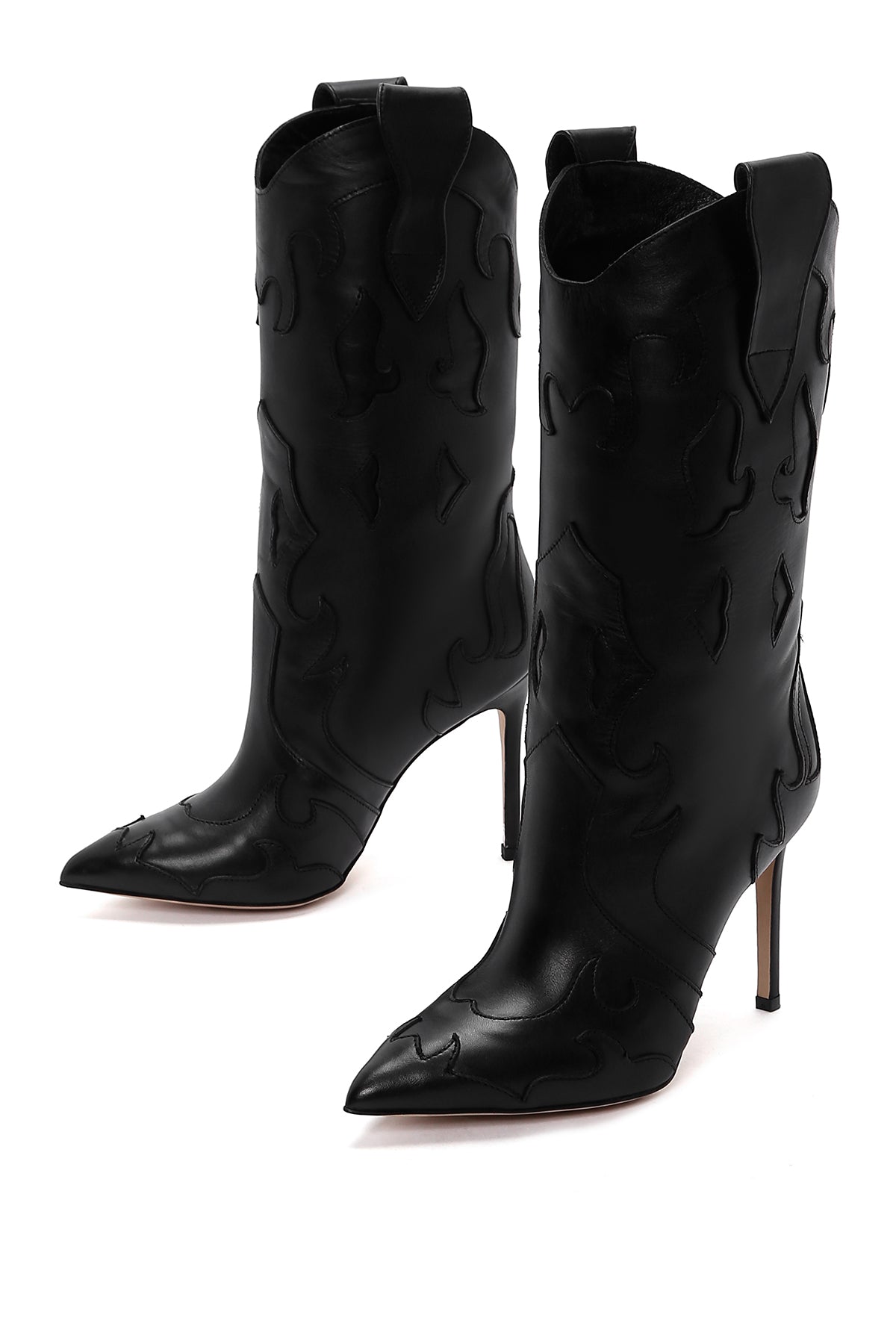 چکمه زنانه مشکی چرمی طرحدار پاشنه باریک دری مد