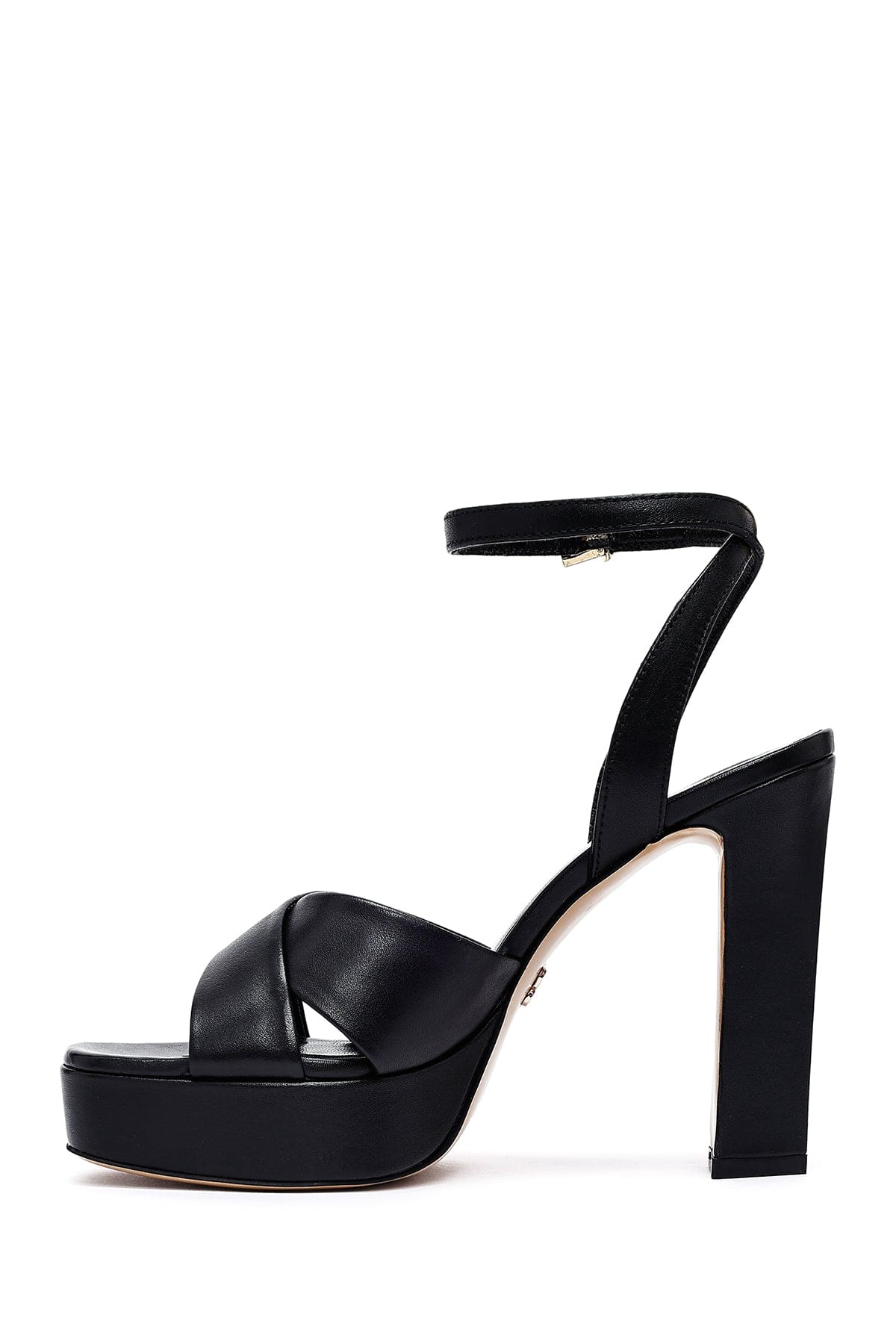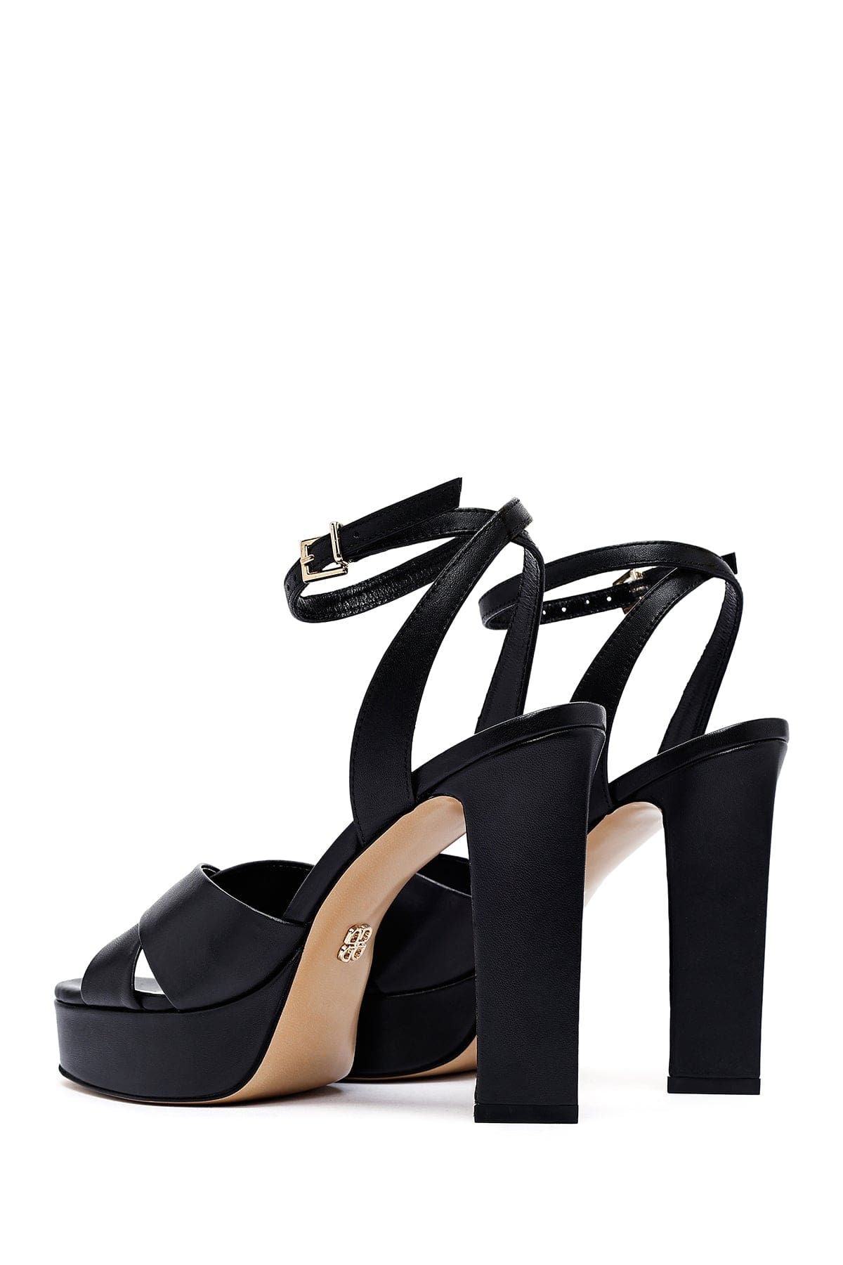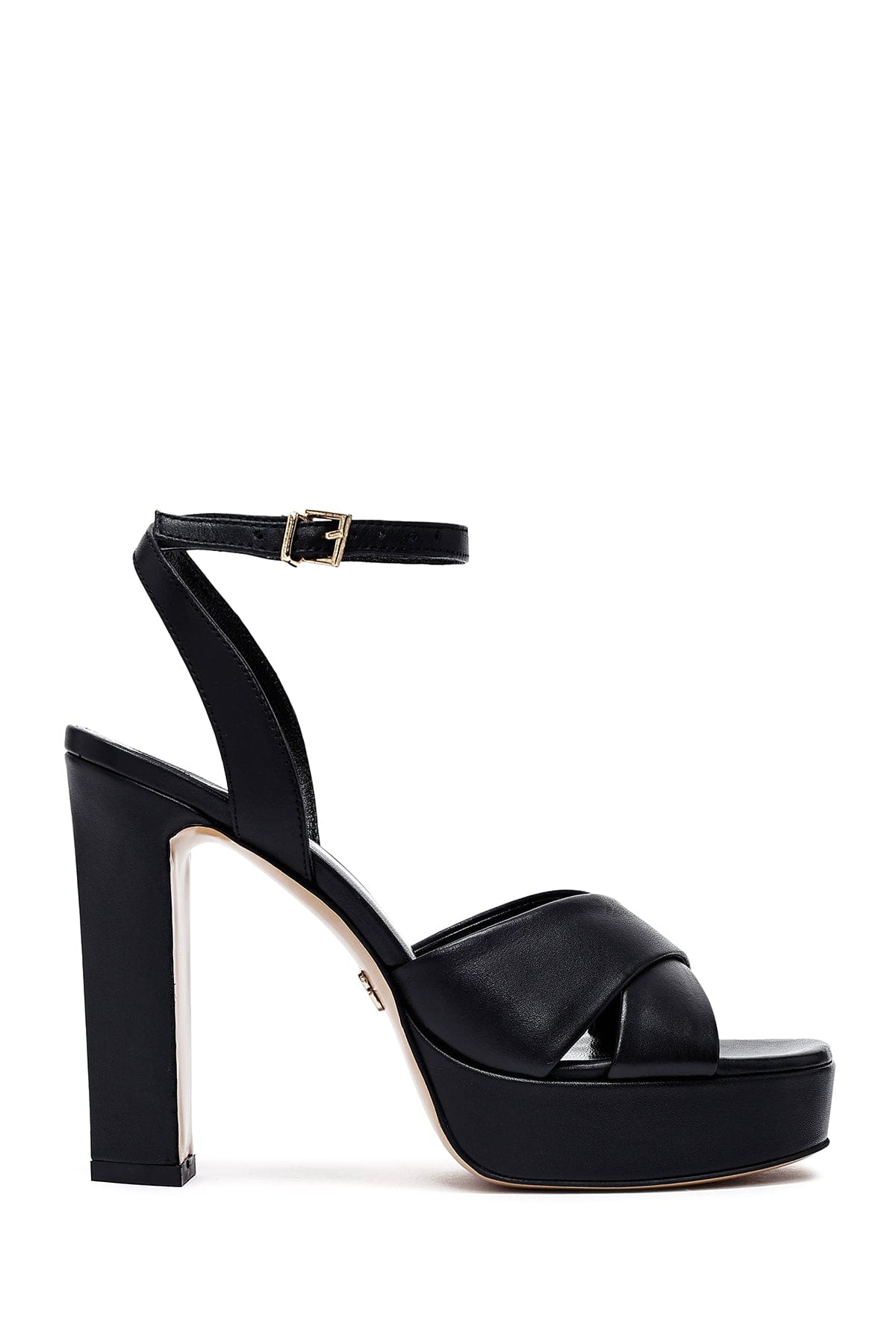 Kadın Siyah Bilekten Tokalı Platform Yüksek Kalın Topuklu Deri Sandalet