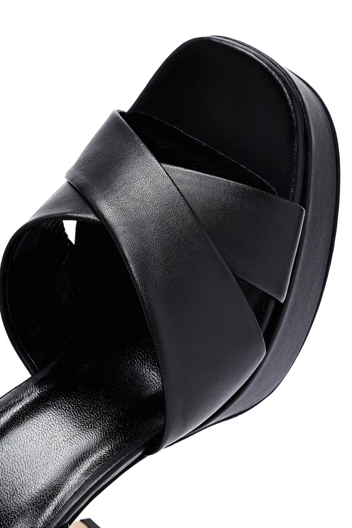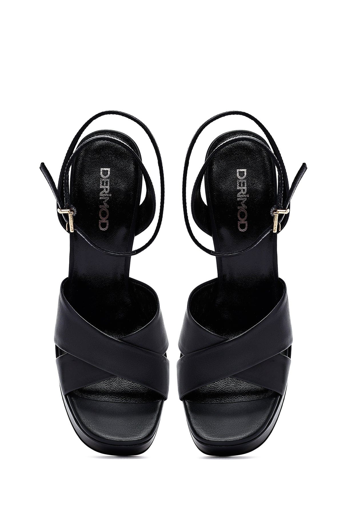 صندل زنانه مشکی چرم بنددار پلتفرم پاشنهضخیم بلند دری مد
