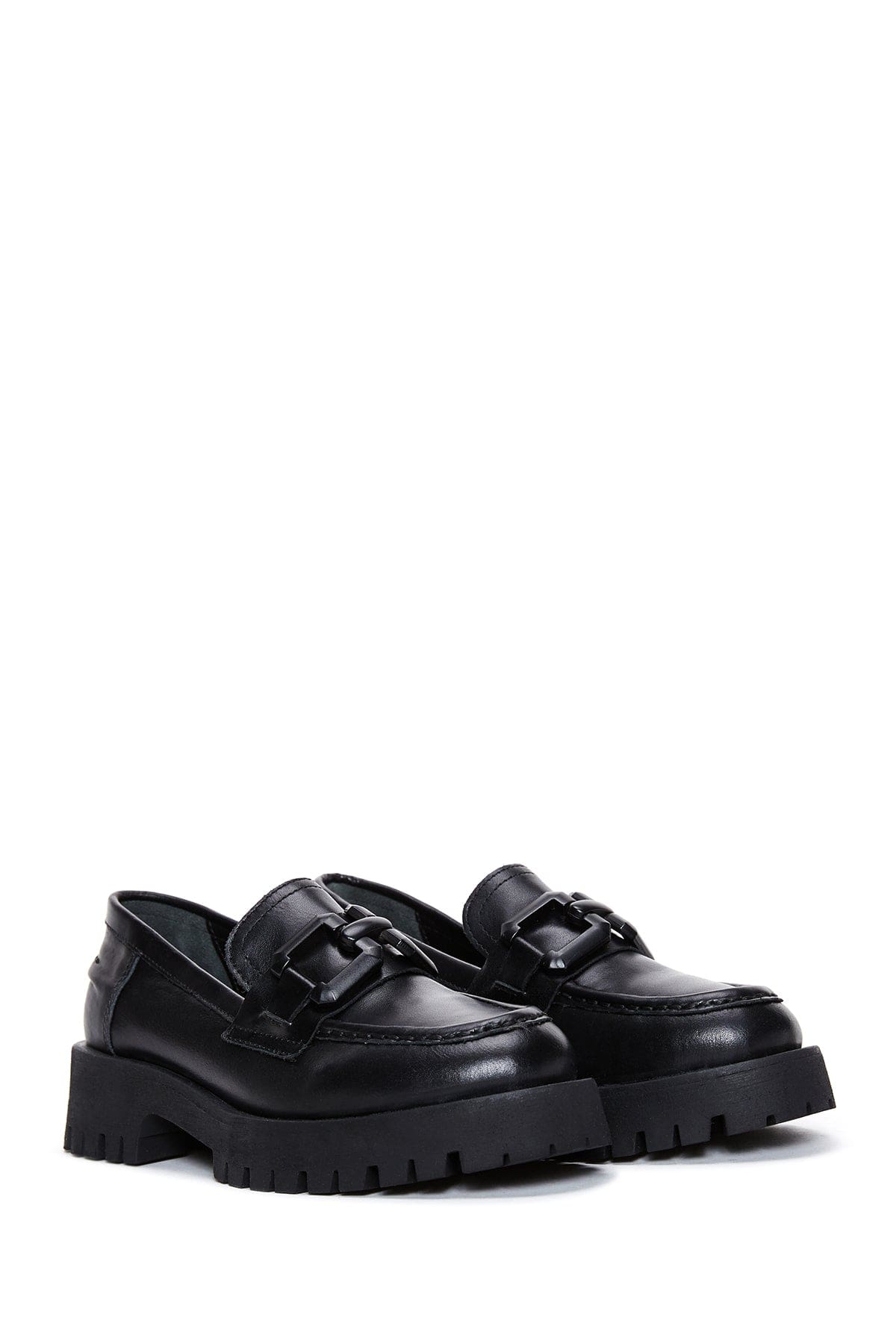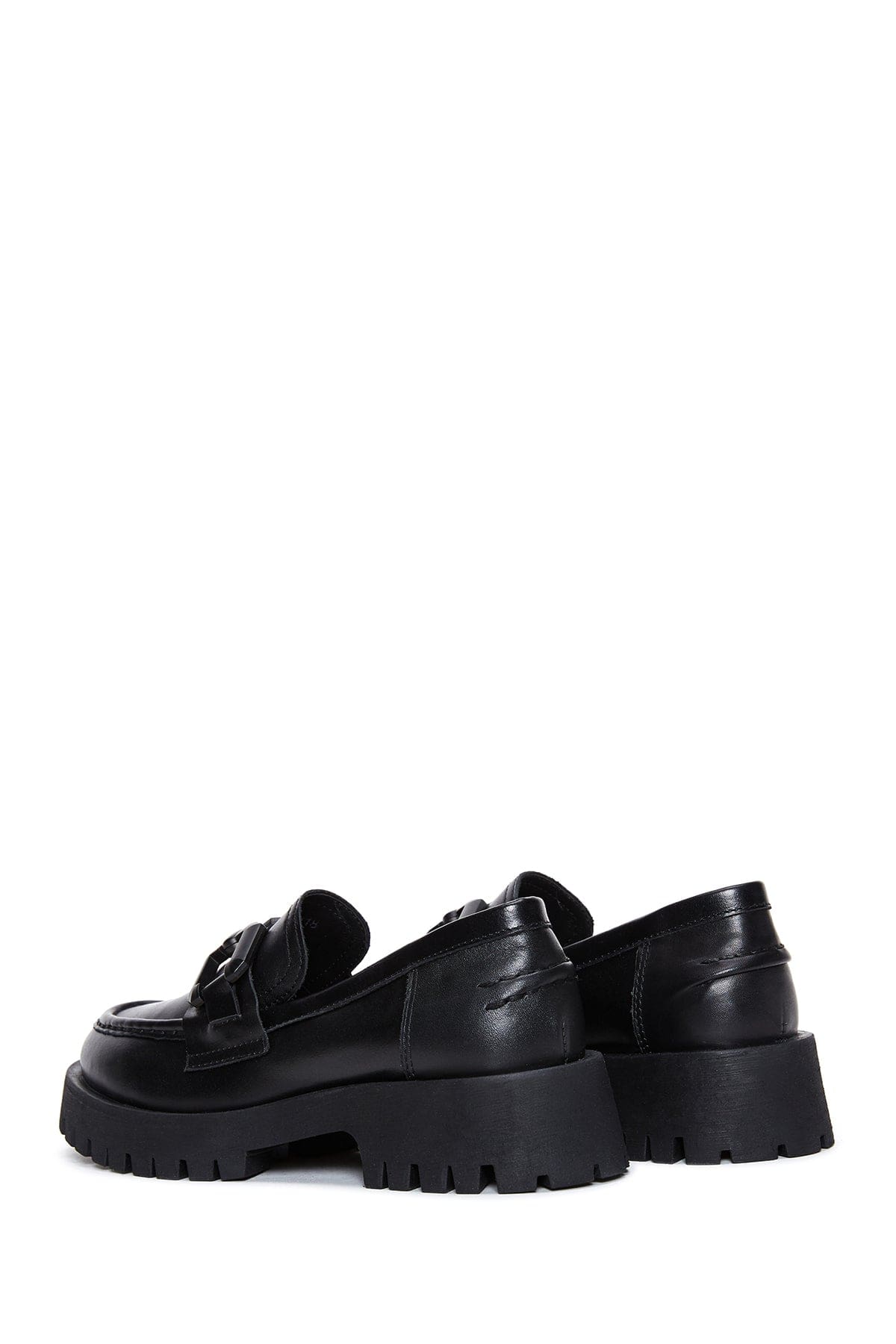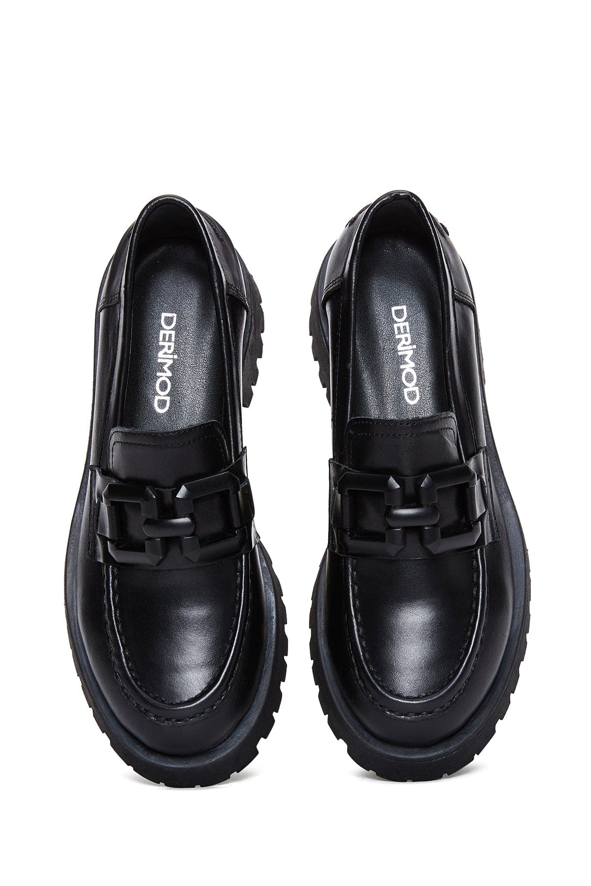 Kadın Siyah Kalın Tabanlı Deri Maskülen Loafer