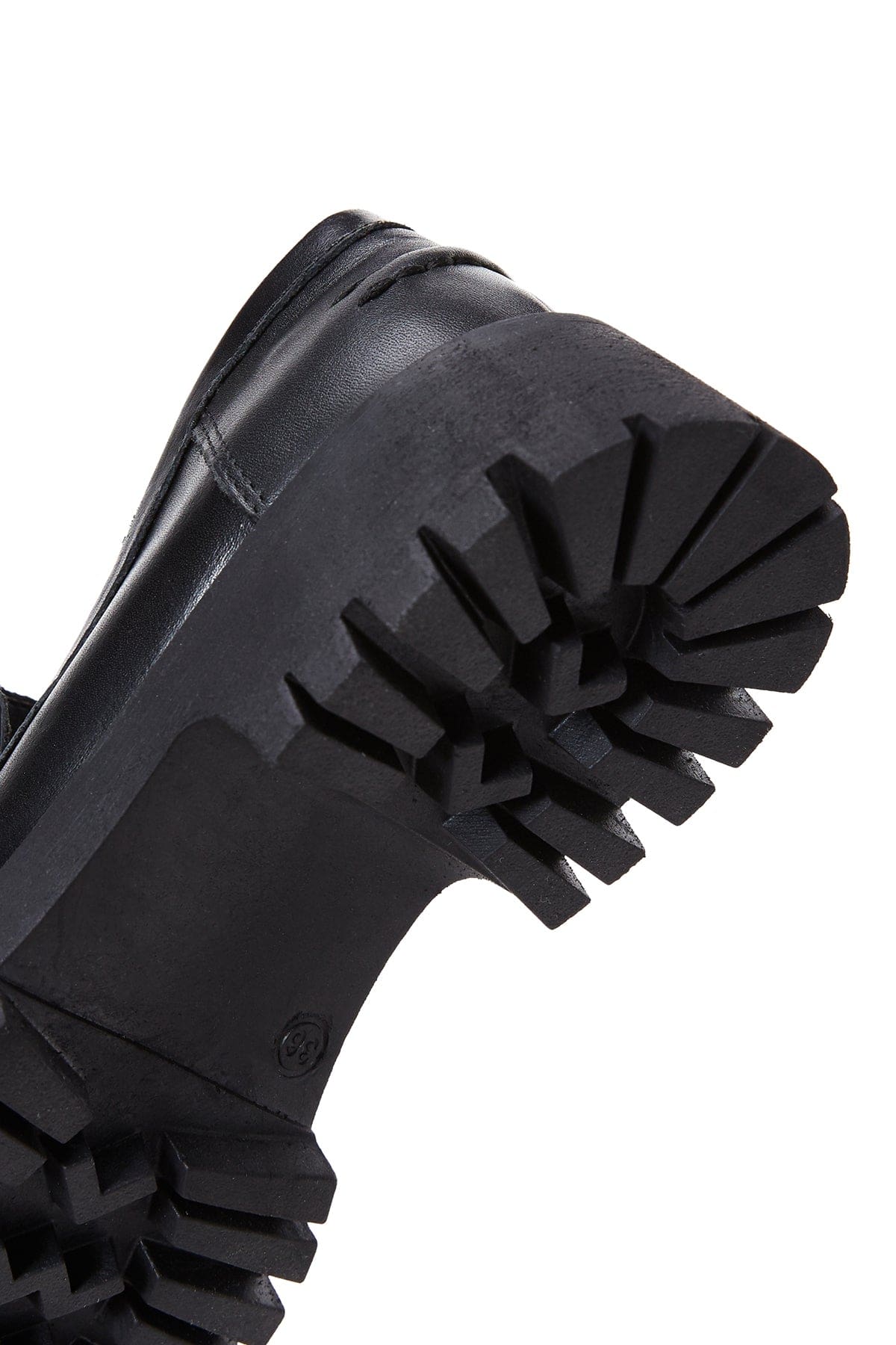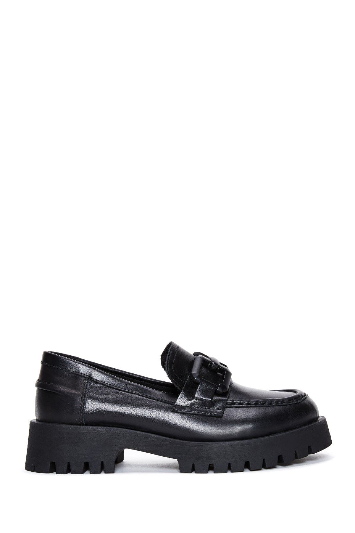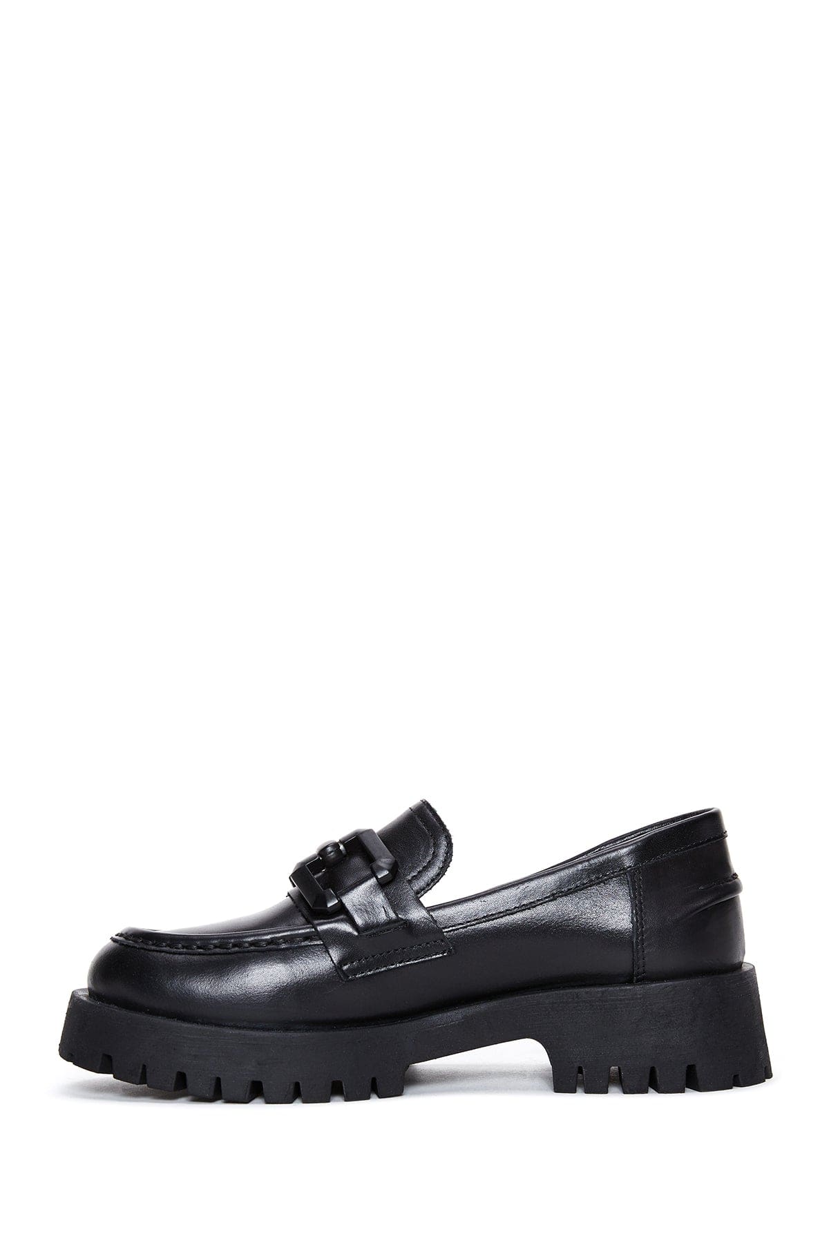 Kadın Siyah Kalın Tabanlı Deri Maskülen Loafer