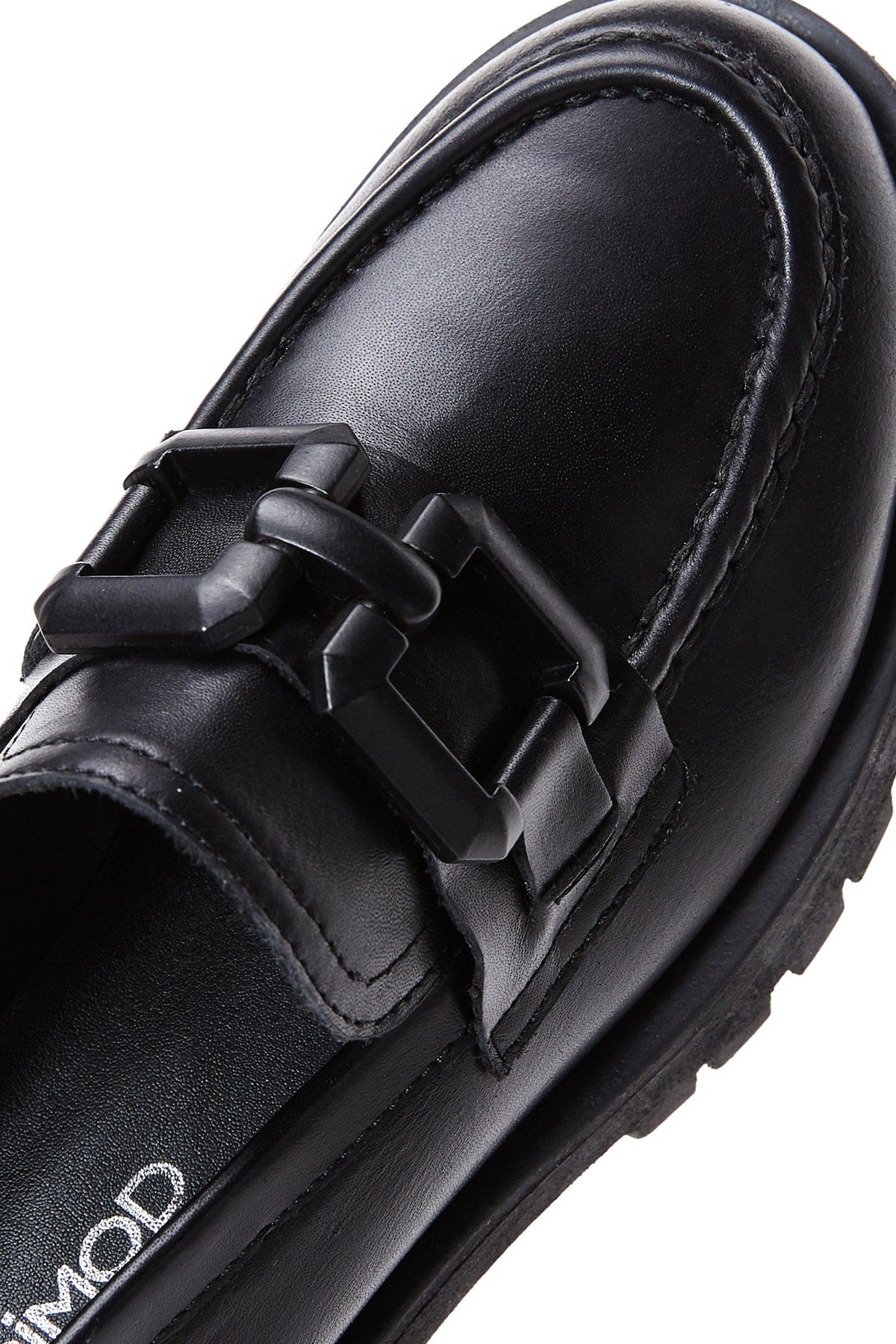 کفش لوفر زنانه مشکی چرمی پاشنه لژدار دری مد
