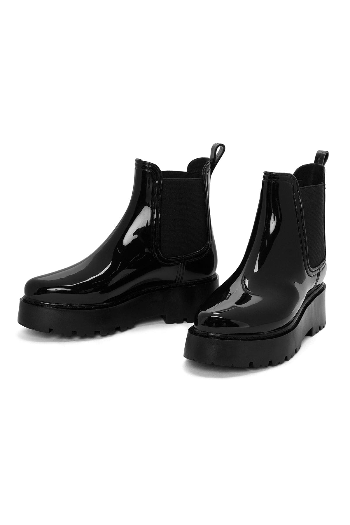 بوت زنانه مشکی چرمی لژدار بارانی دری مد