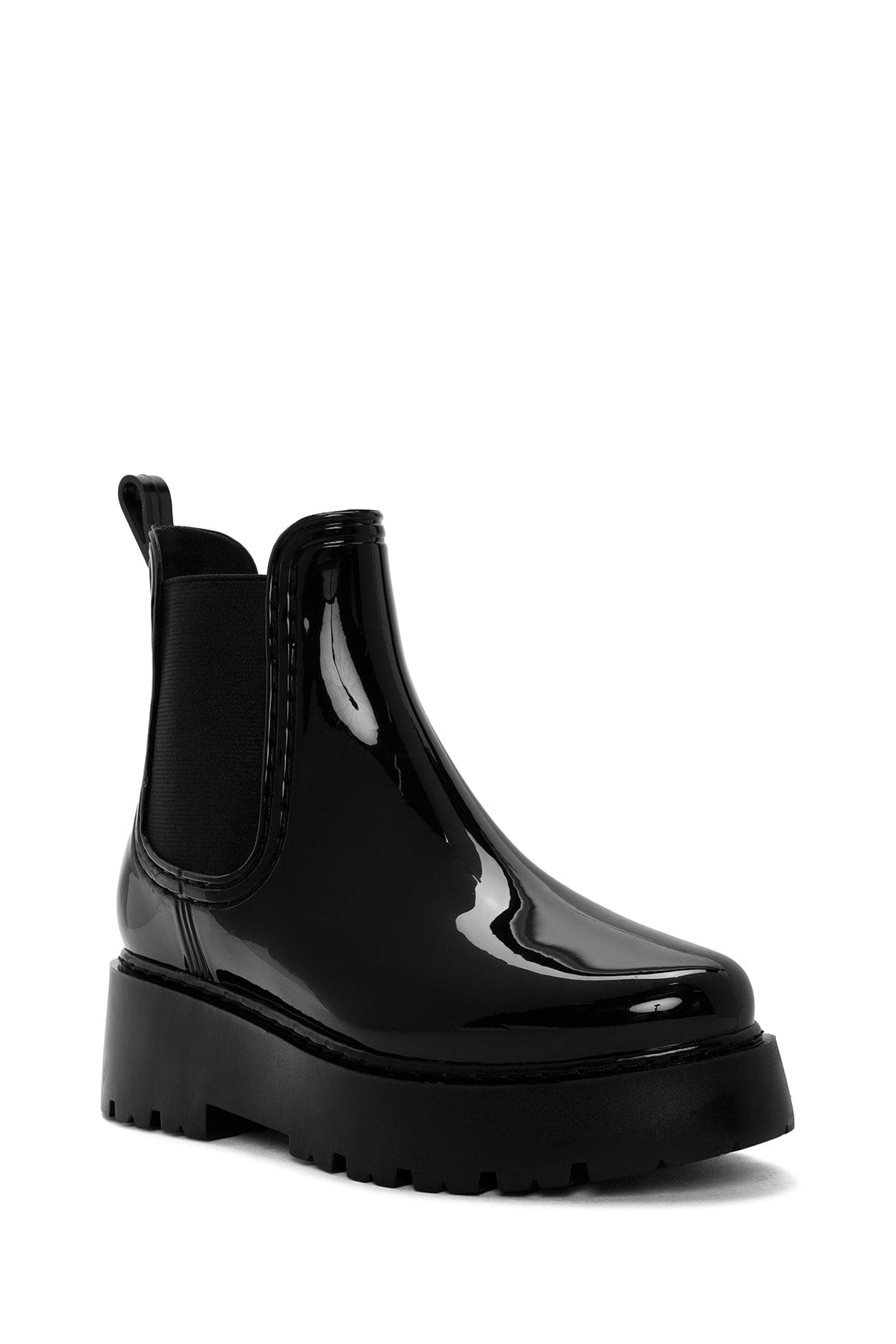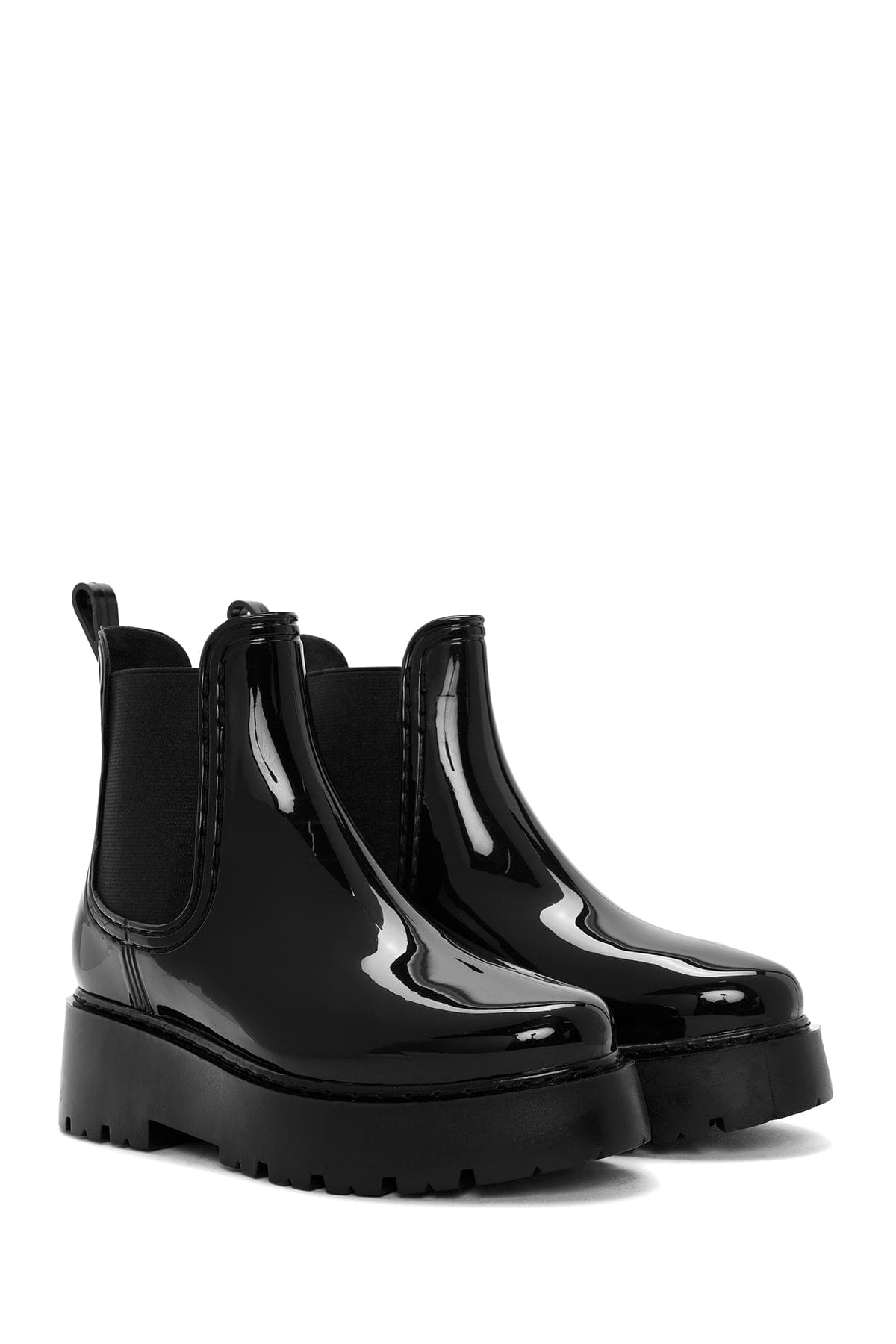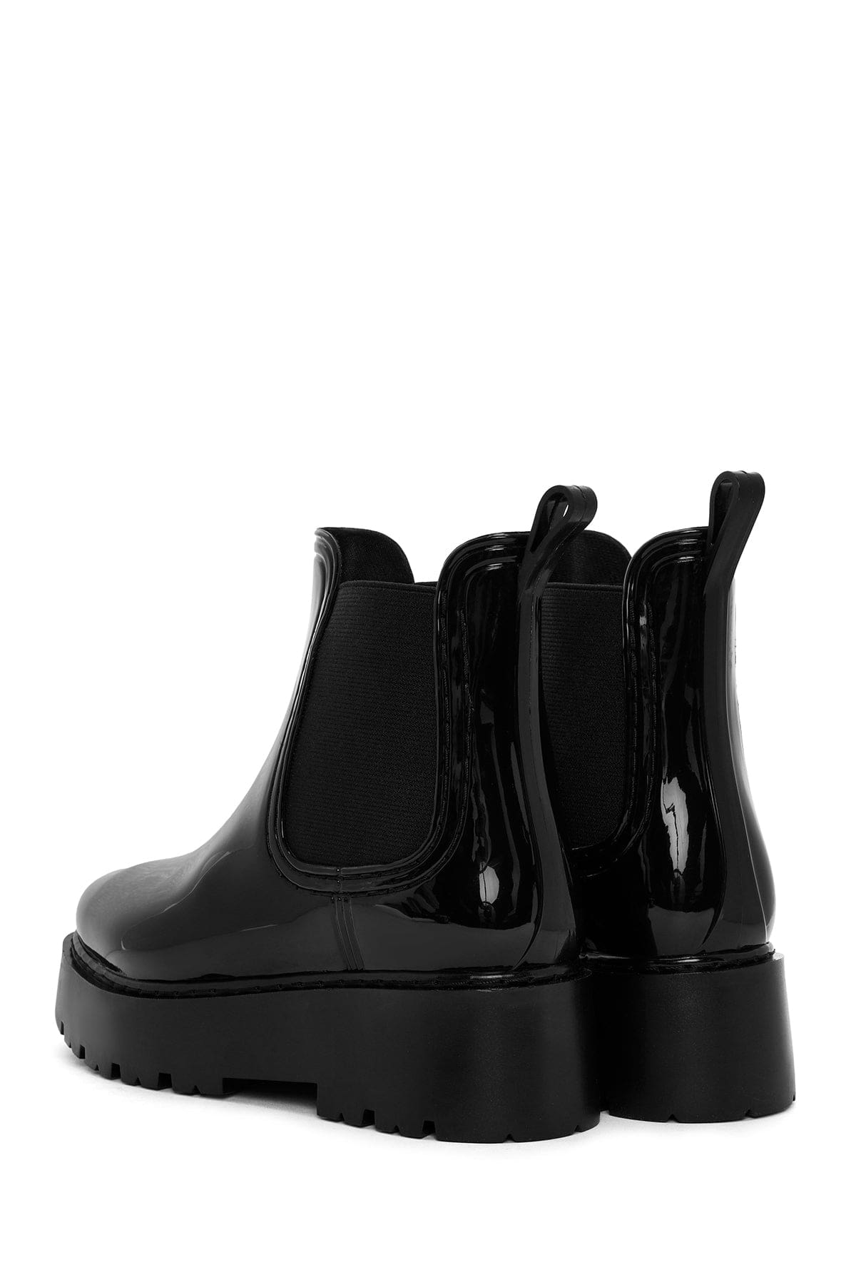 Kadın Siyah Kalın Tabanlı Yağmur Botu