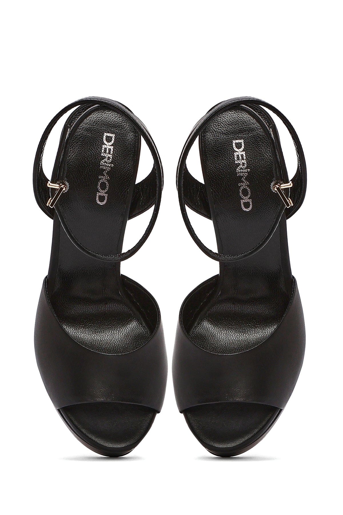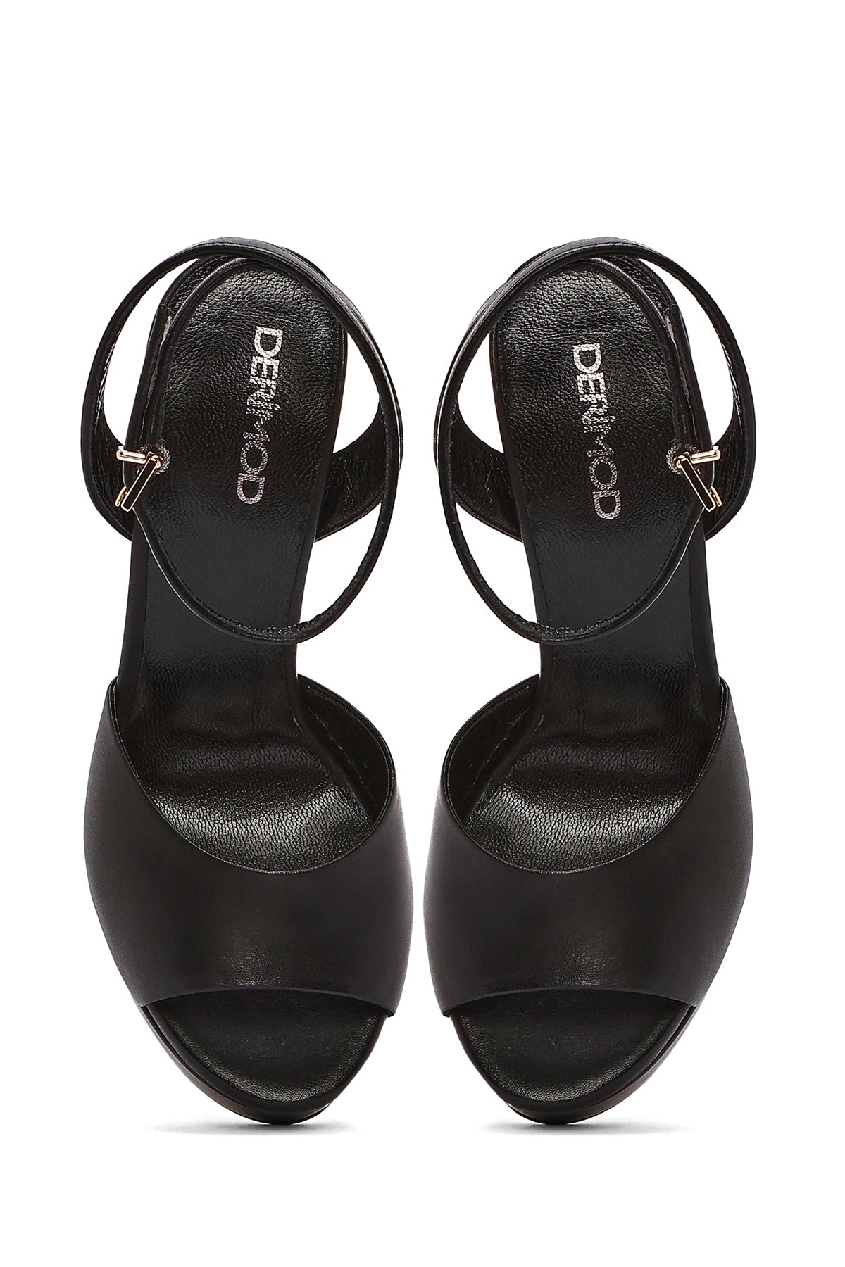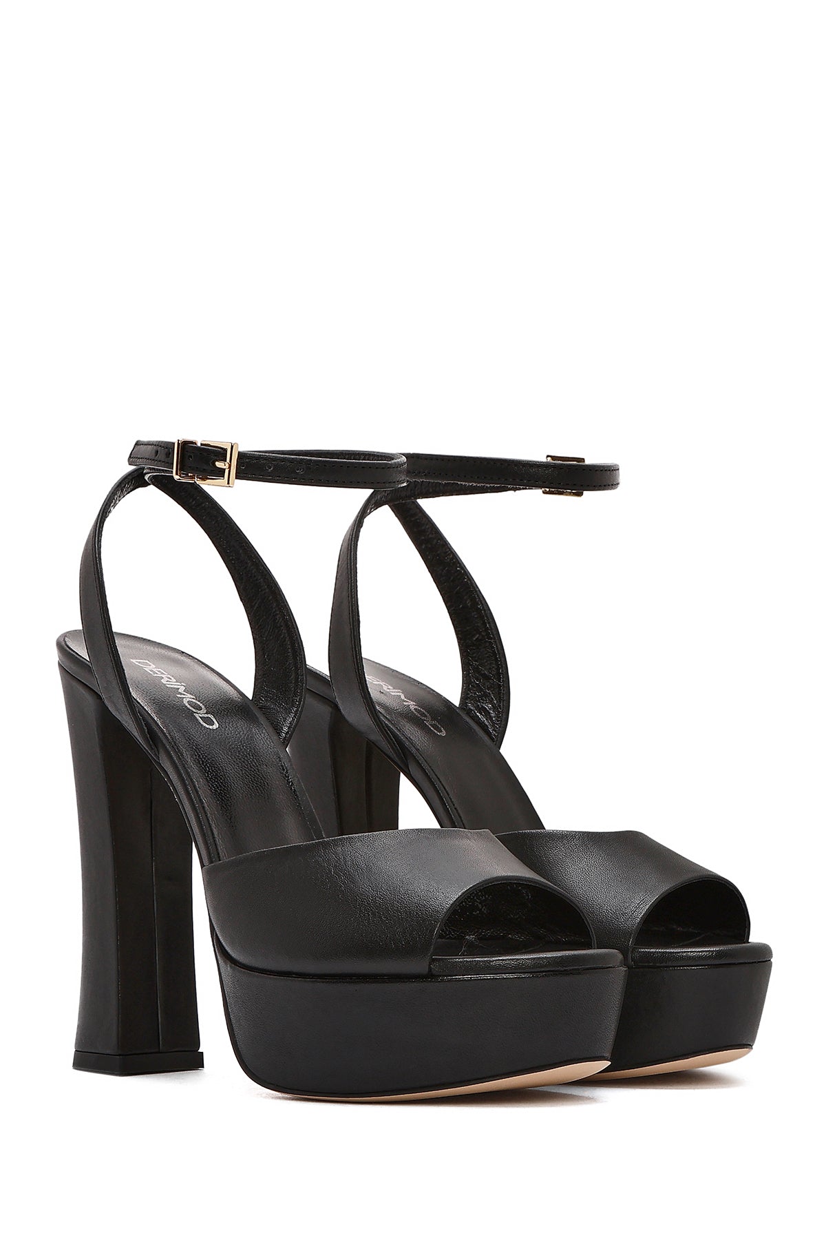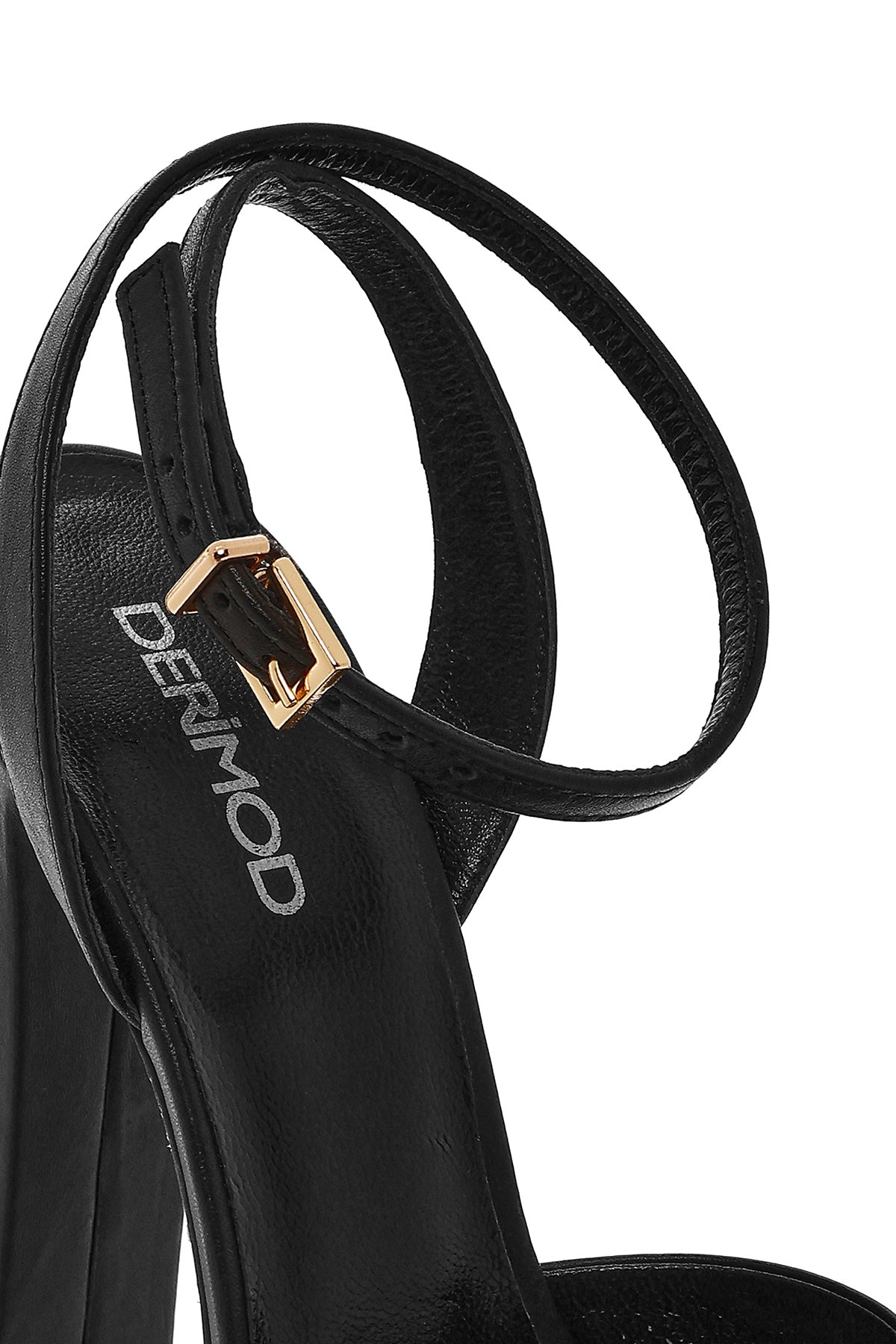 Kadın Siyah Bilekten Tokalı Platformlu Yüksek Kalın Topuklu Deri Sandalet