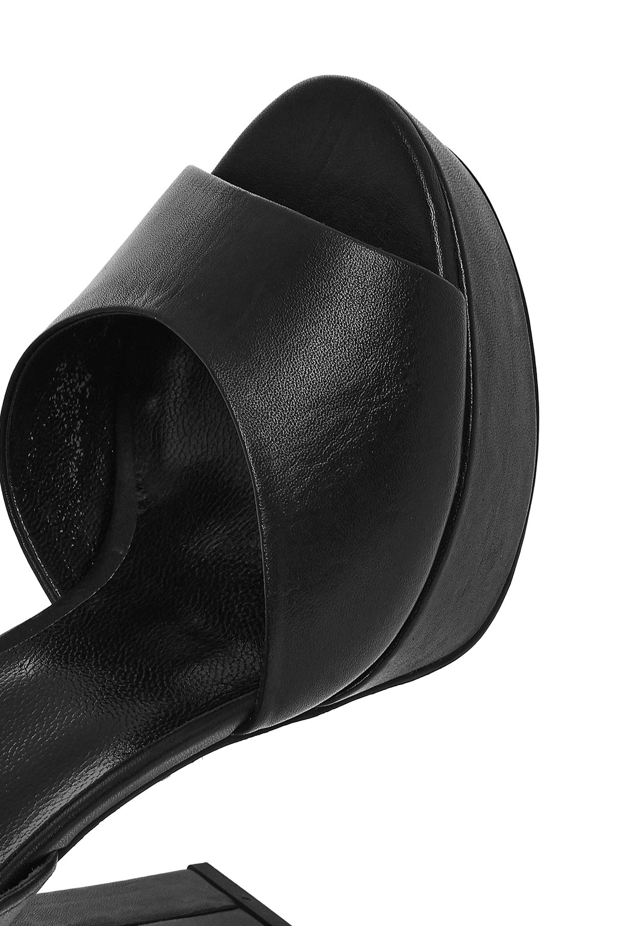 صندل زنانه چرمی مشکی سگکدار پلتفرم با پاشنه بلند ضخیم دری مد