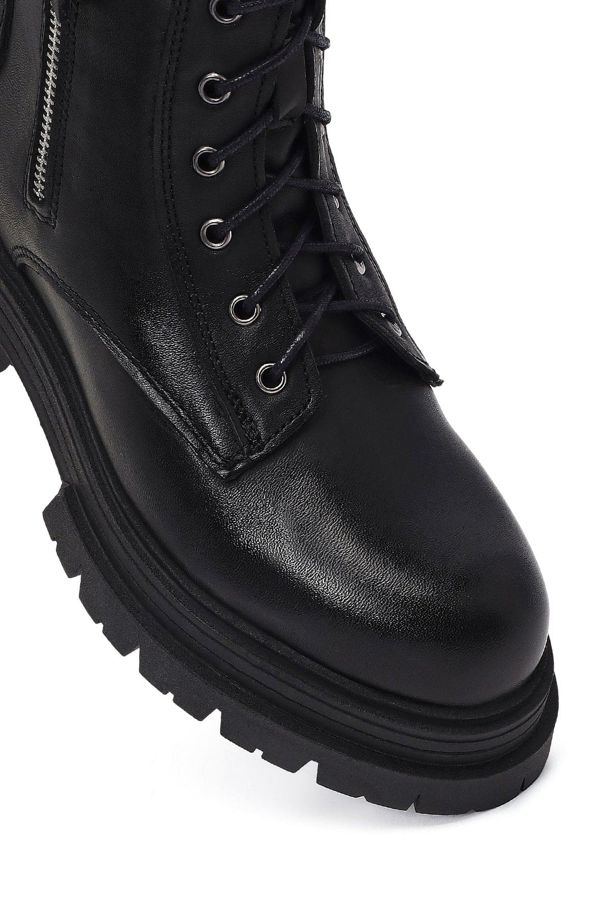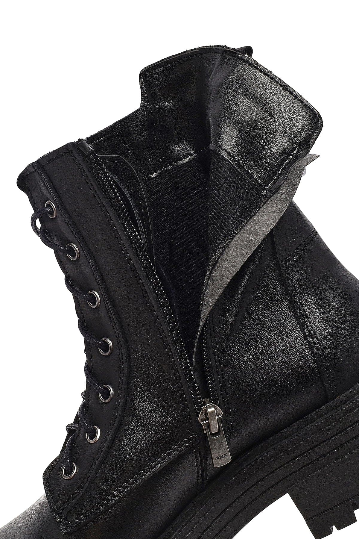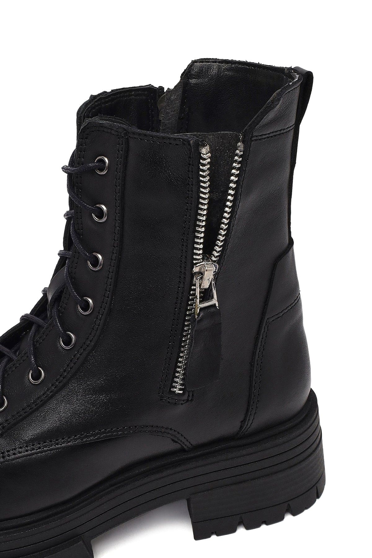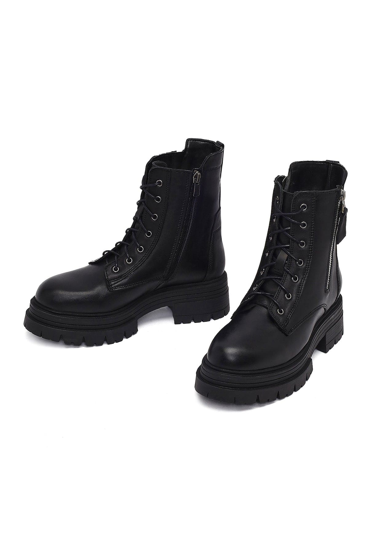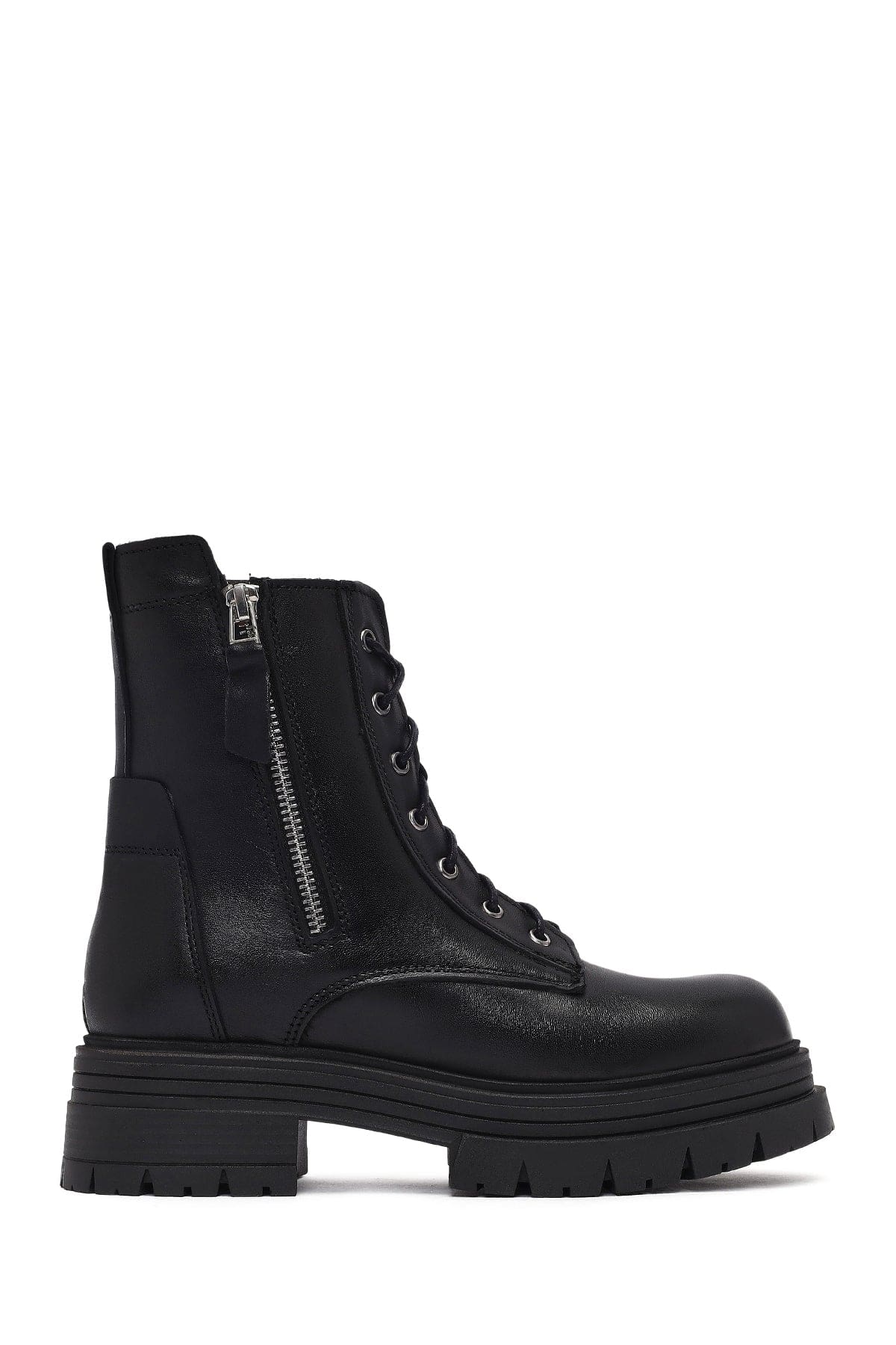 Kadın Siyah Fermuarlı Kalın Tabanlı Deri Postal Bot