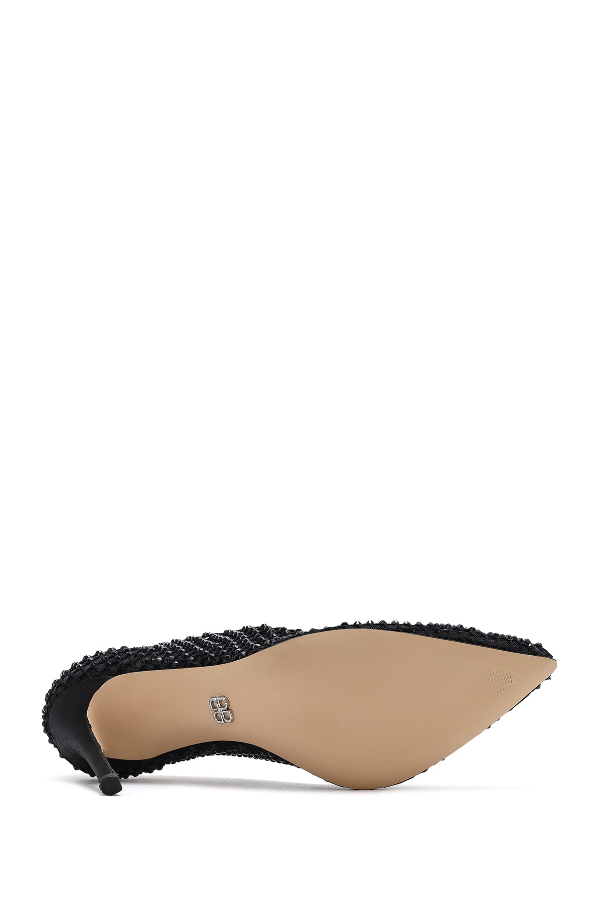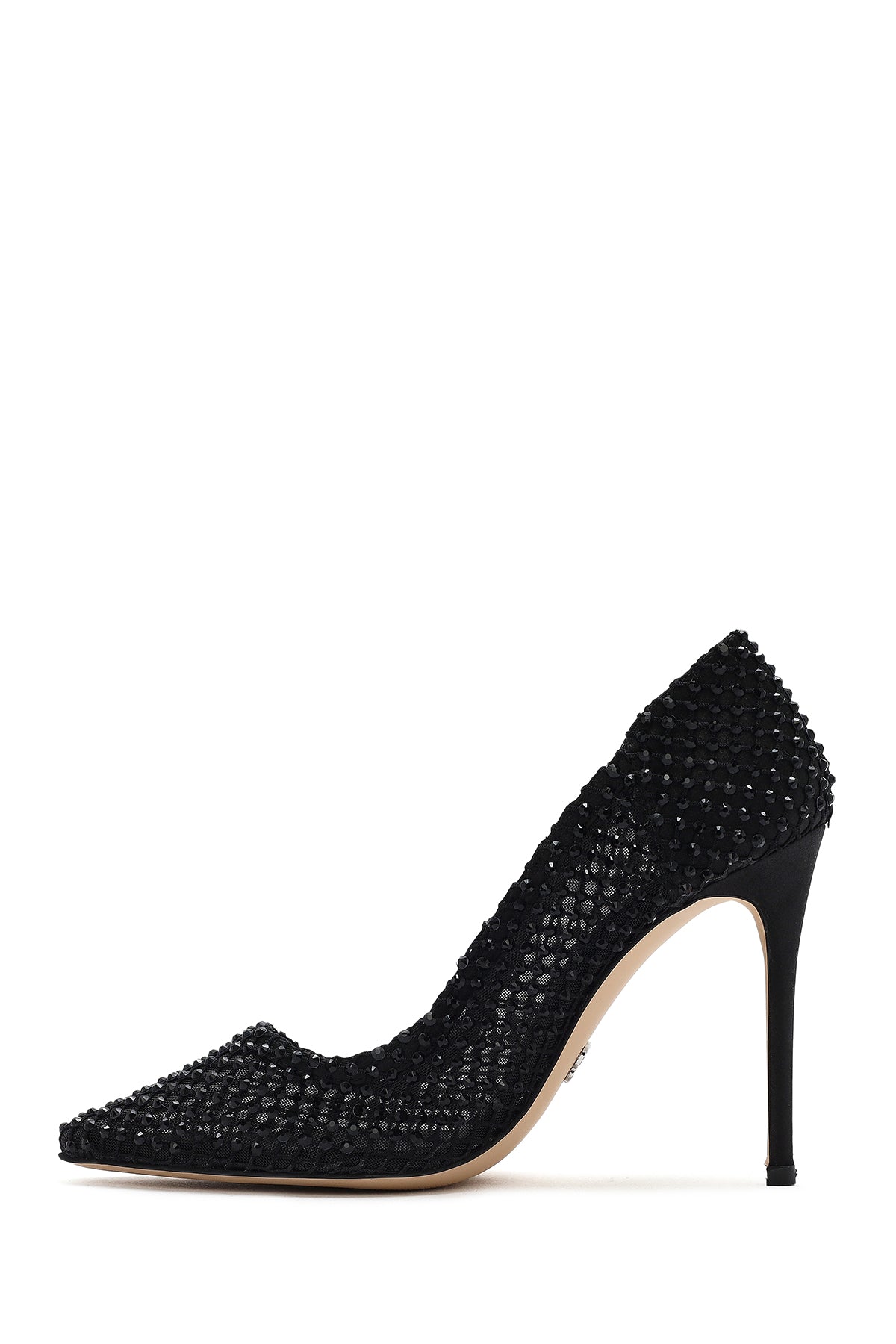 Kadın Siyah Taşlı Yüksek İnce Topuklu Deri Stiletto