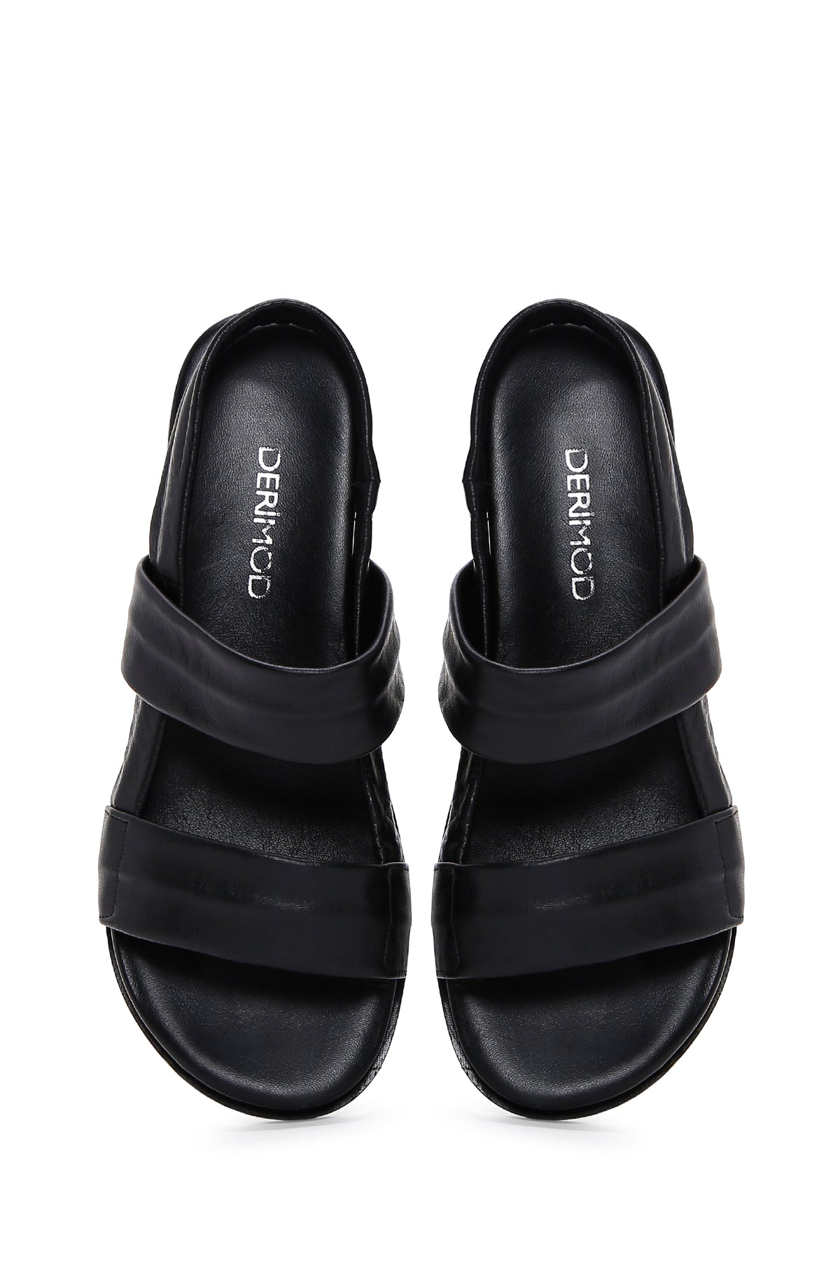 صندل زنانه چرمی مشکی ساده دری مد