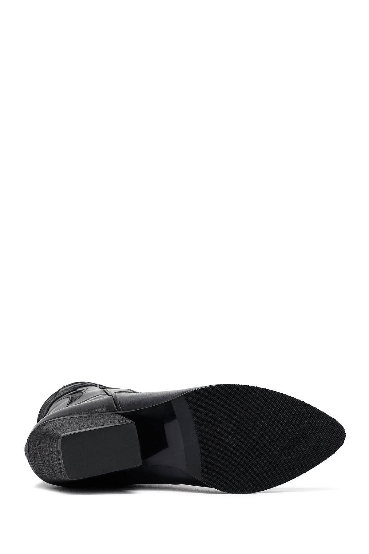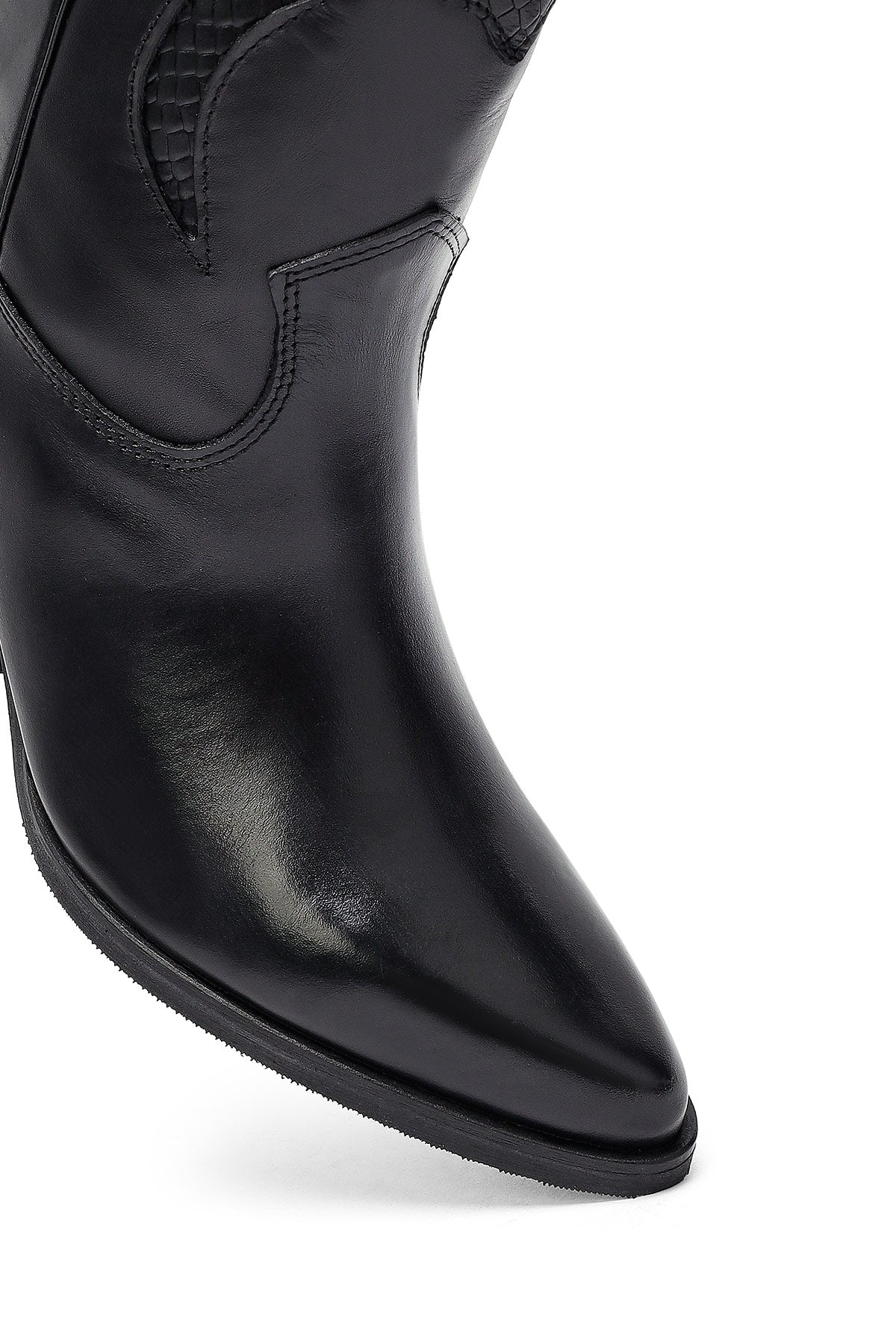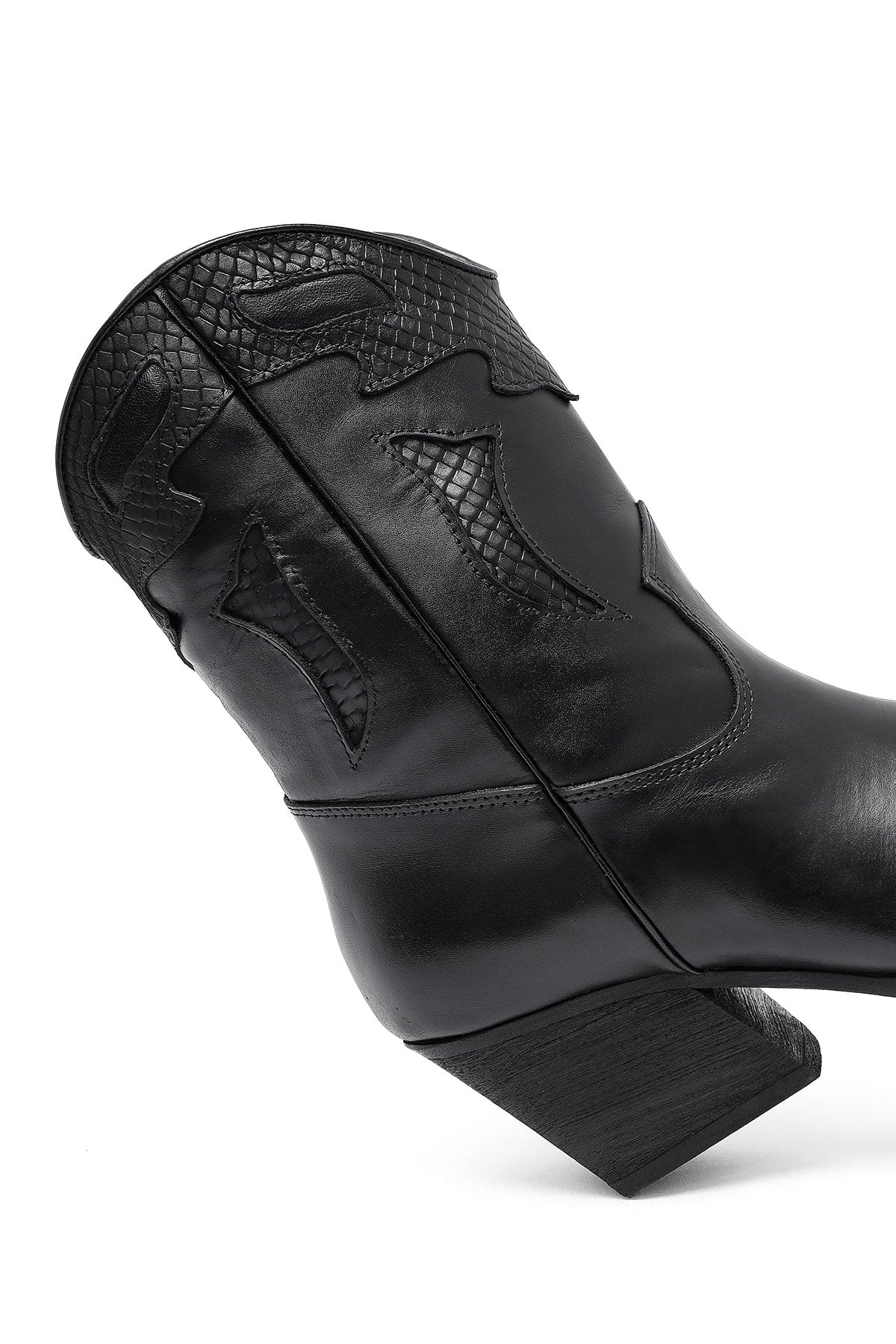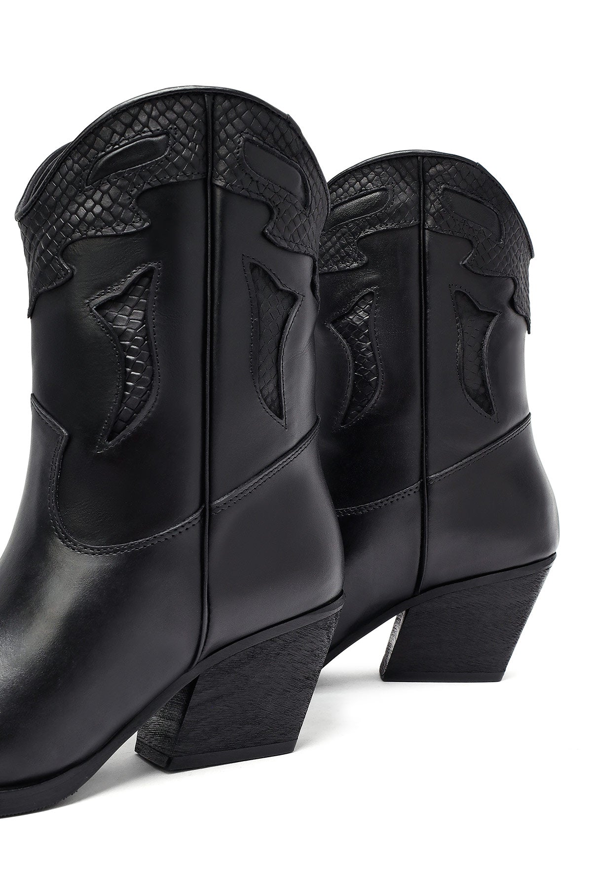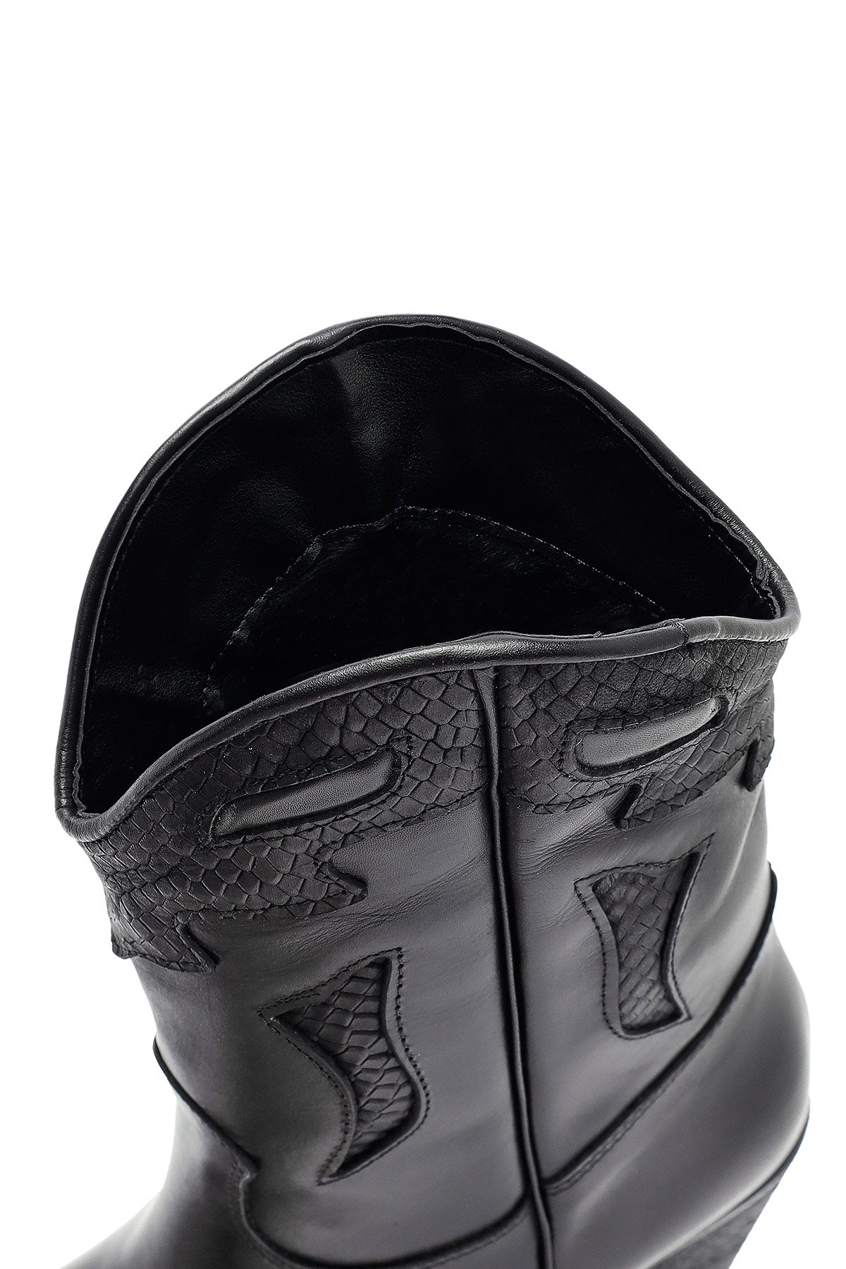 Kadın Siyah Kısa Kalın Topuklu Deri Kovboy Bot