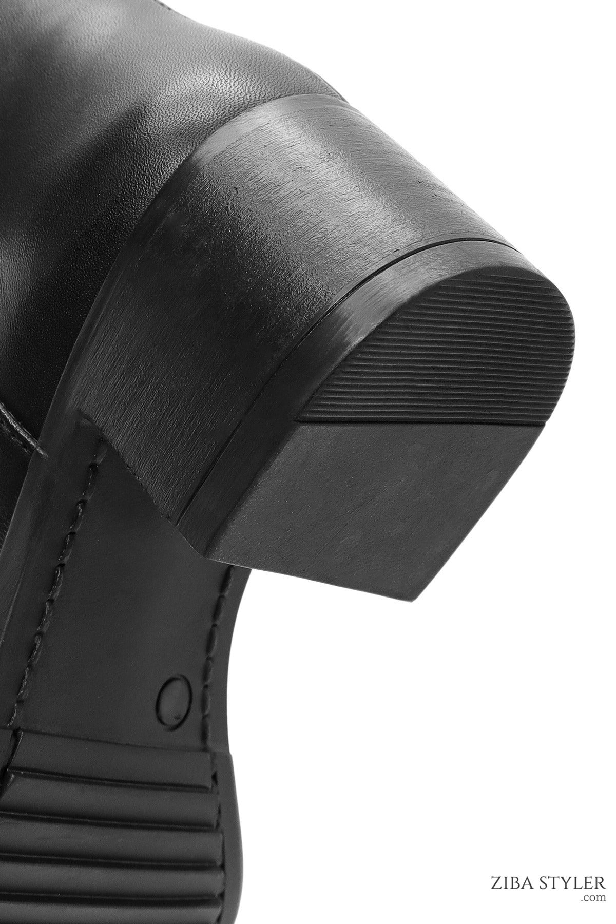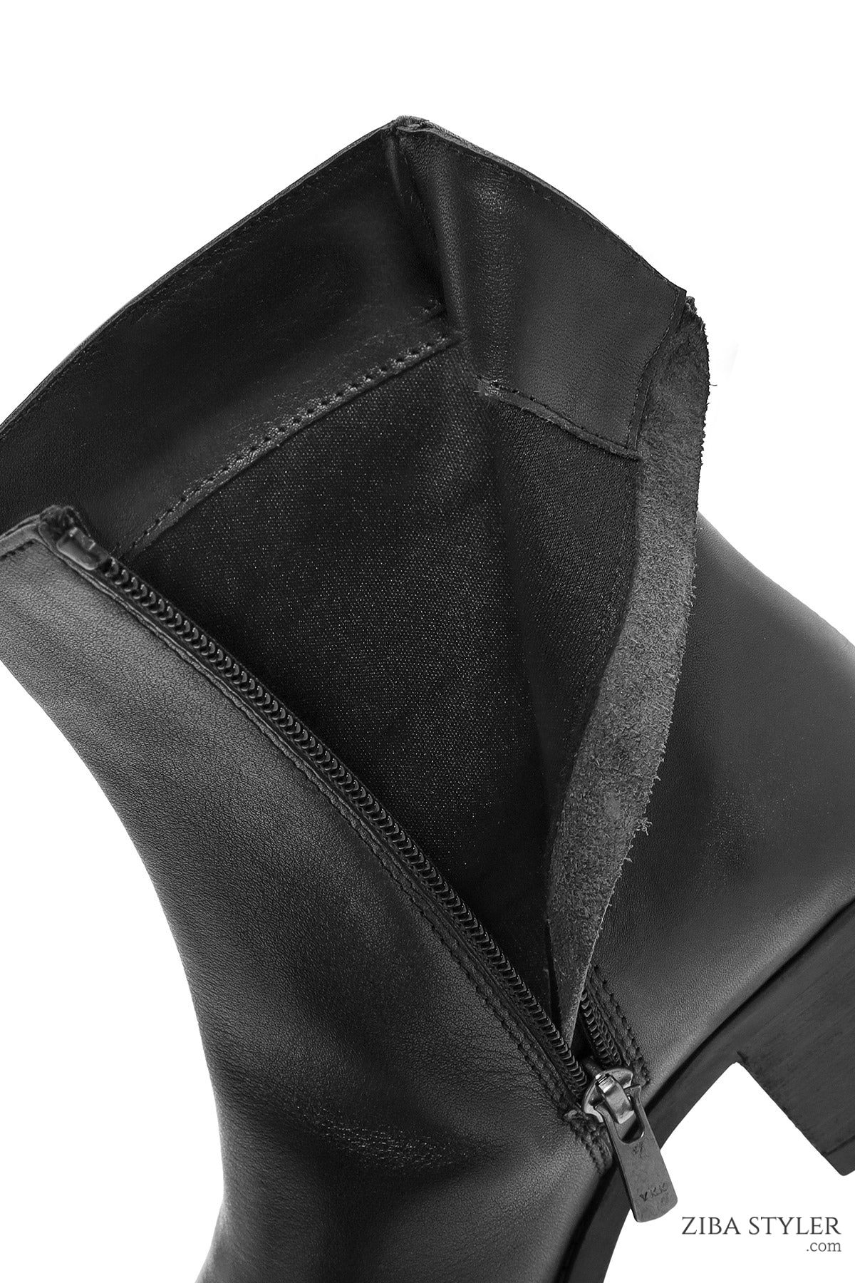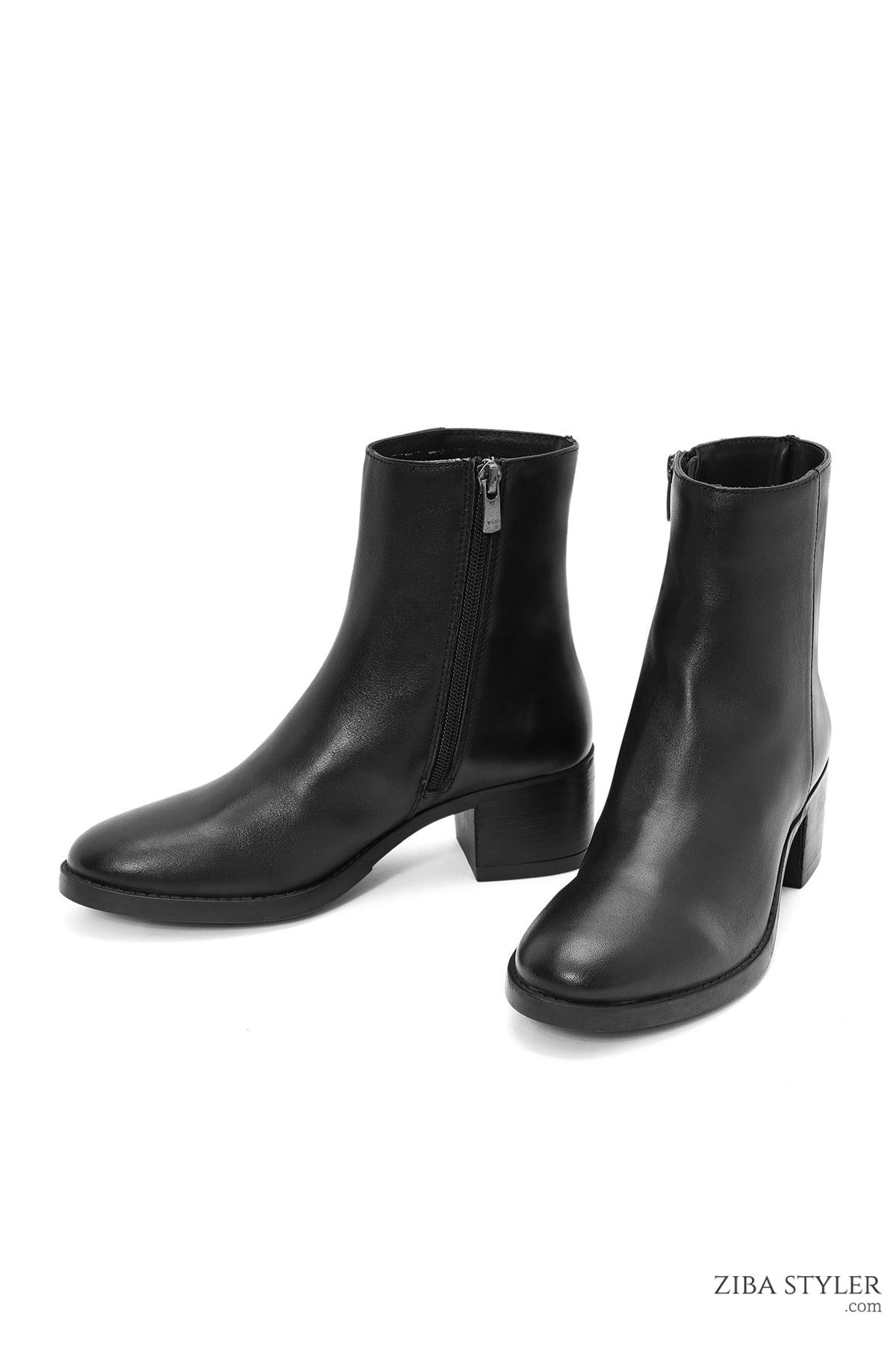 بوت زنانه مشکی چرمی زیپدار پاشنه پهن کوتاه دری مد