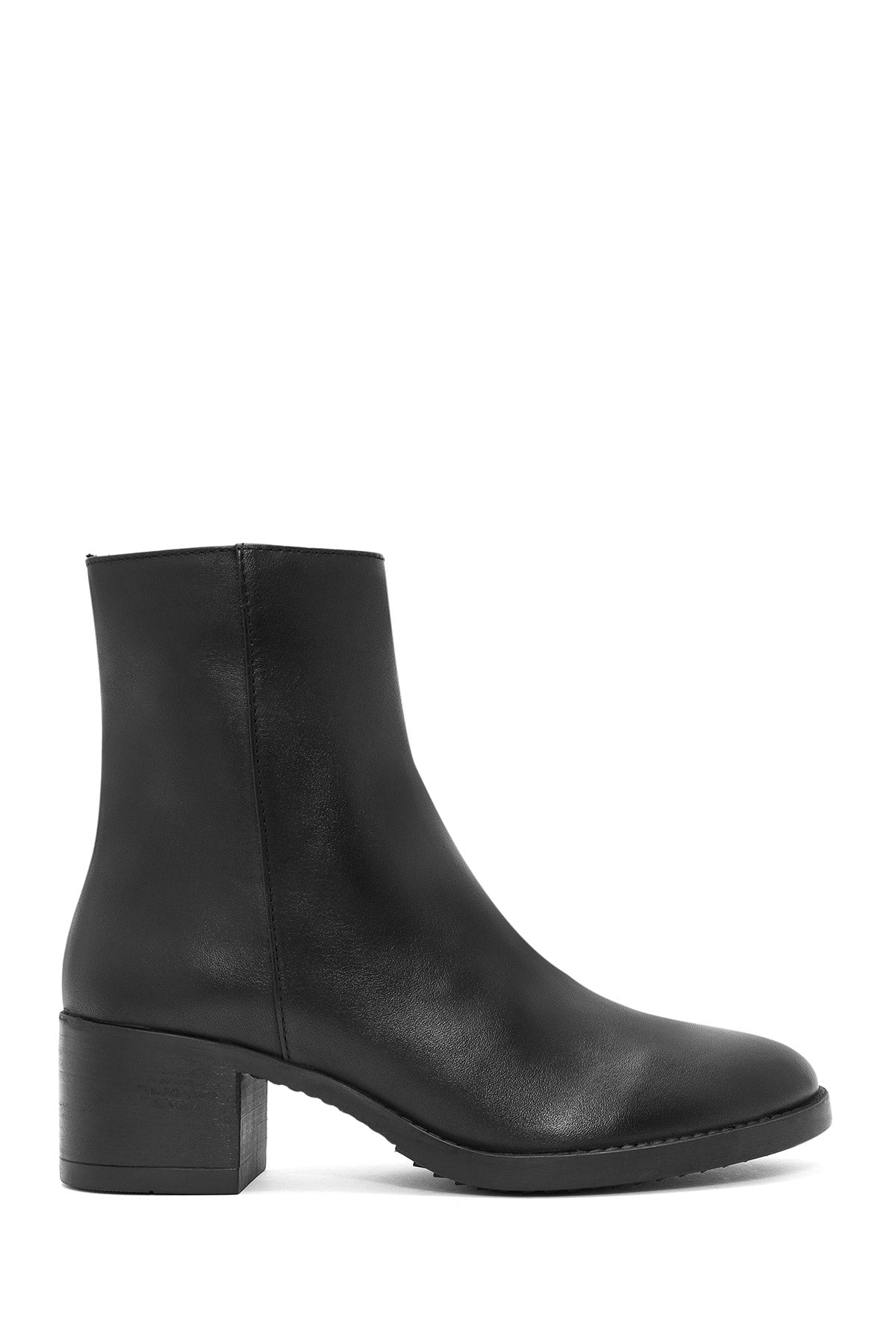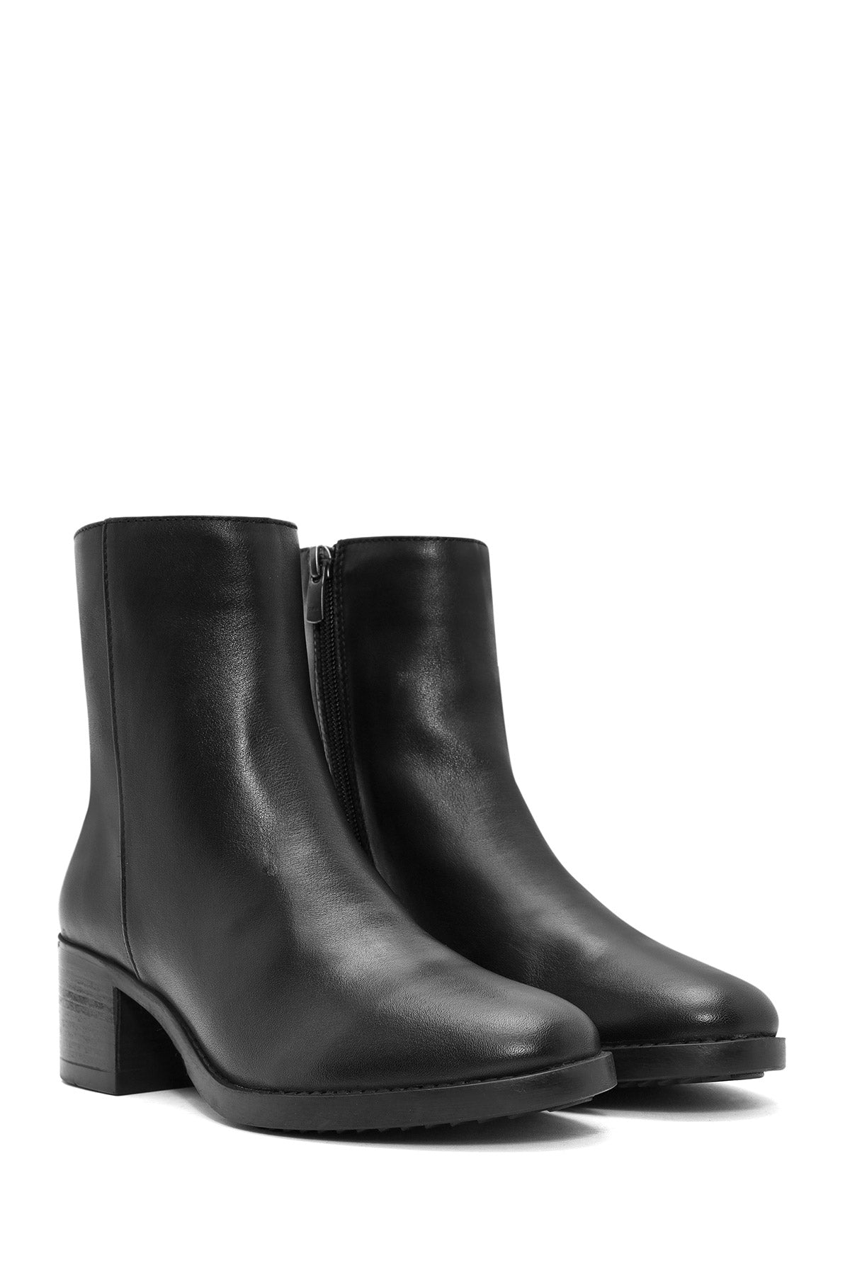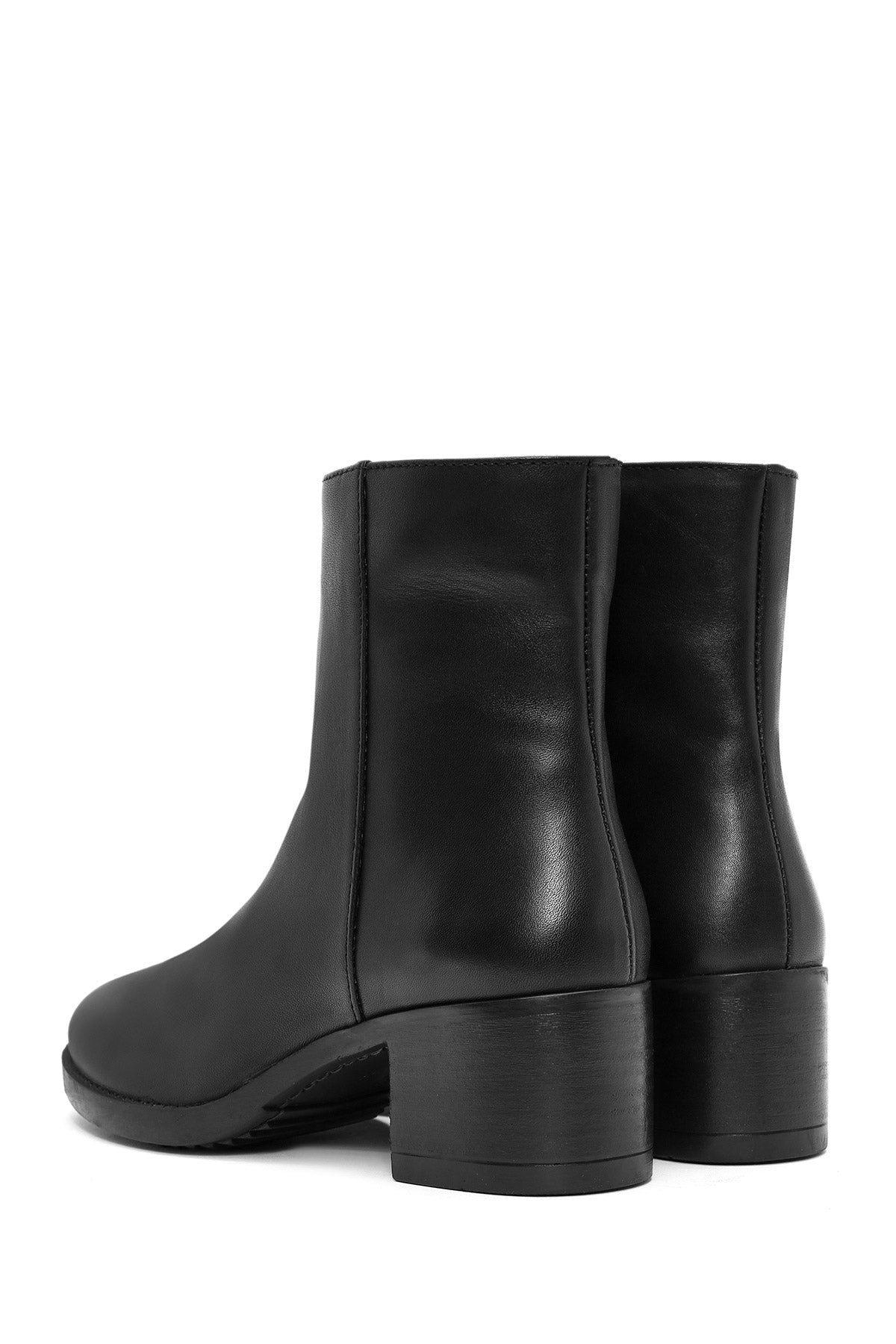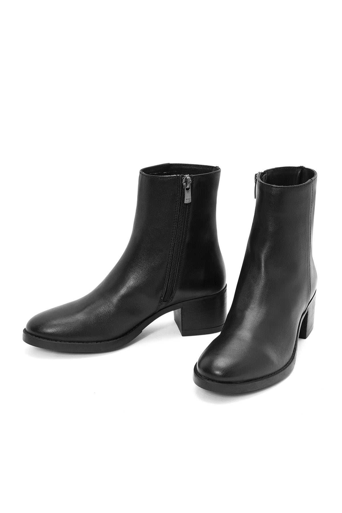 Kadın Siyah Fermuarlı Kısa Kalın Topuklu Deri Bot