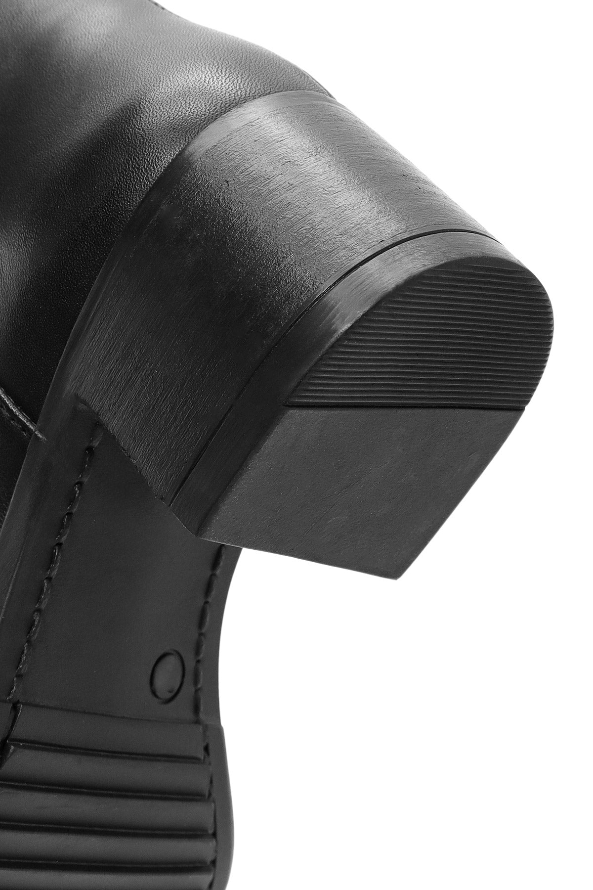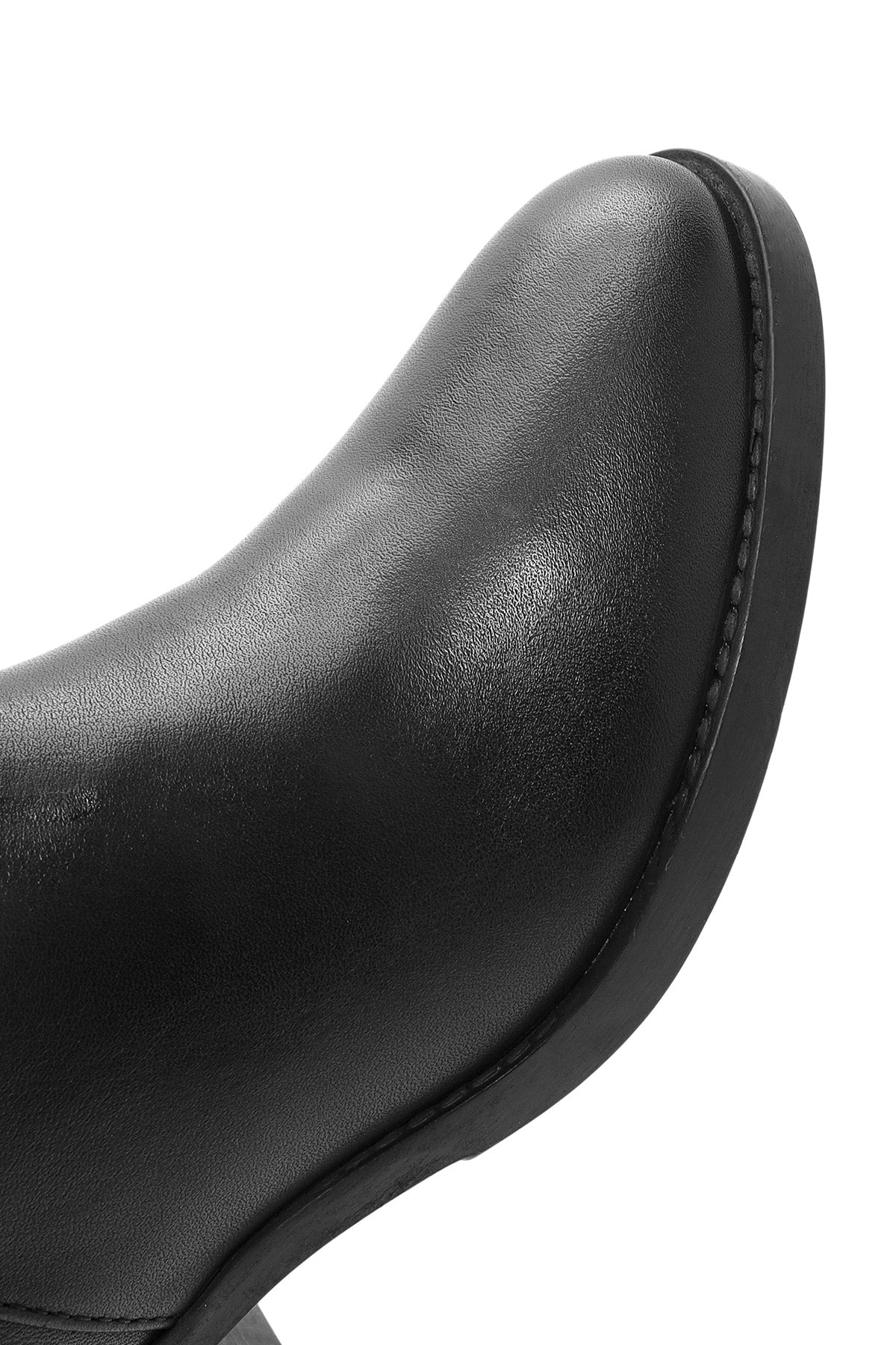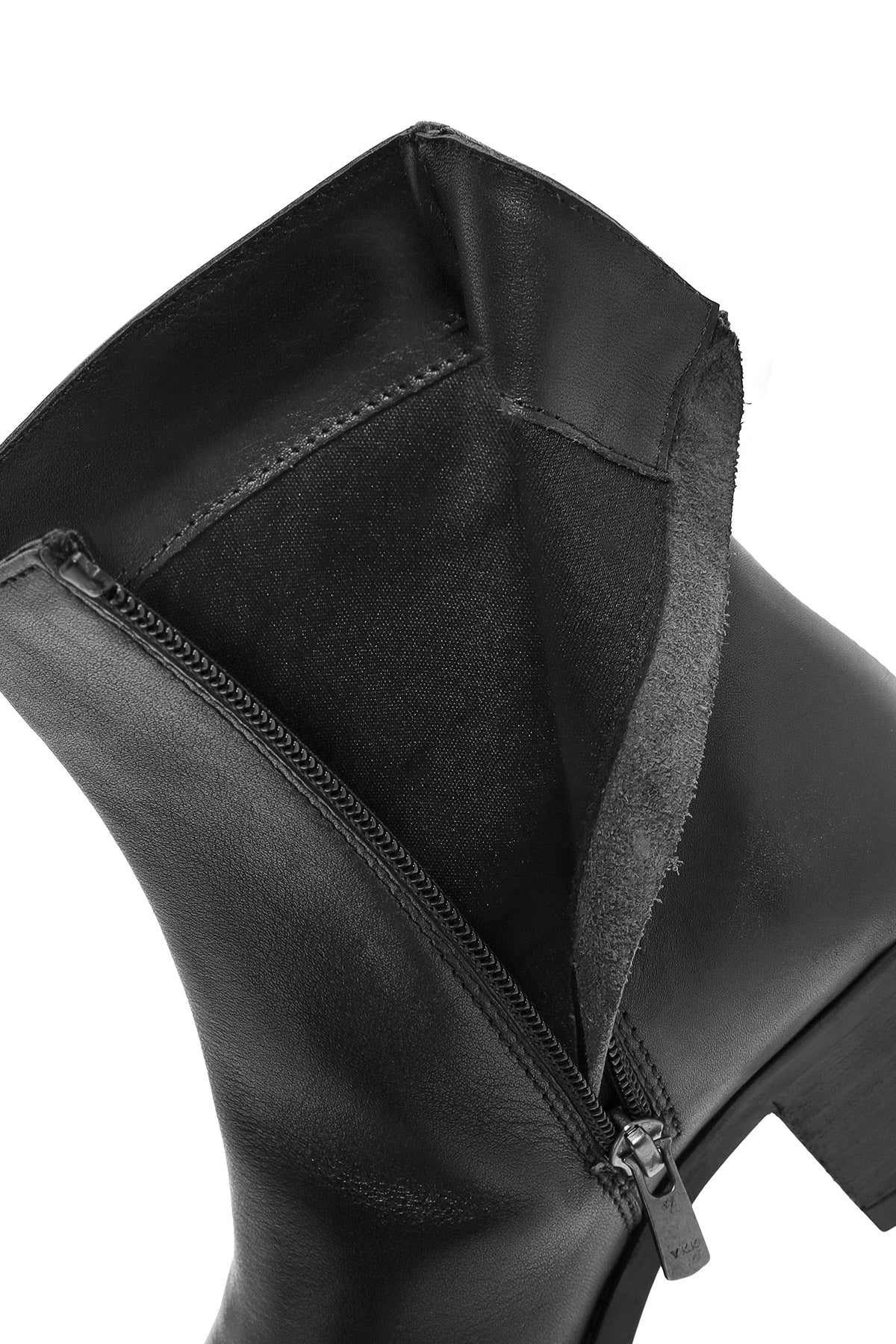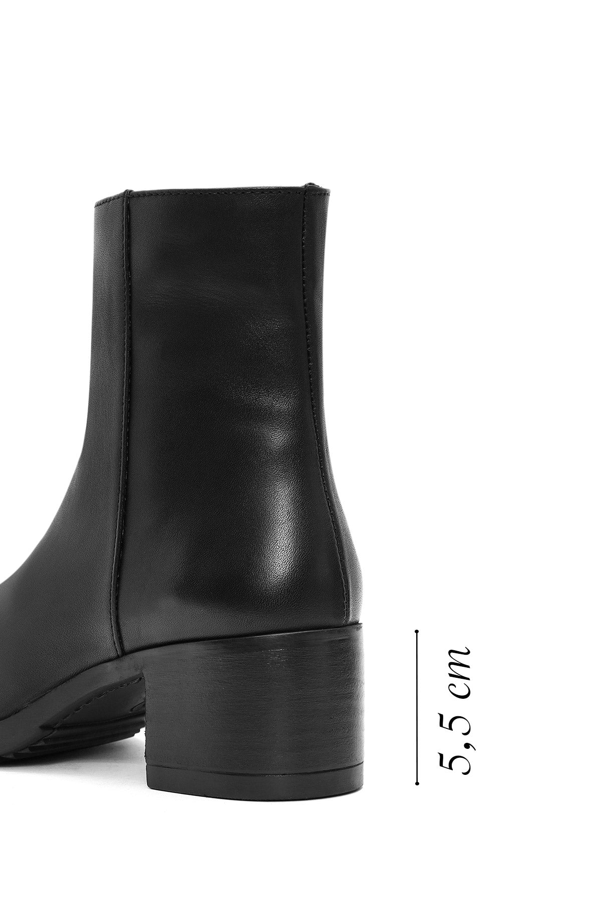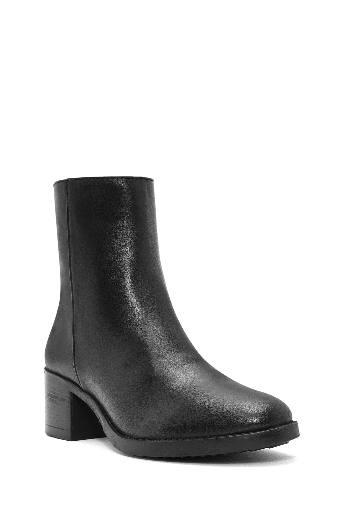Kadın Siyah Fermuarlı Kısa Kalın Topuklu Deri Bot