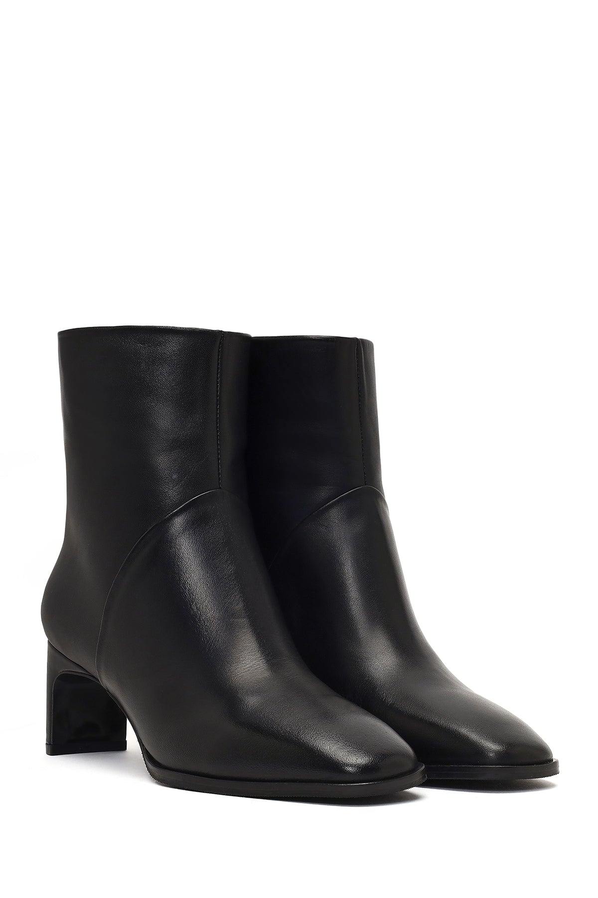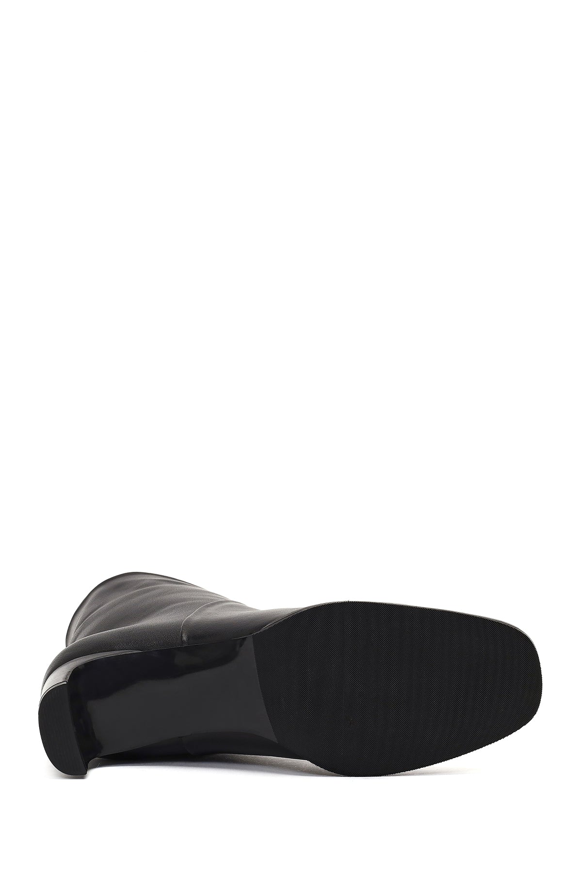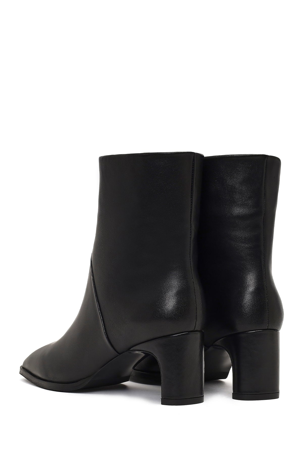 Kadın Siyah Kısa Kalın Topuklu Deri Bot