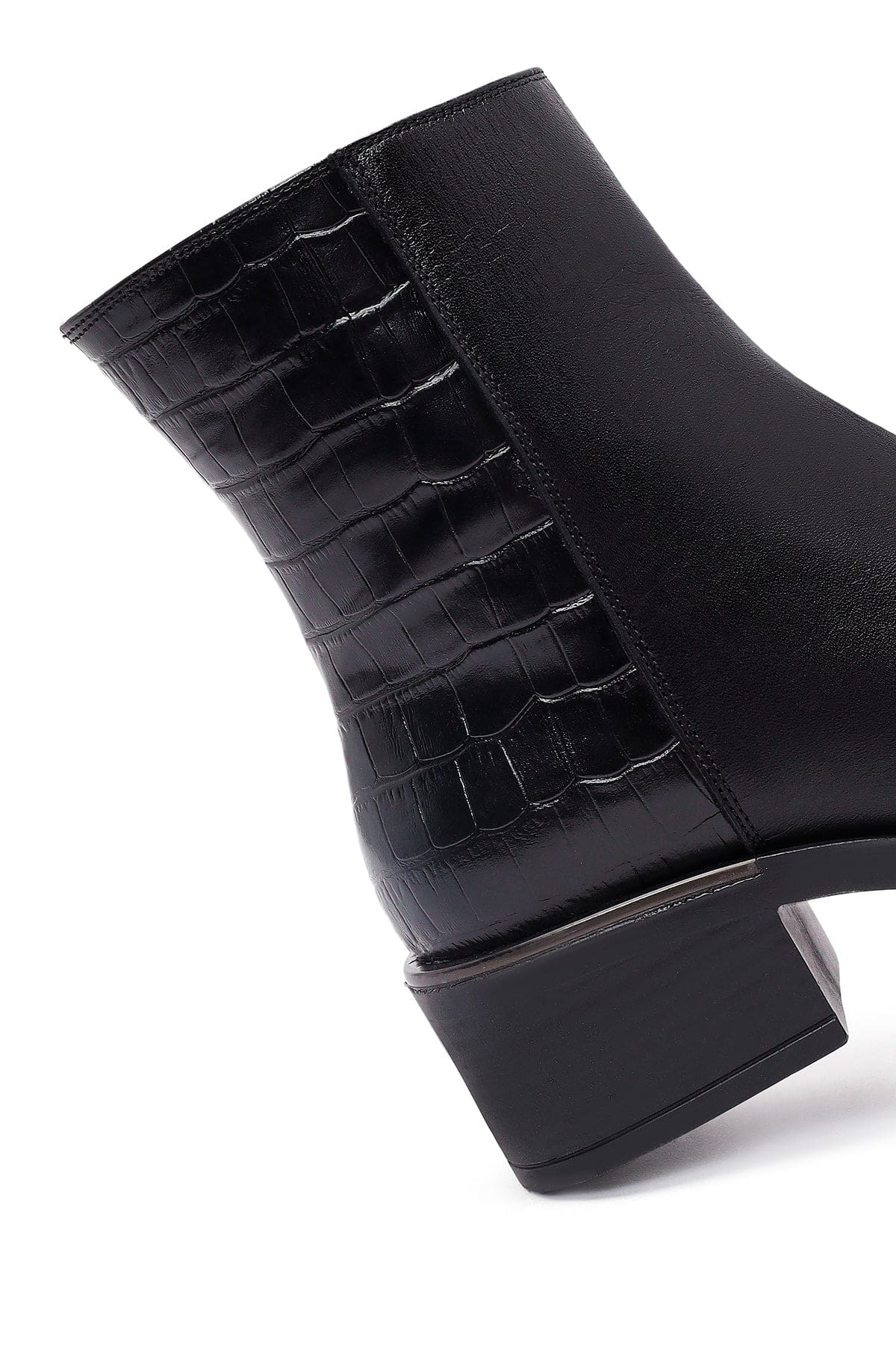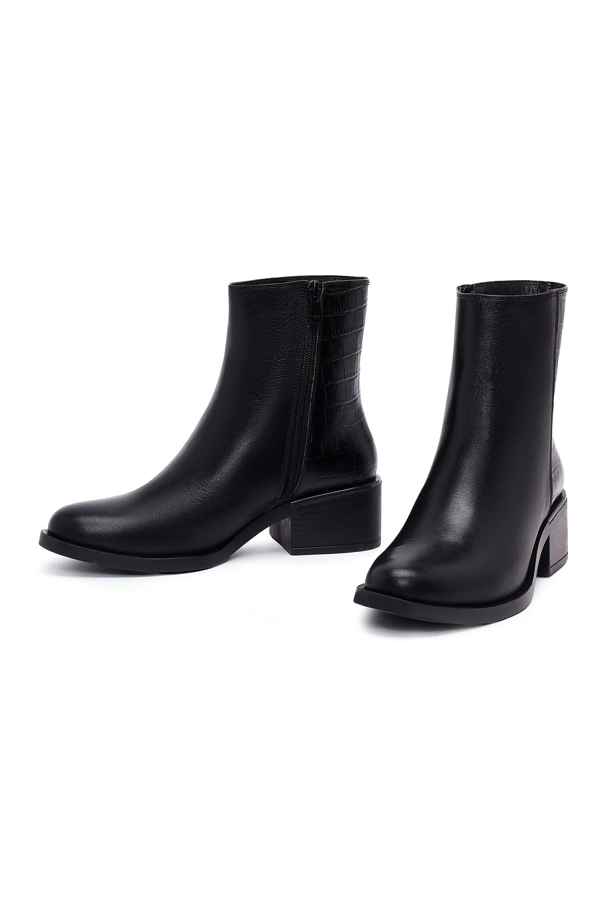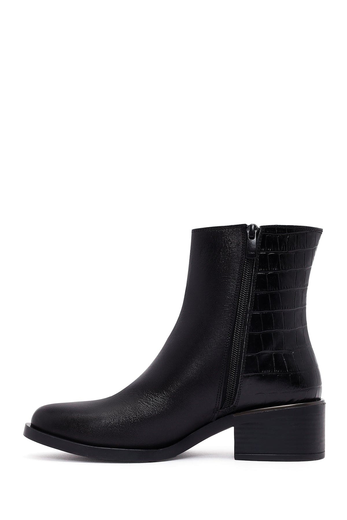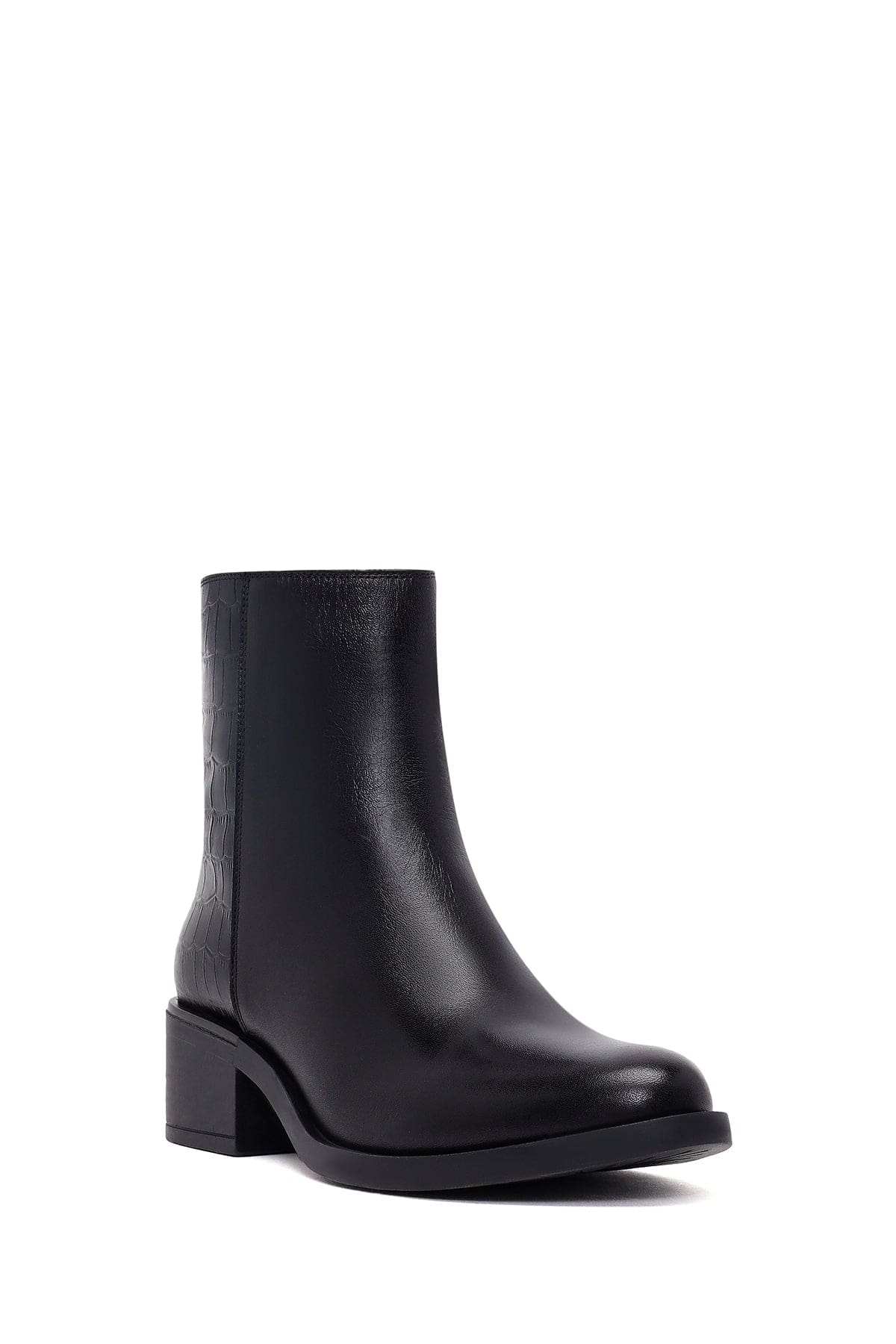 Kadın Siyah Fermuarlı Kısa Kalın Topuklu Deri Bot