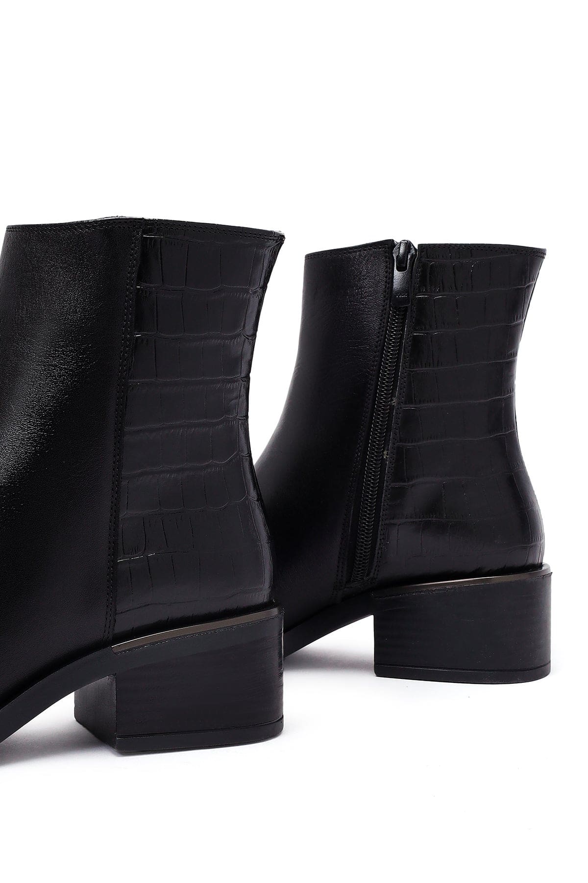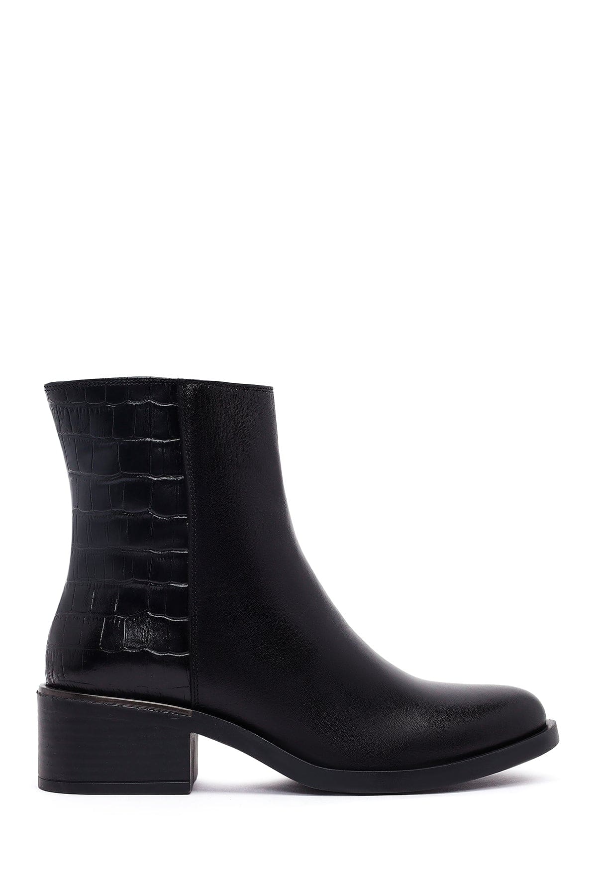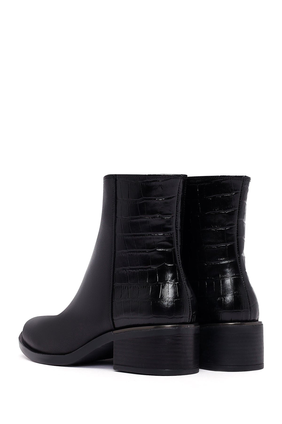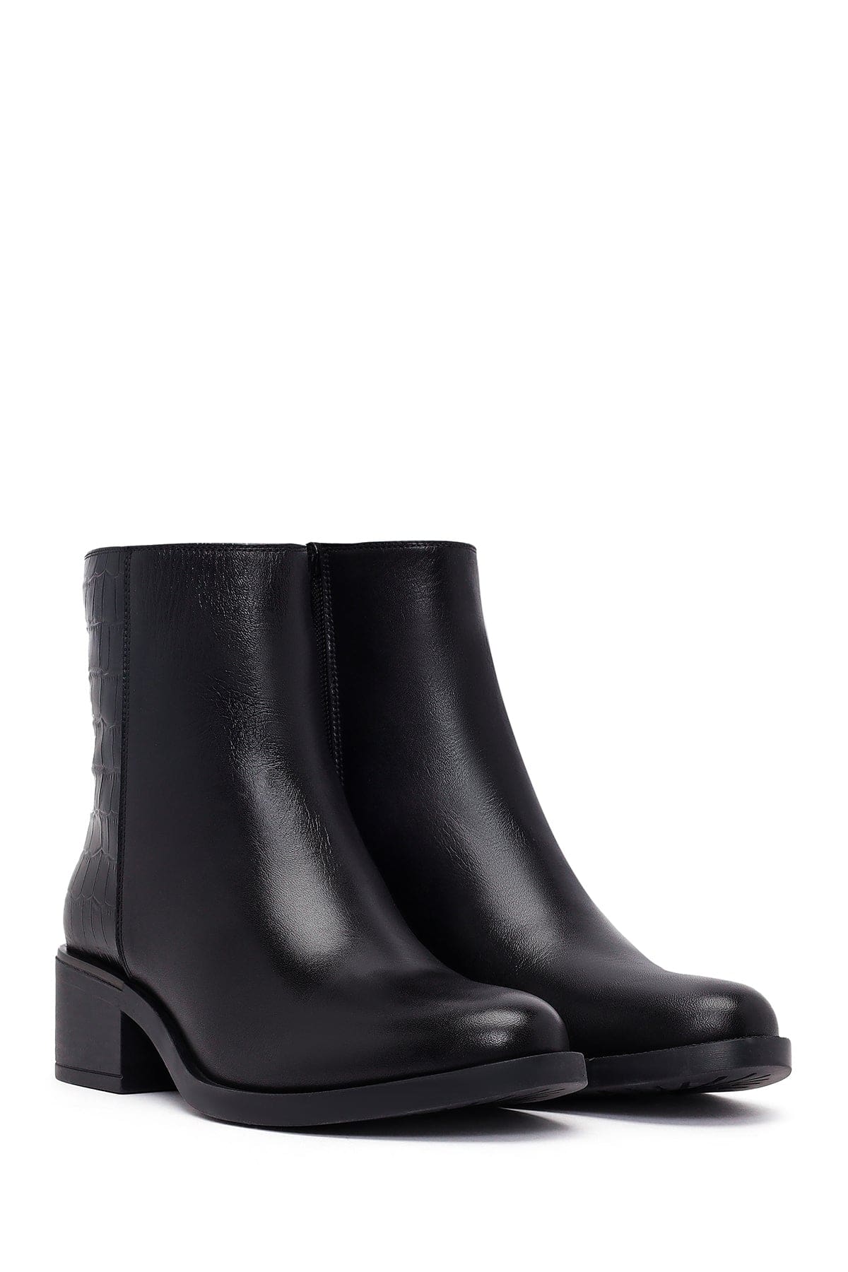 Kadın Siyah Fermuarlı Kısa Kalın Topuklu Deri Bot