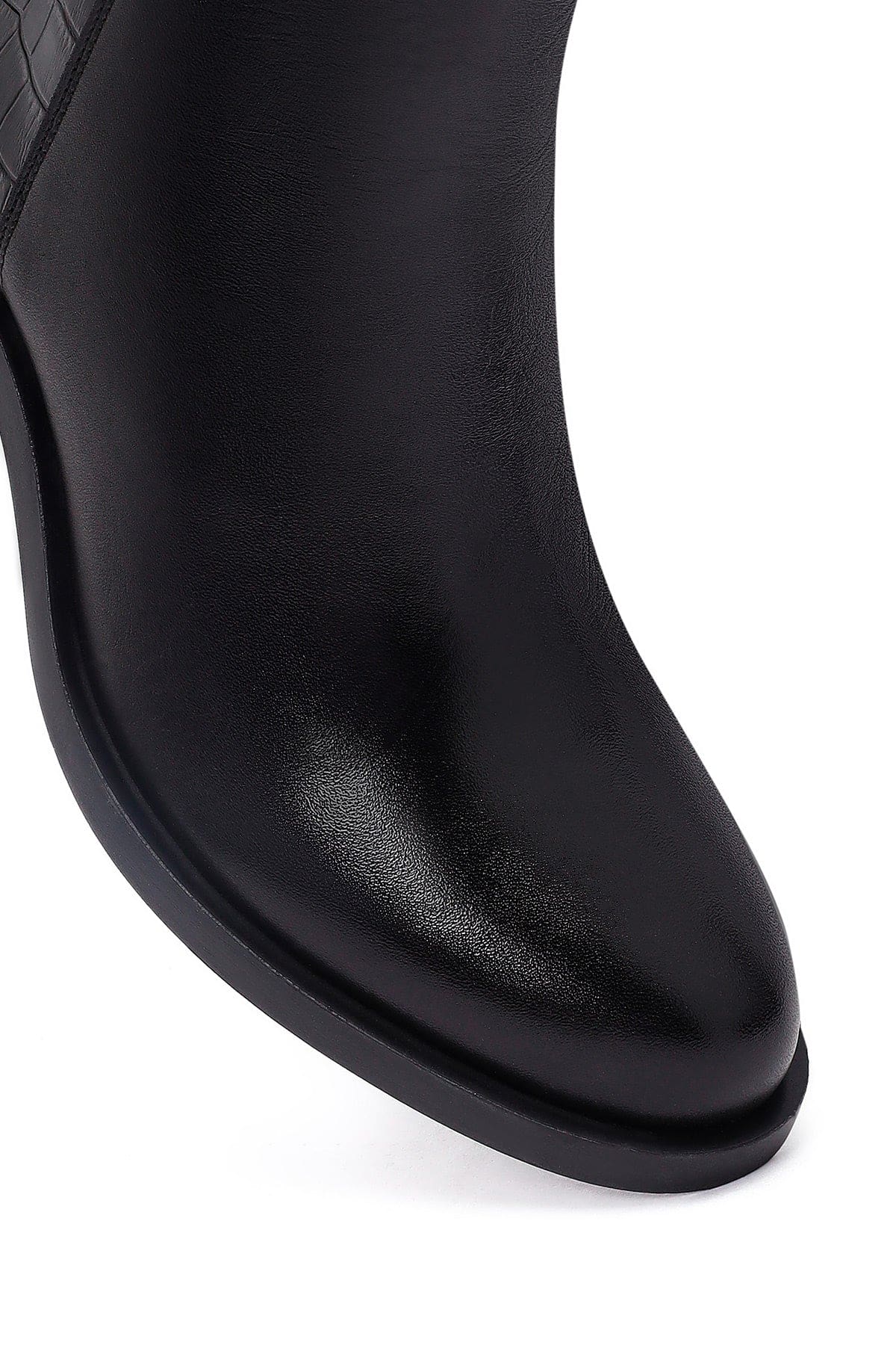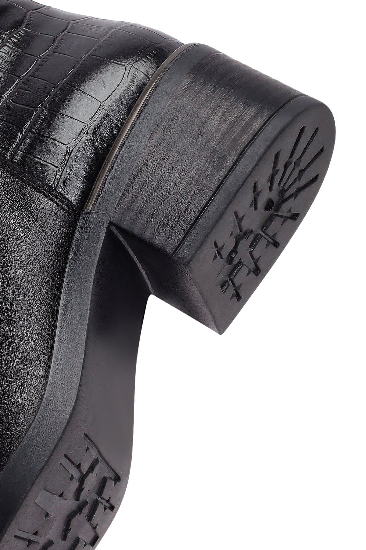 بوت زنانه چرم مشکی زیپدار پاشنهکوتاه ضخیم دری مد
