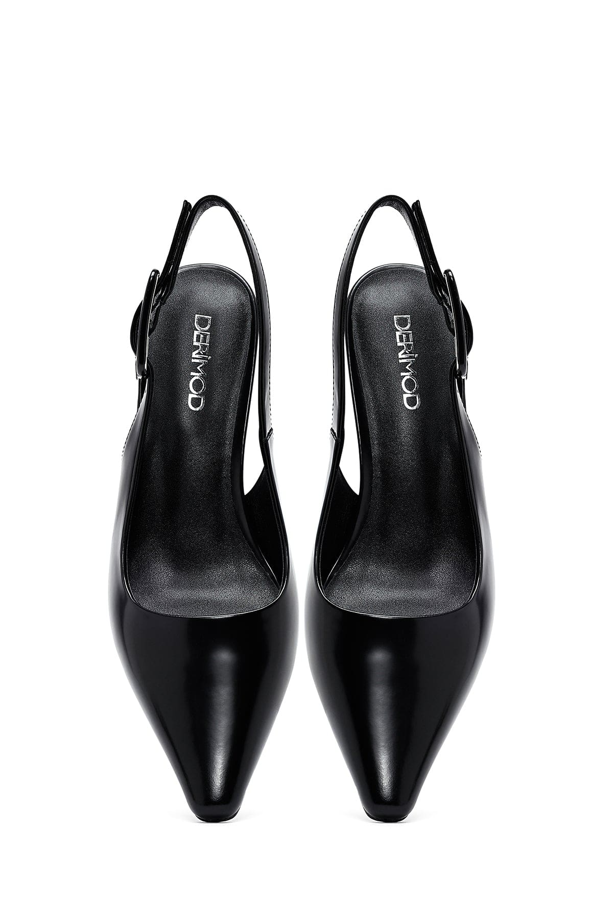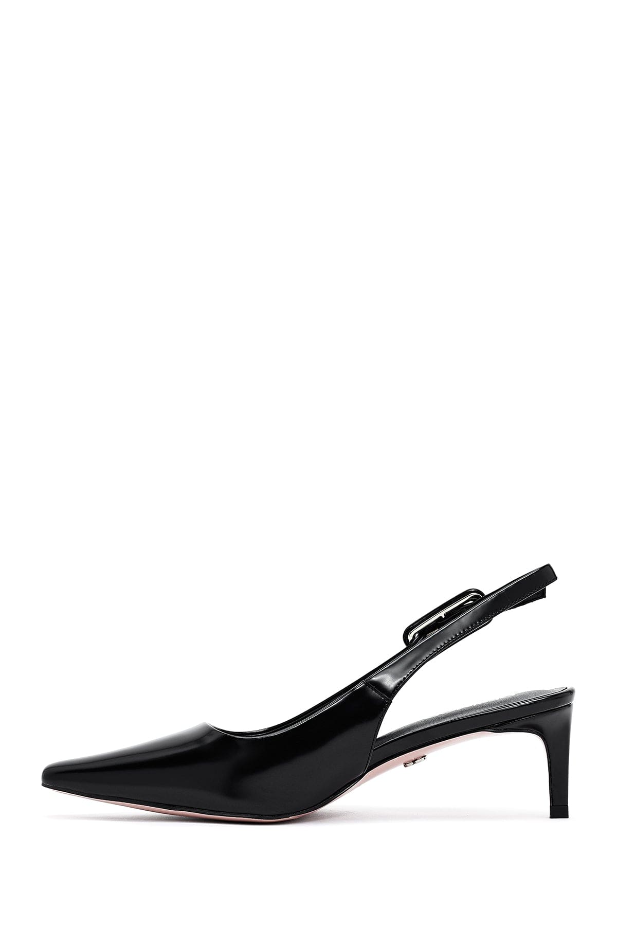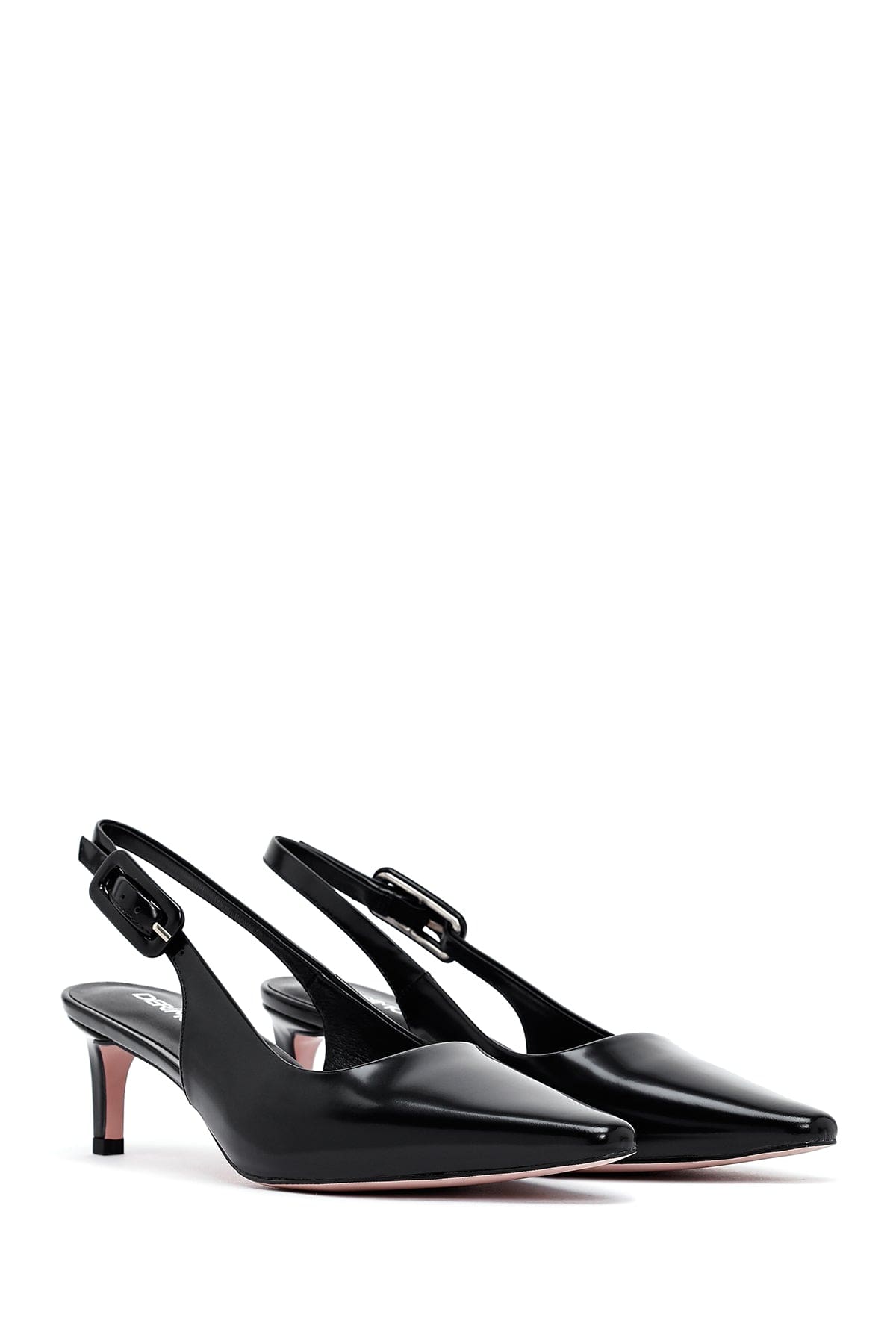 Kadın Siyah Arkası Açık Kısa İnce Topuklu Deri Ayakkabı
