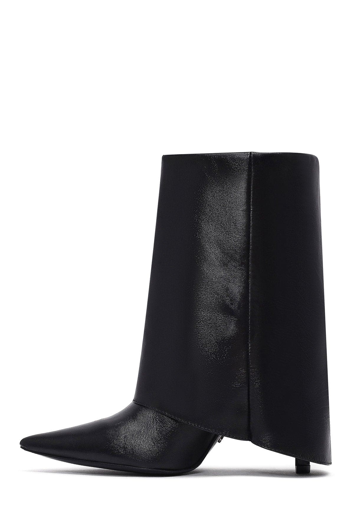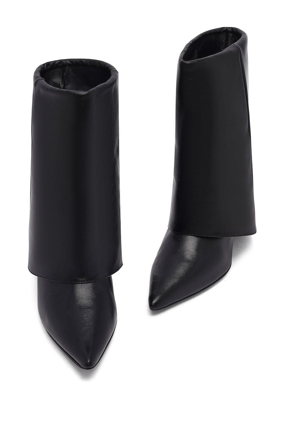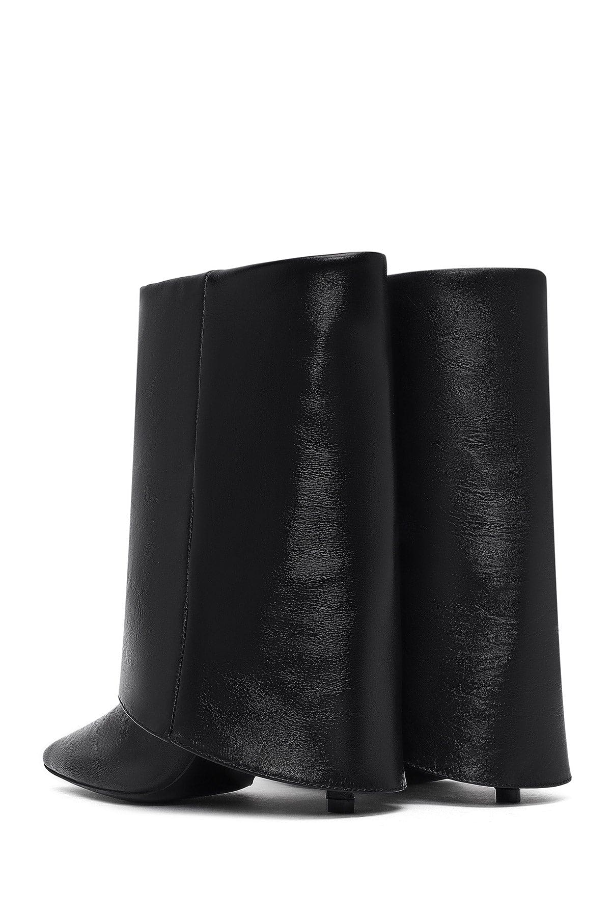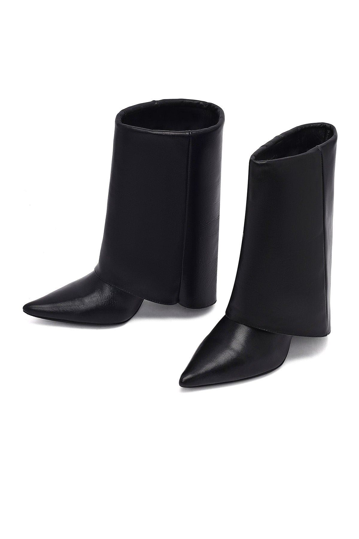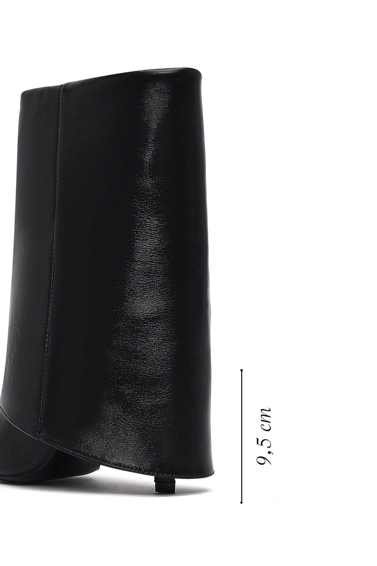 بوت زنانه مشکی چرمی پاشنه نازک دری مد