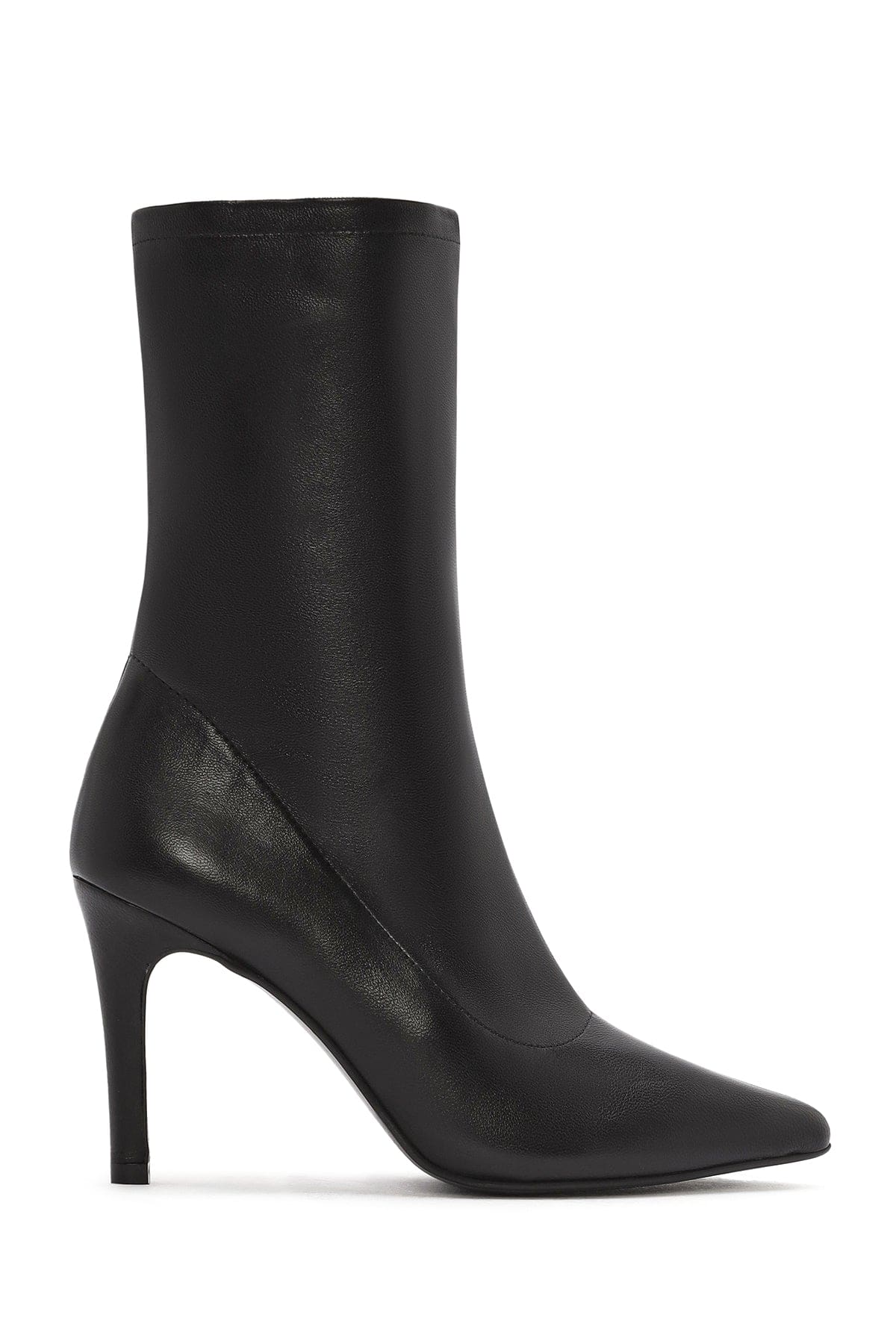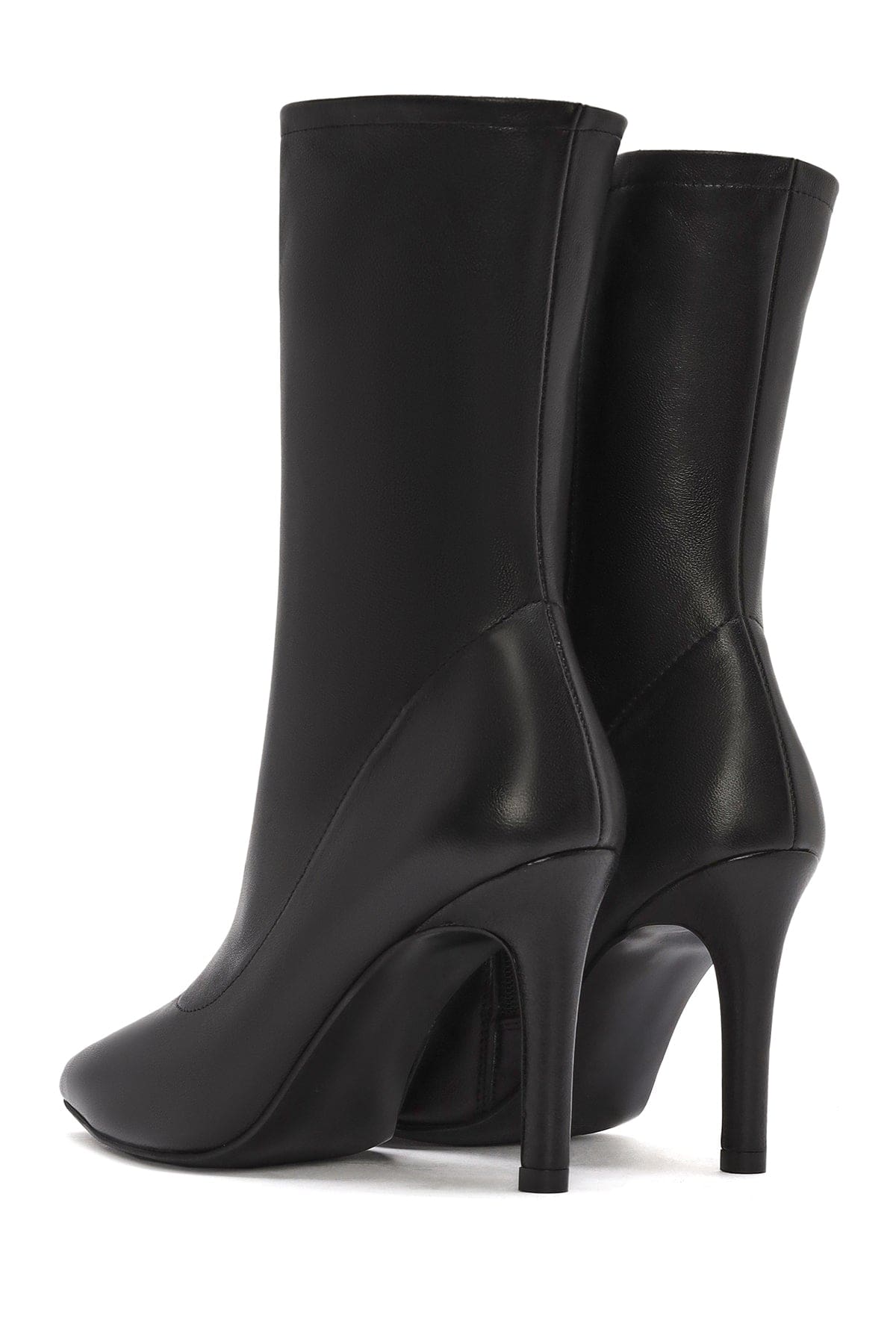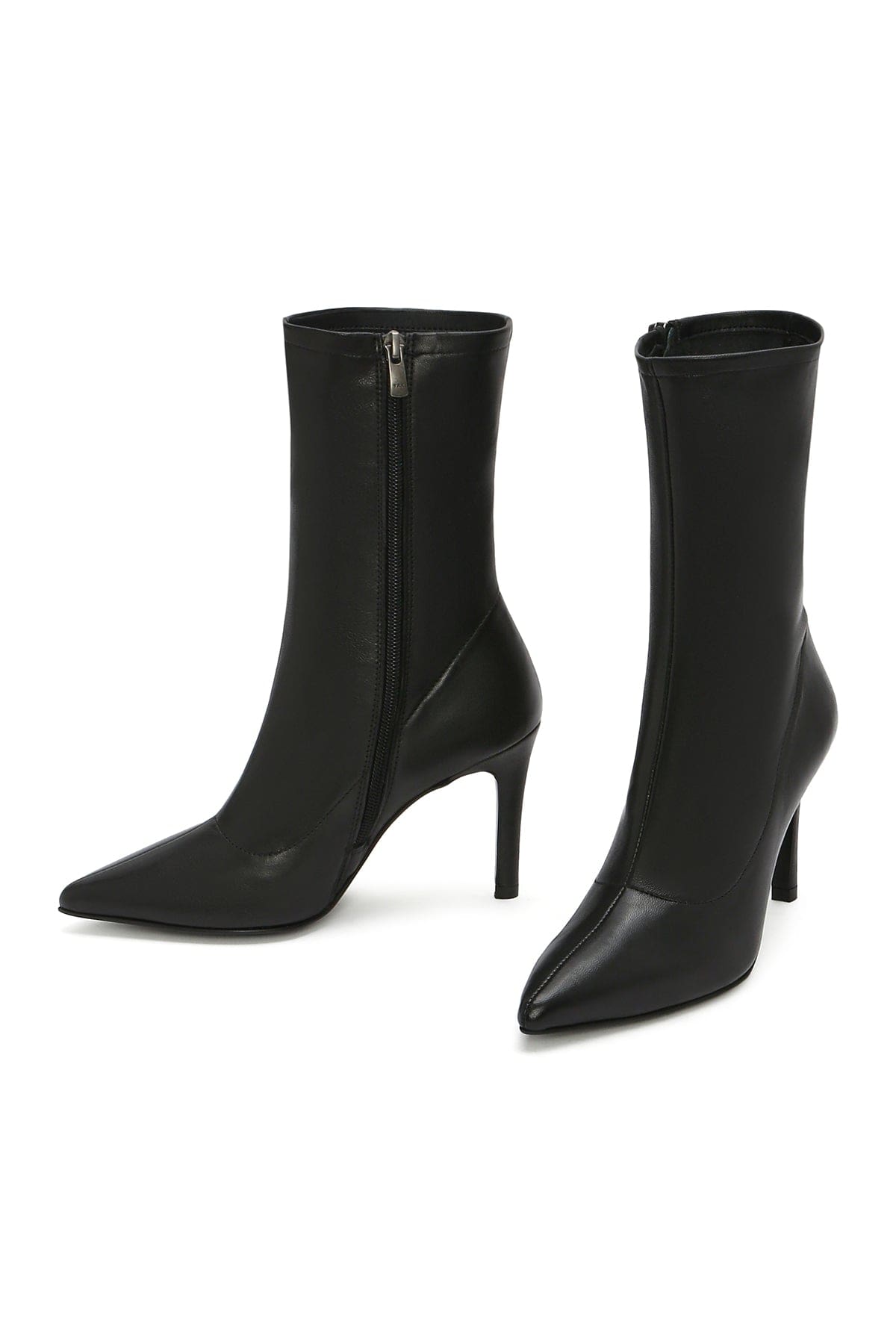 Kadın Siyah Fermuarlı İnce Topuklu Deri Bot