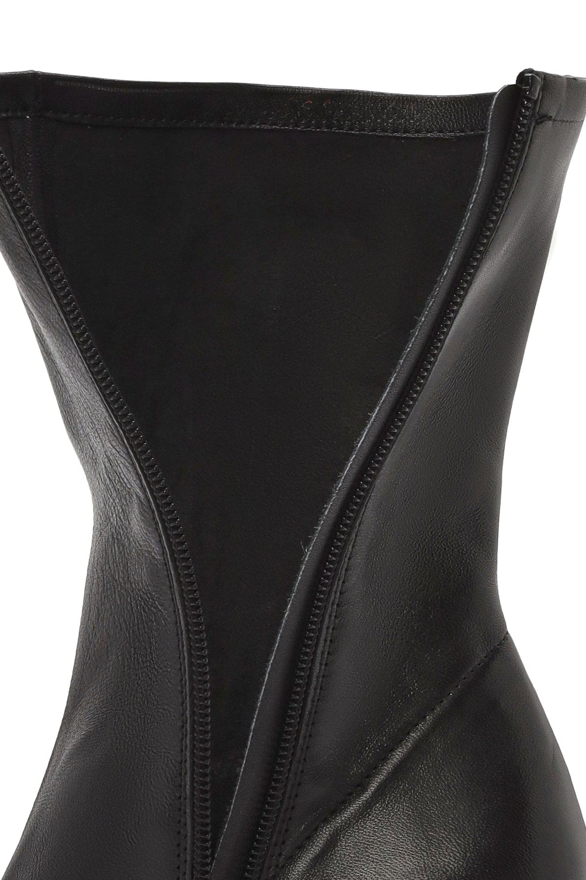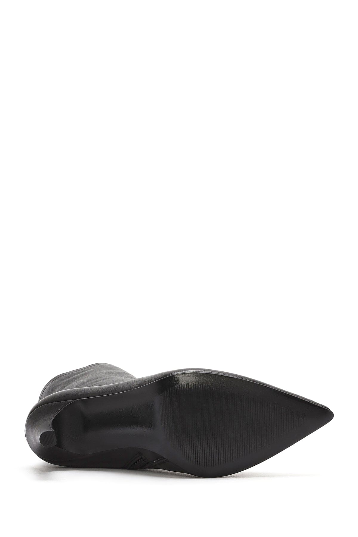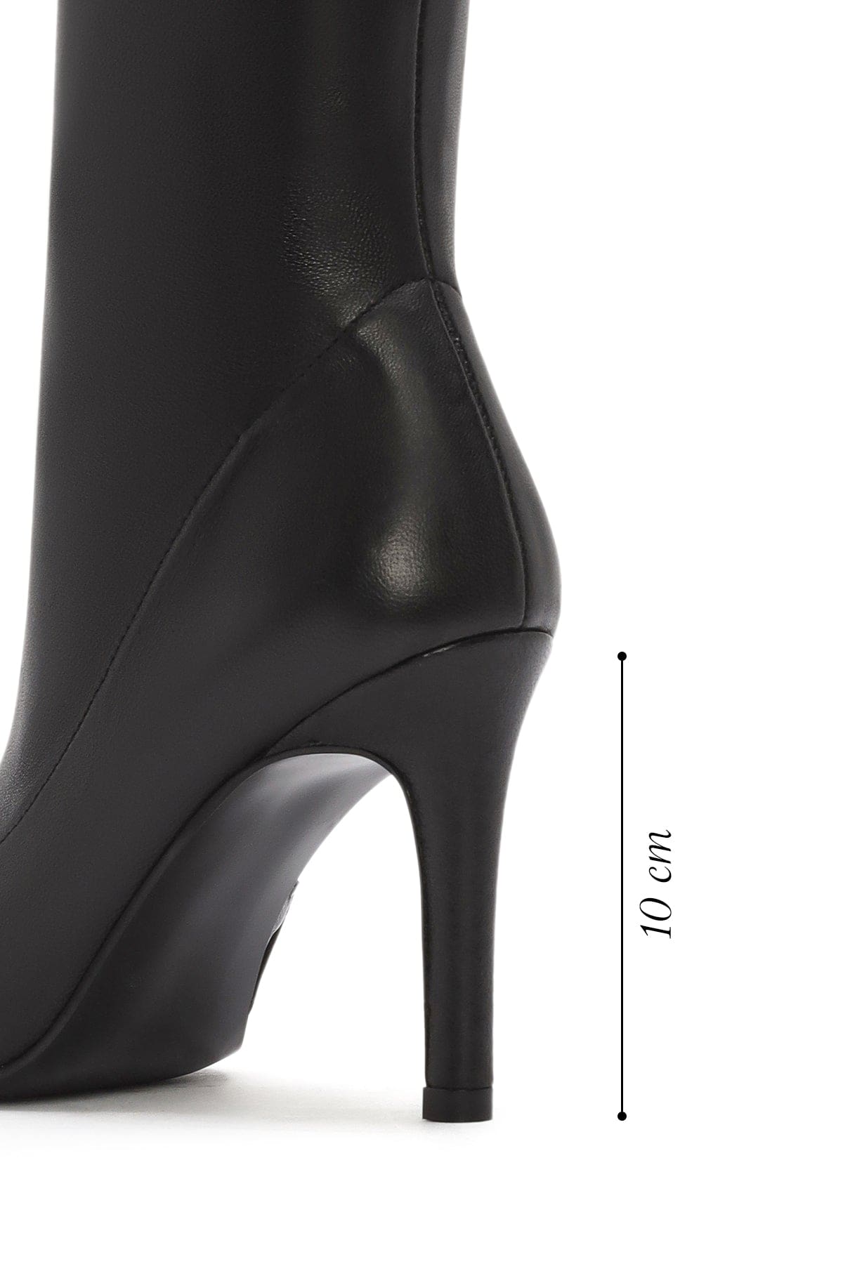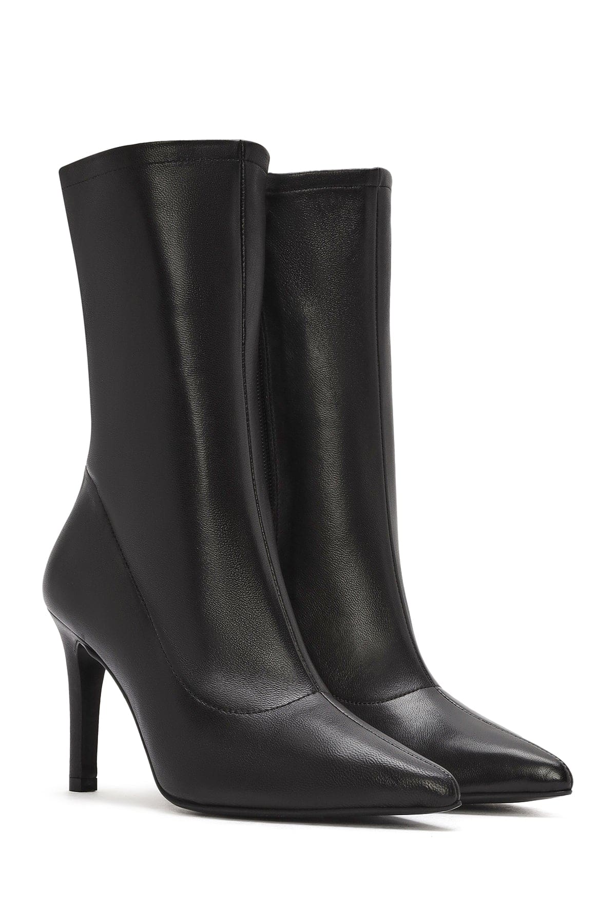 Kadın Siyah Fermuarlı İnce Topuklu Deri Bot