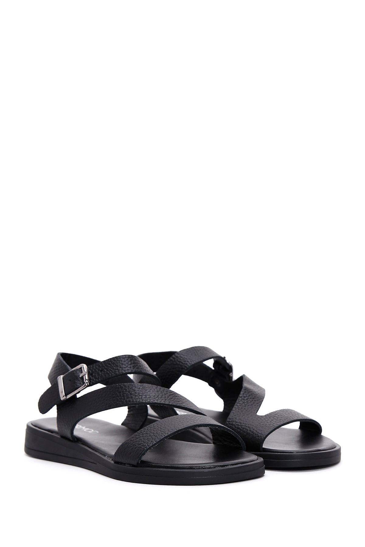 Kadın Siyah Bilekten Bantlı Deri Sandalet