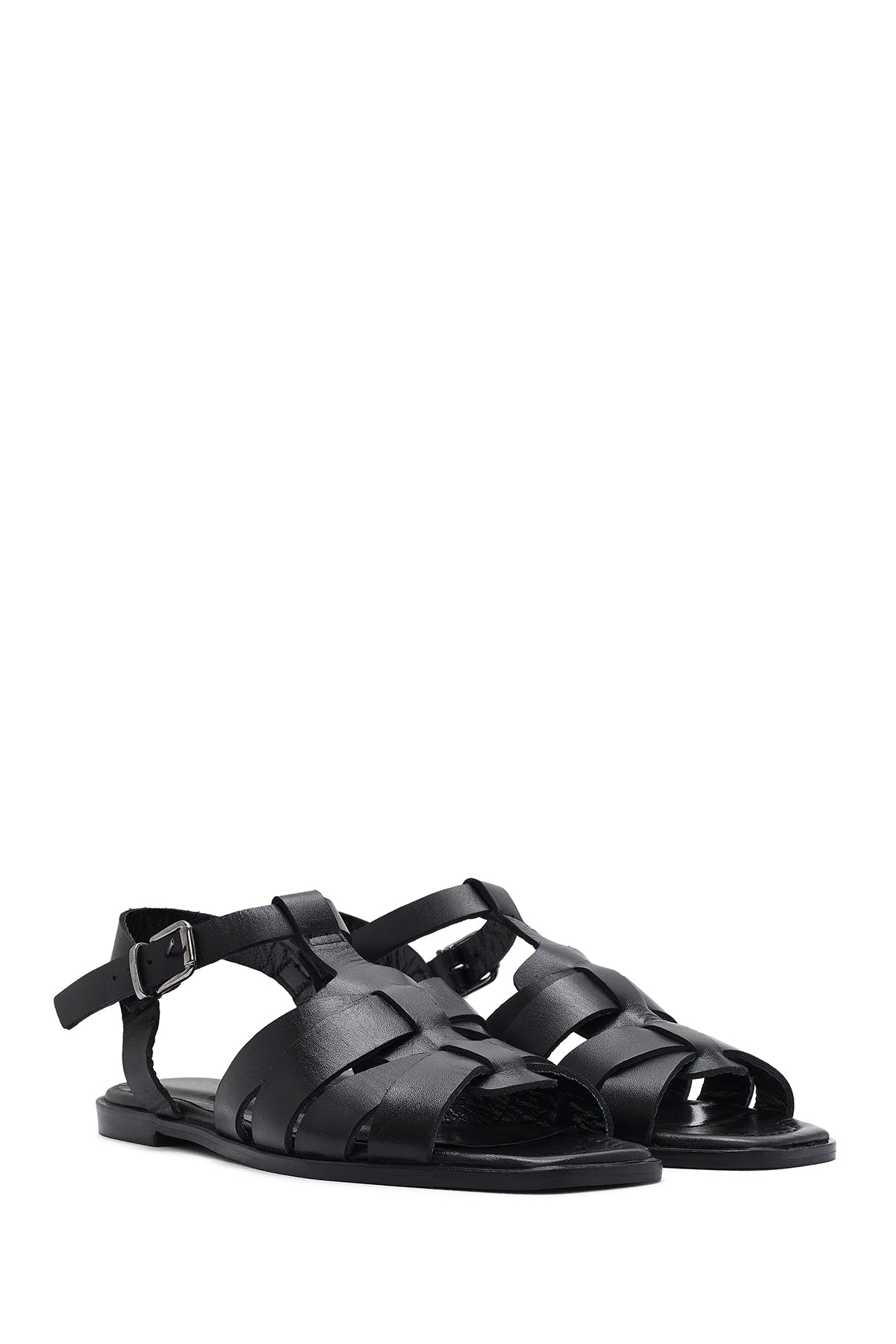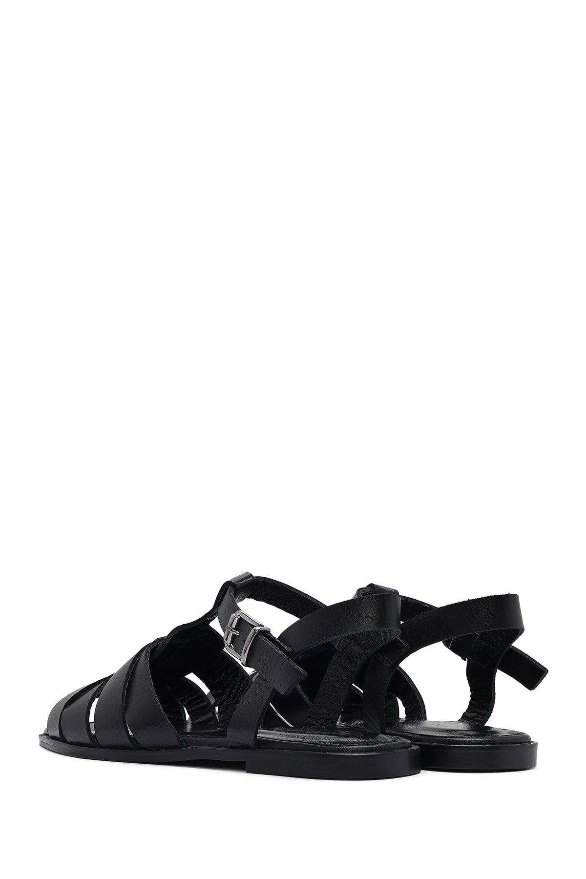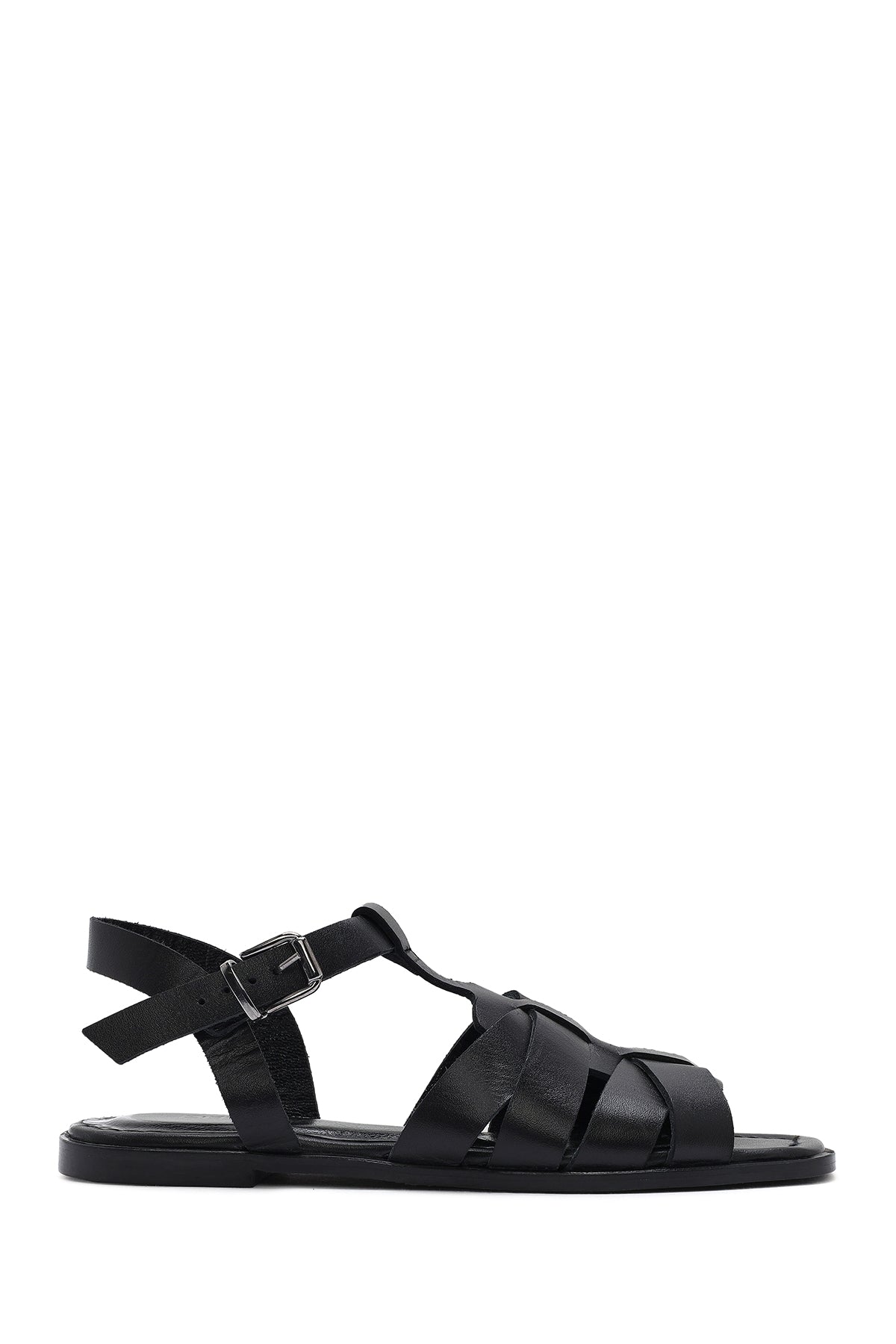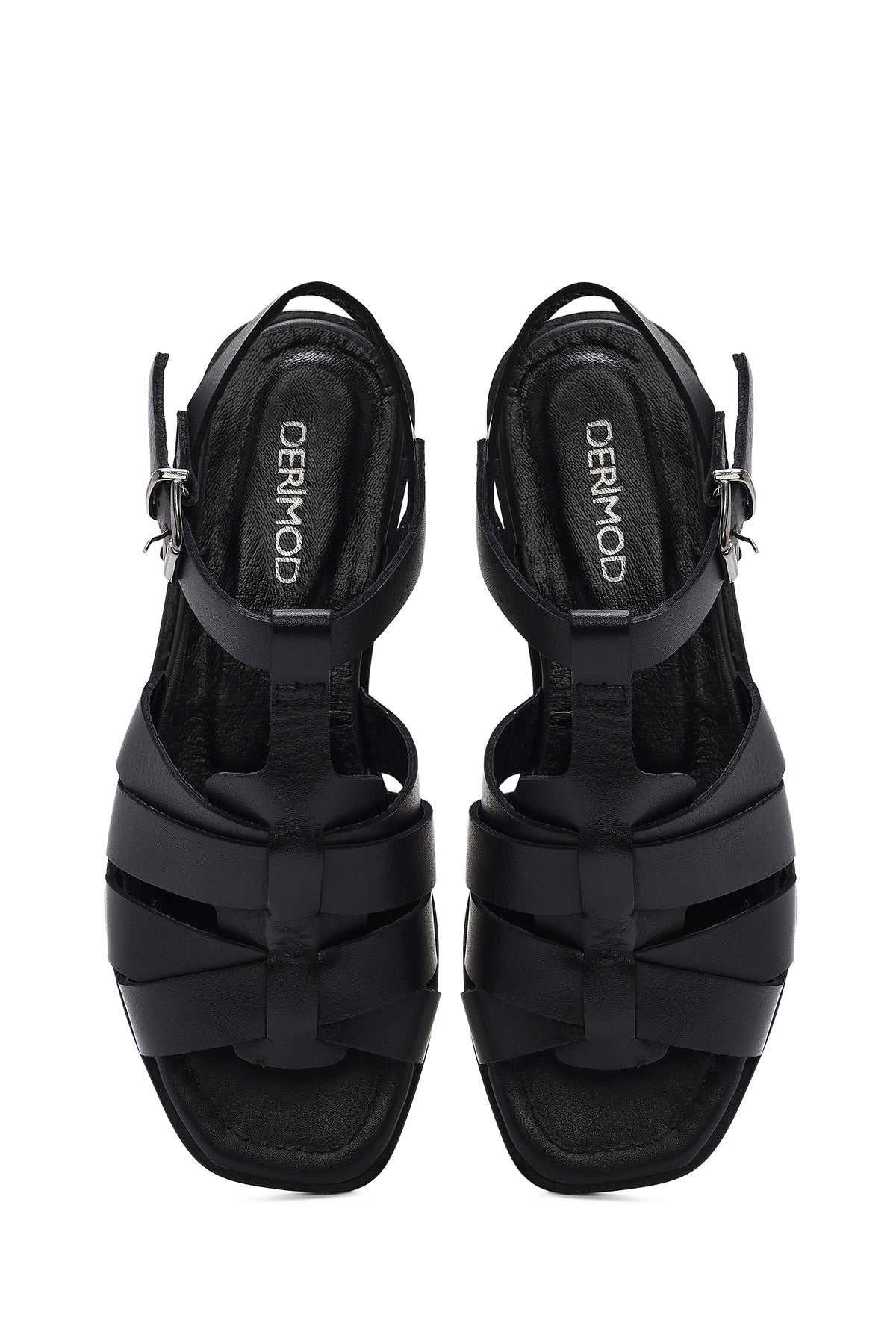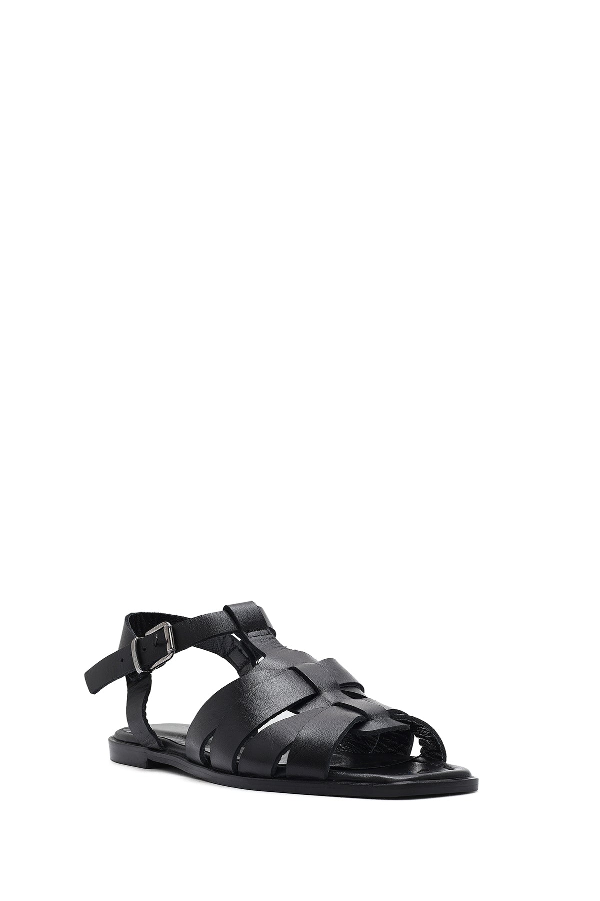 Kadın Siyah Bilekten Bantlı Deri Sandalet