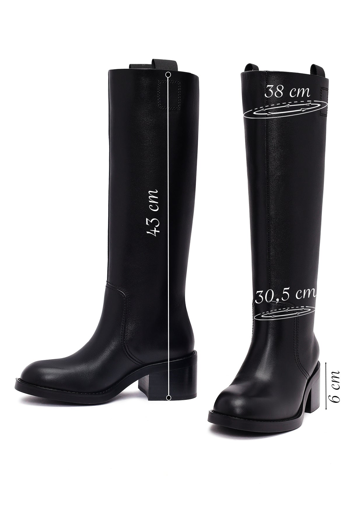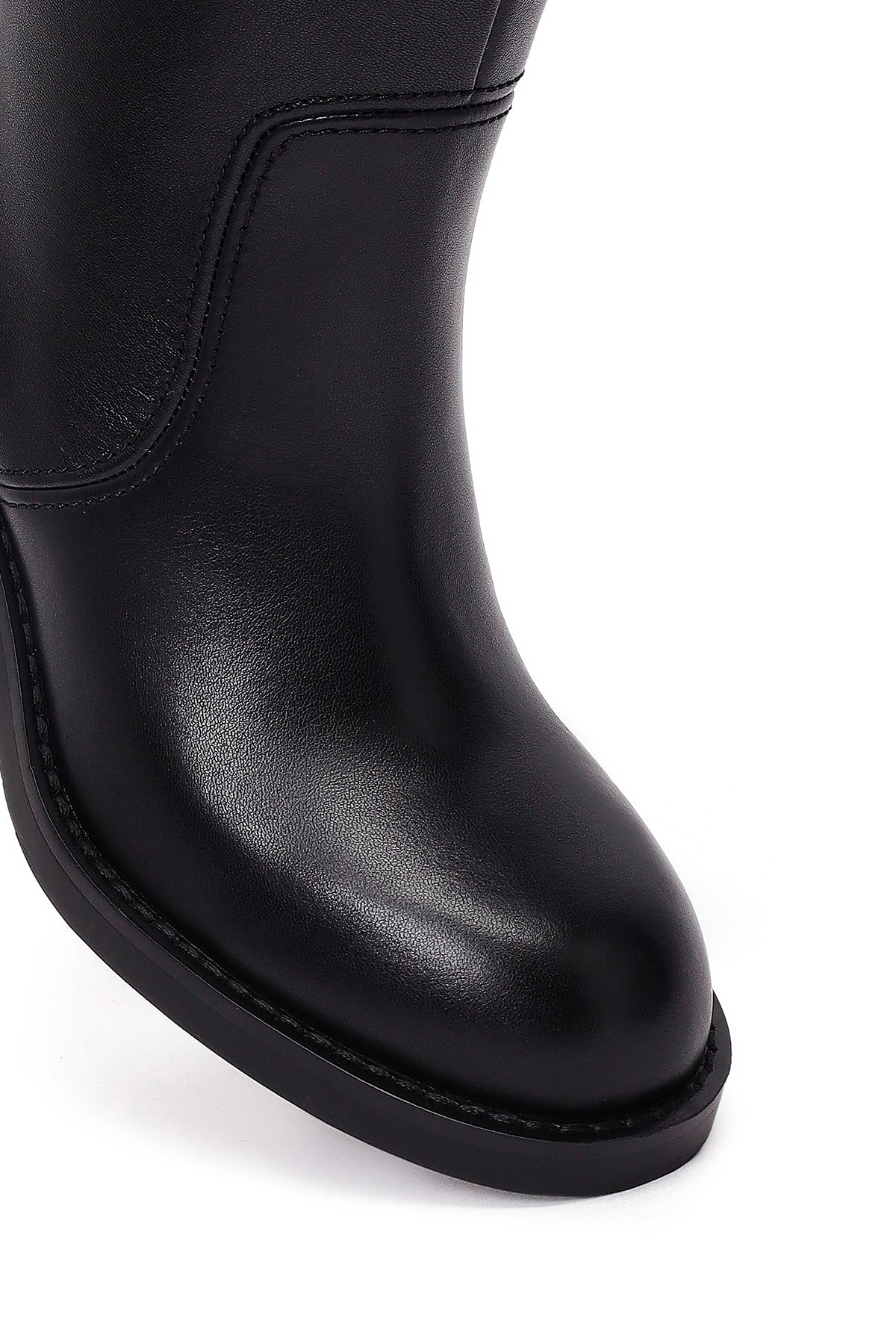 Kadın Siyah Kalın Topuklu Deri Çizme
