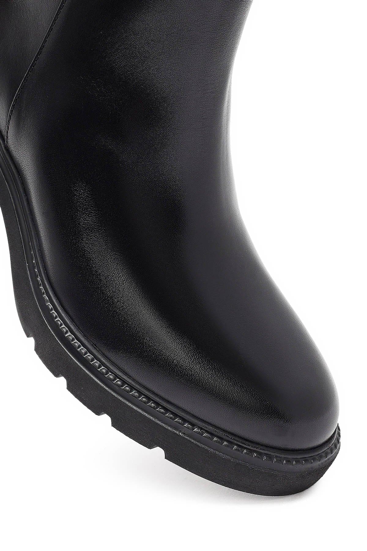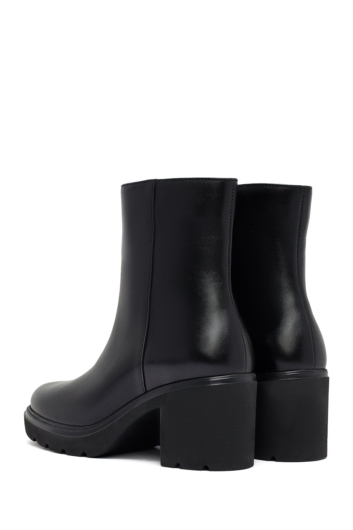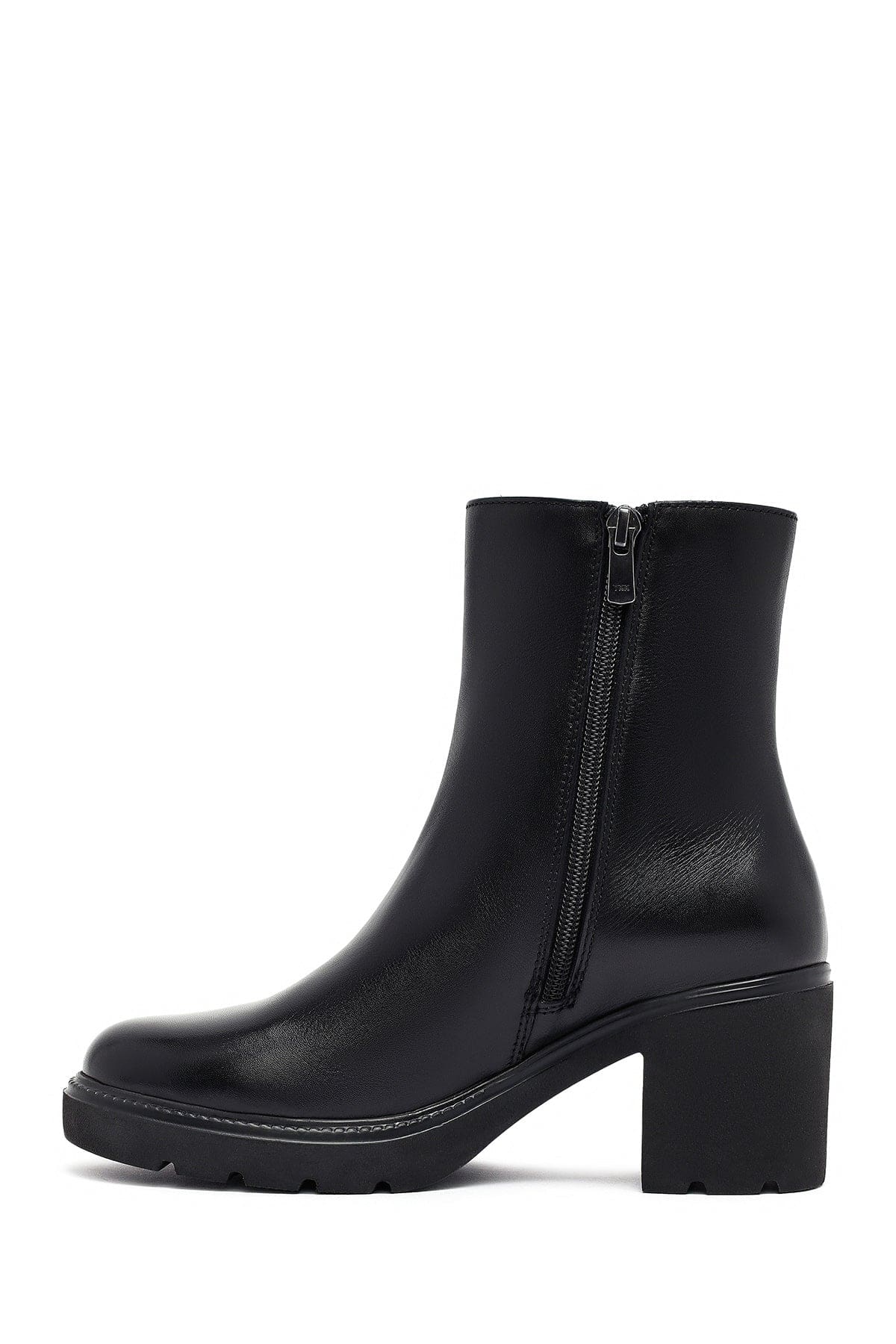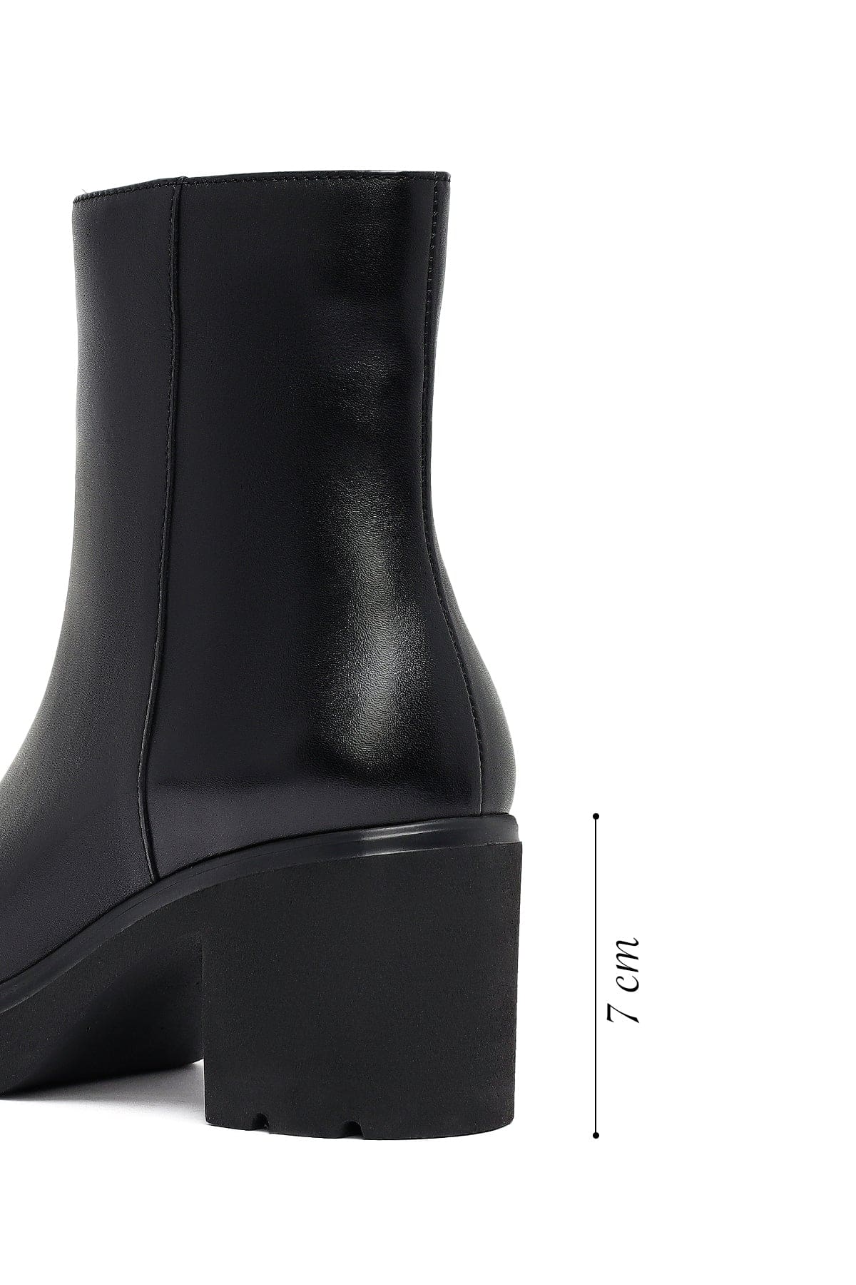 Kadın Siyah Fermuarlı Kalın Topuklu Deri Bot