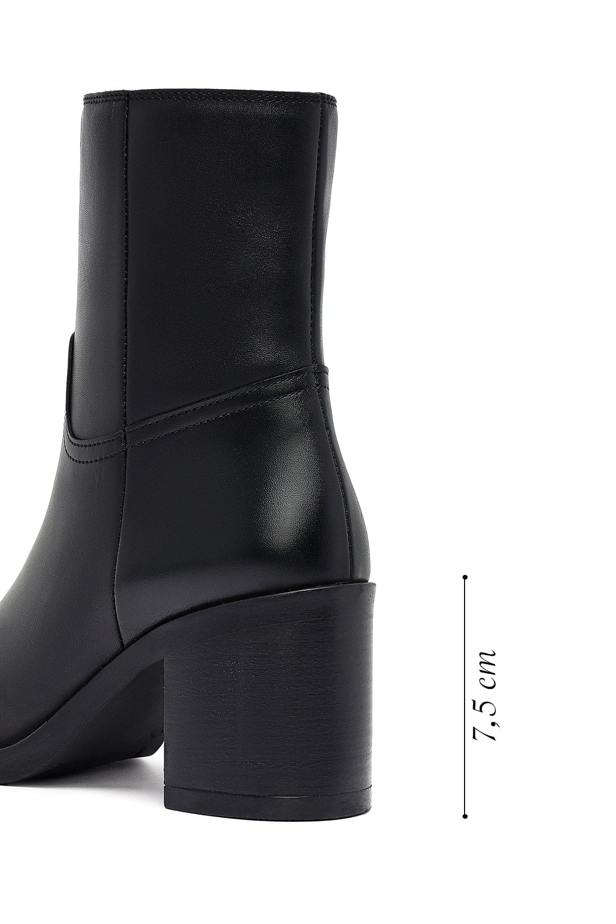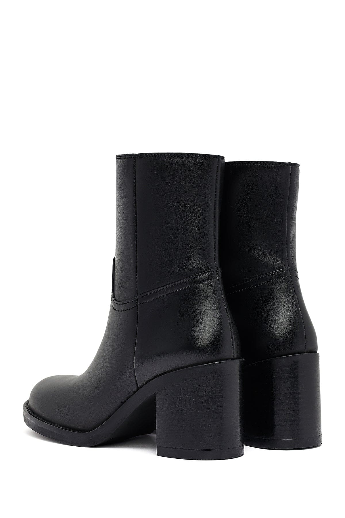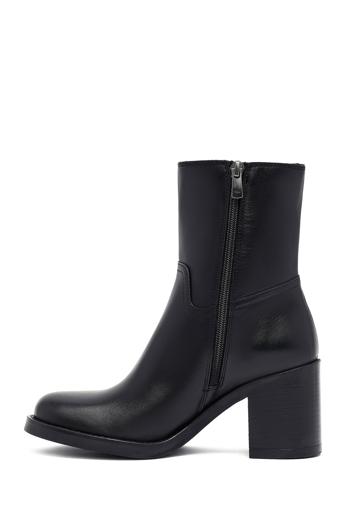 Kadın Siyah Fermuarlı Kalın Topuklu Deri Bot