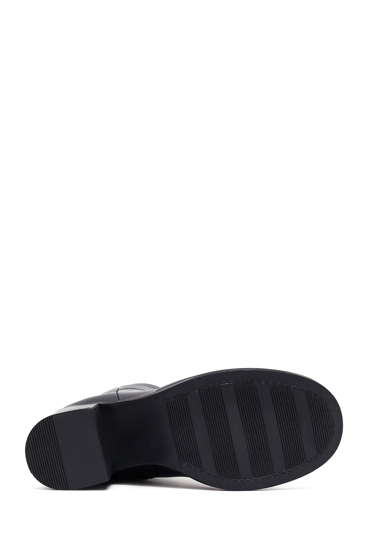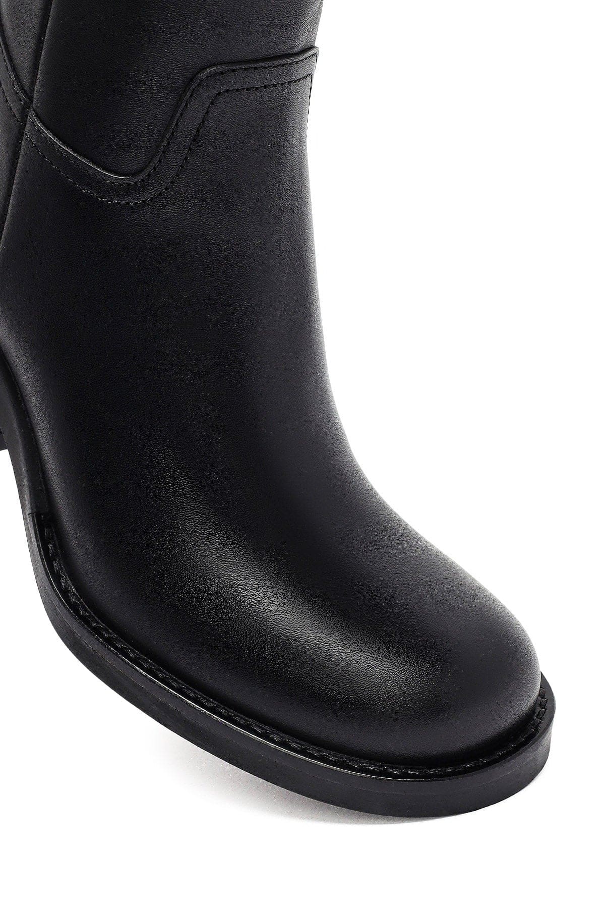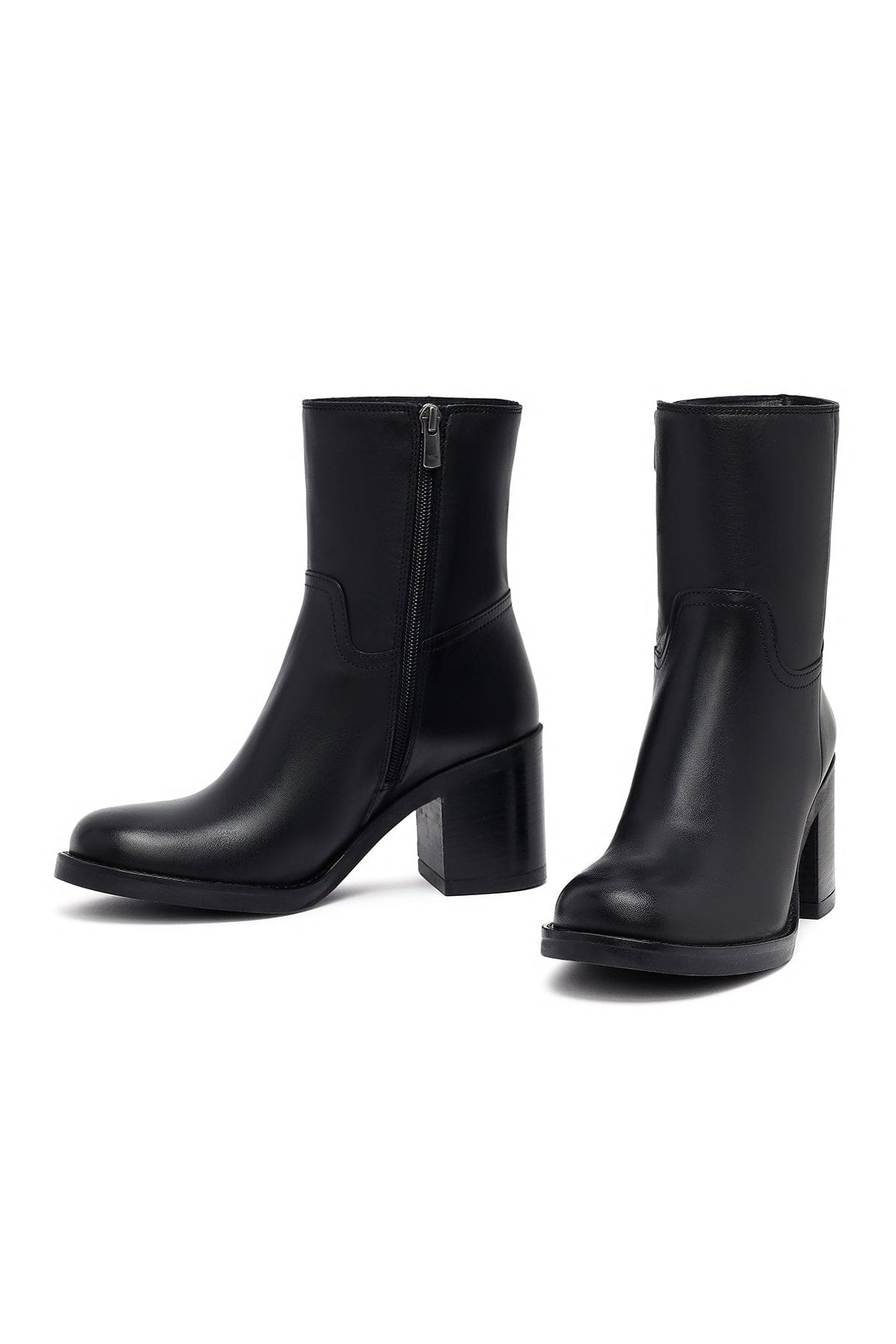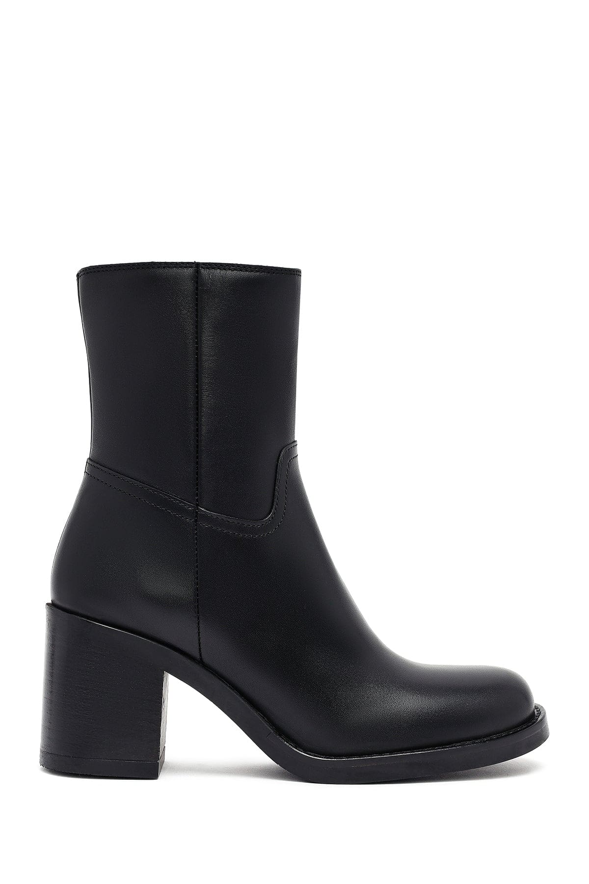 Kadın Siyah Fermuarlı Kalın Topuklu Deri Bot