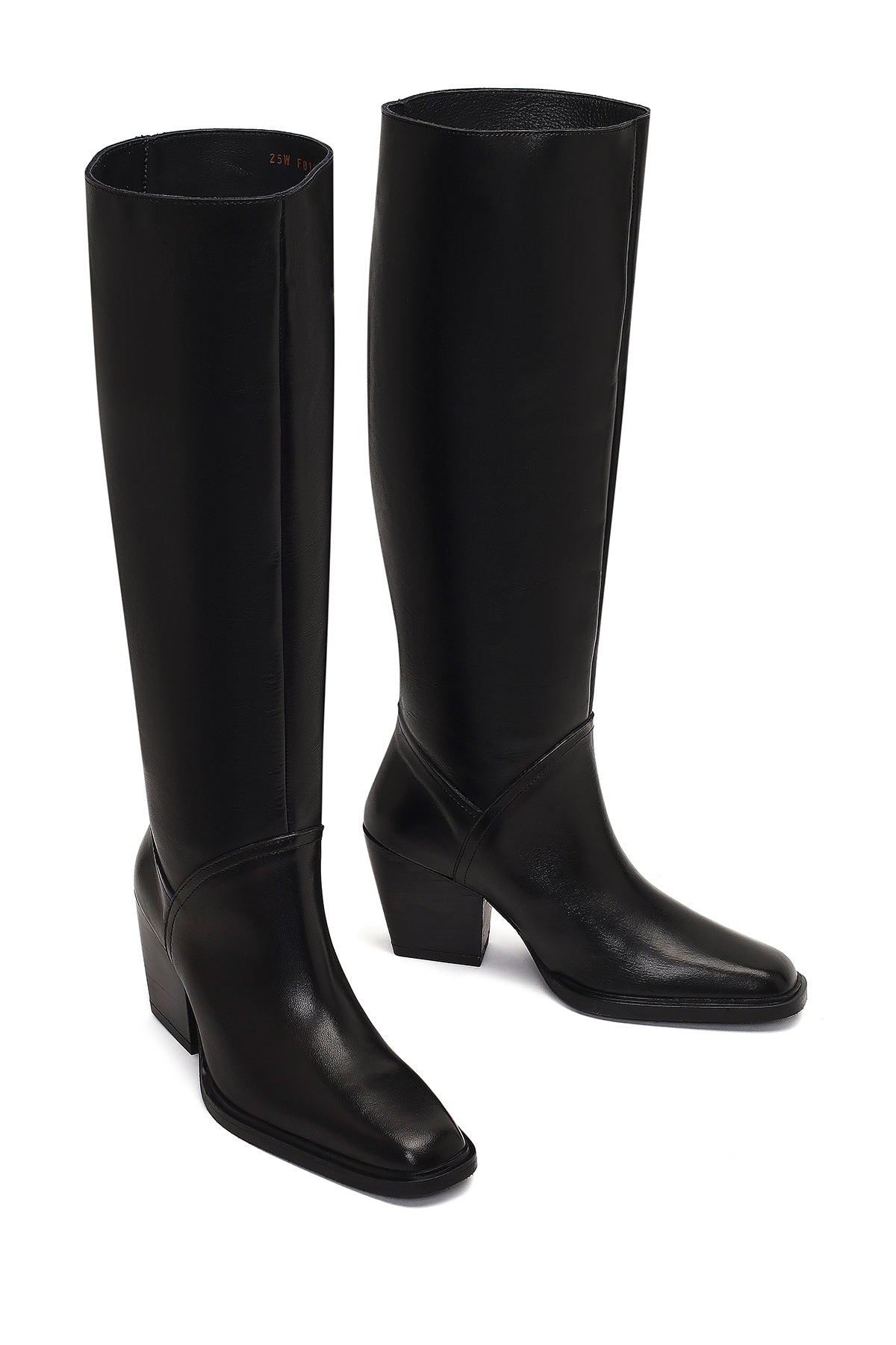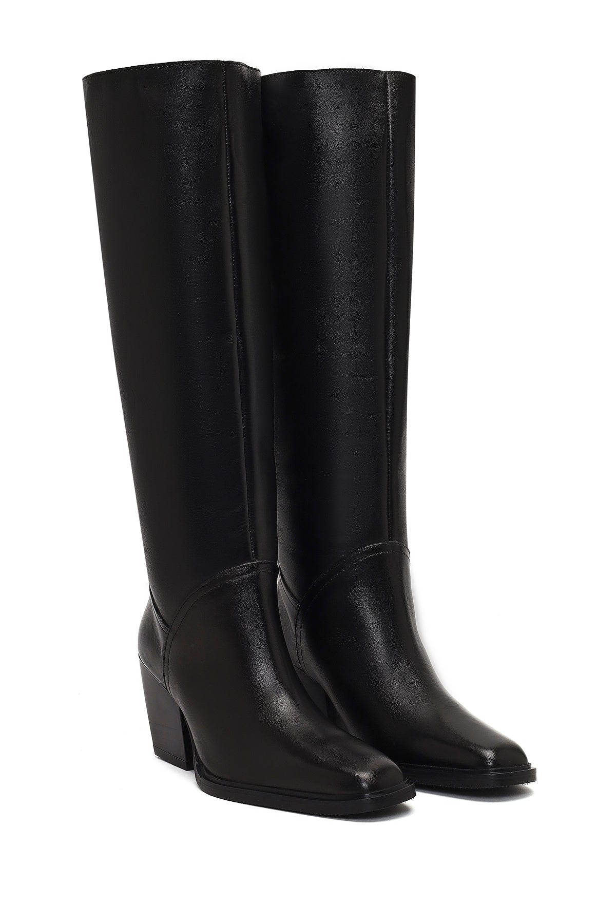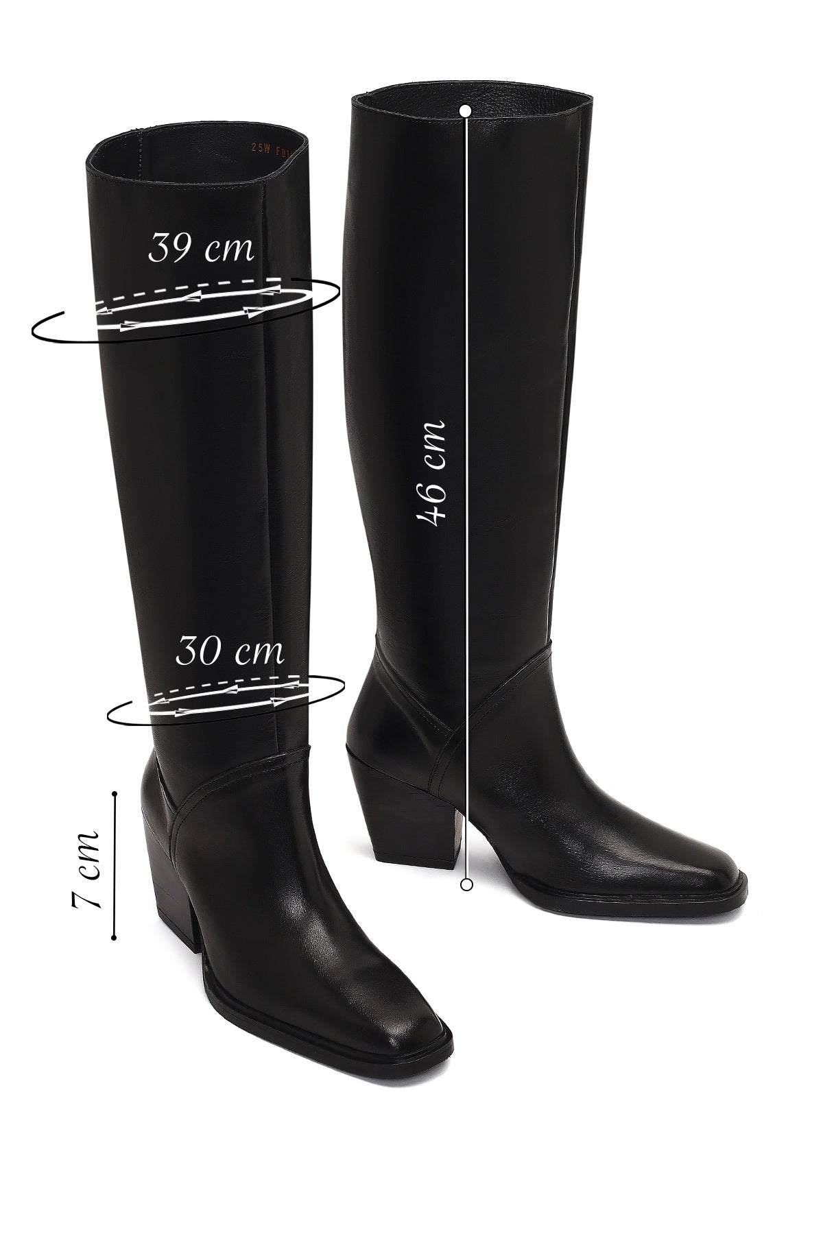 Kadın Siyah Kalın Topuklu Deri Çizme