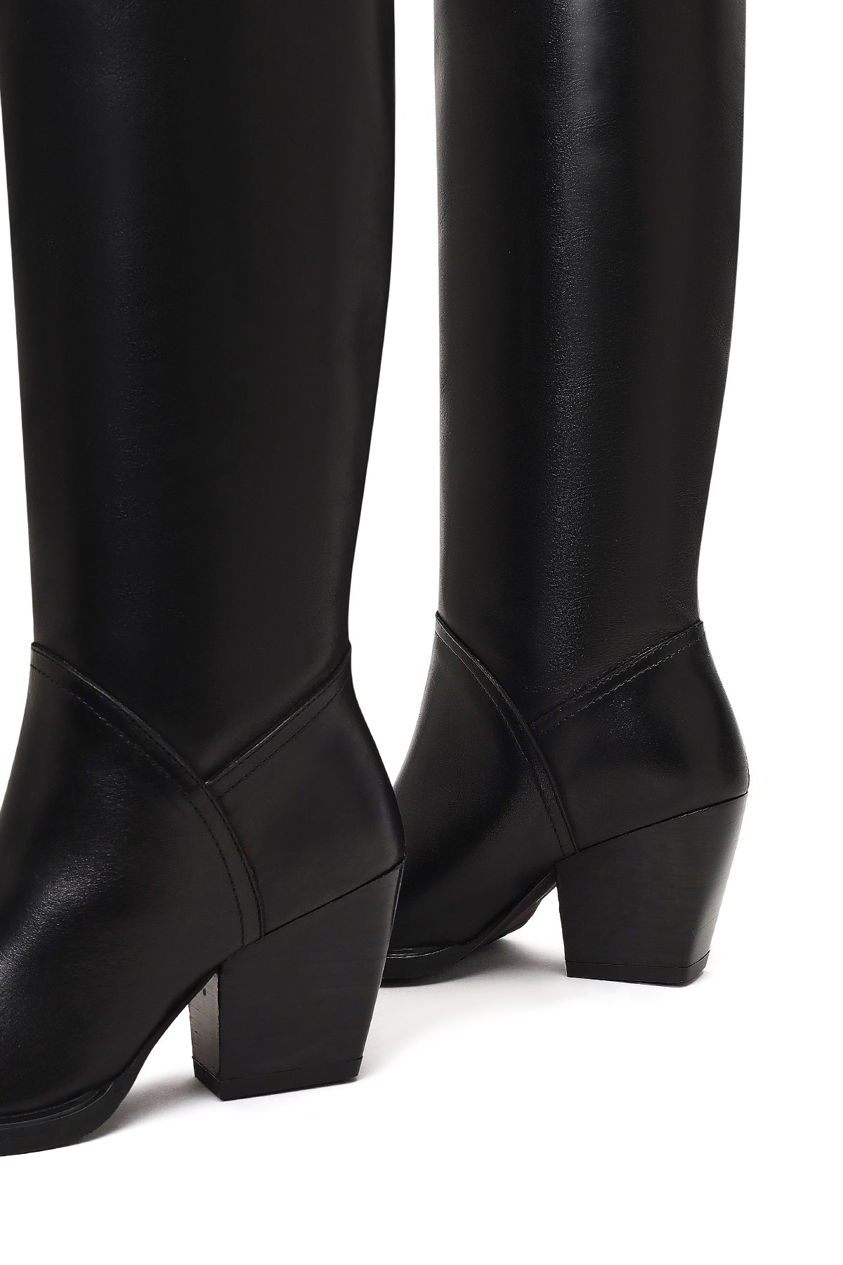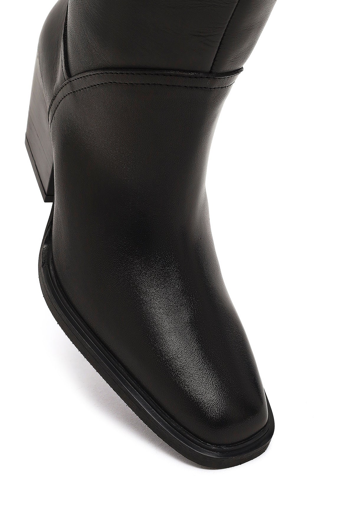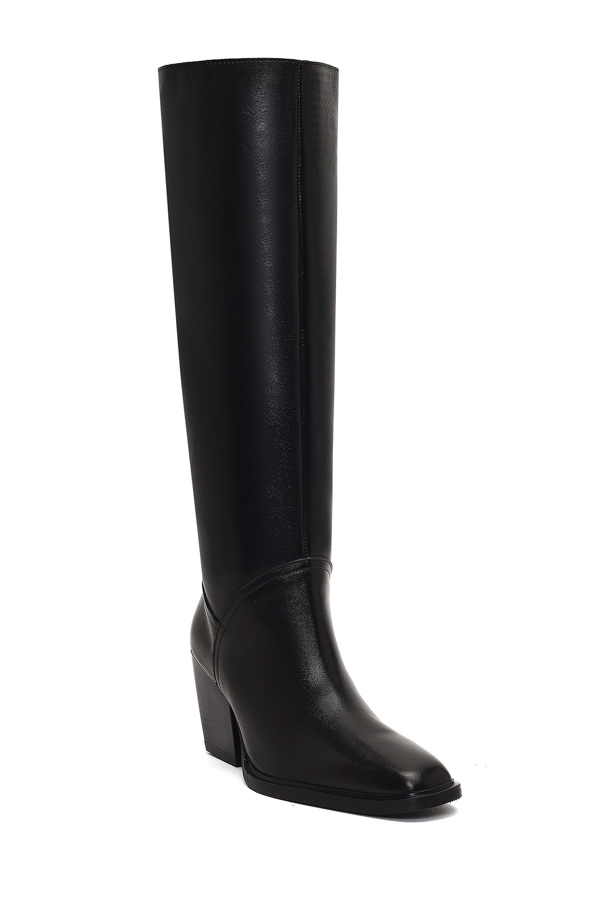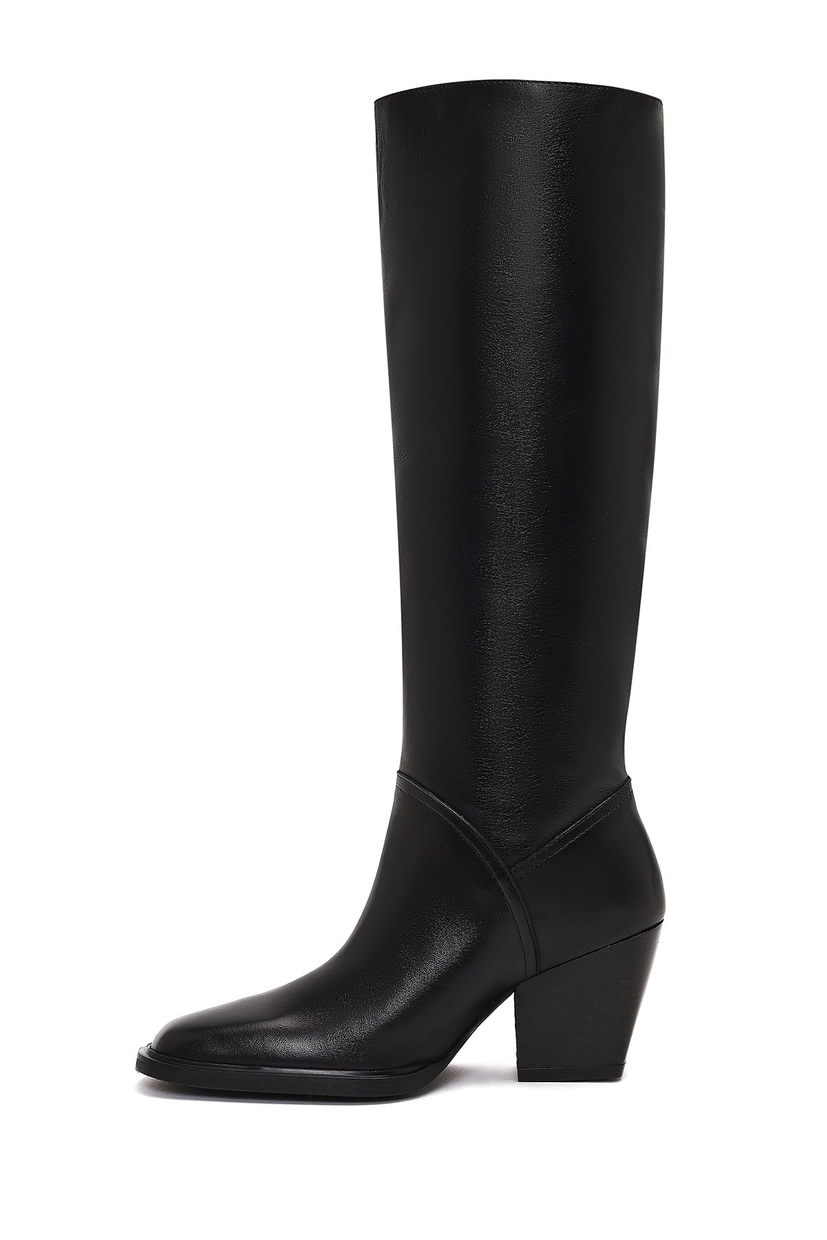 Kadın Siyah Kalın Topuklu Deri Çizme