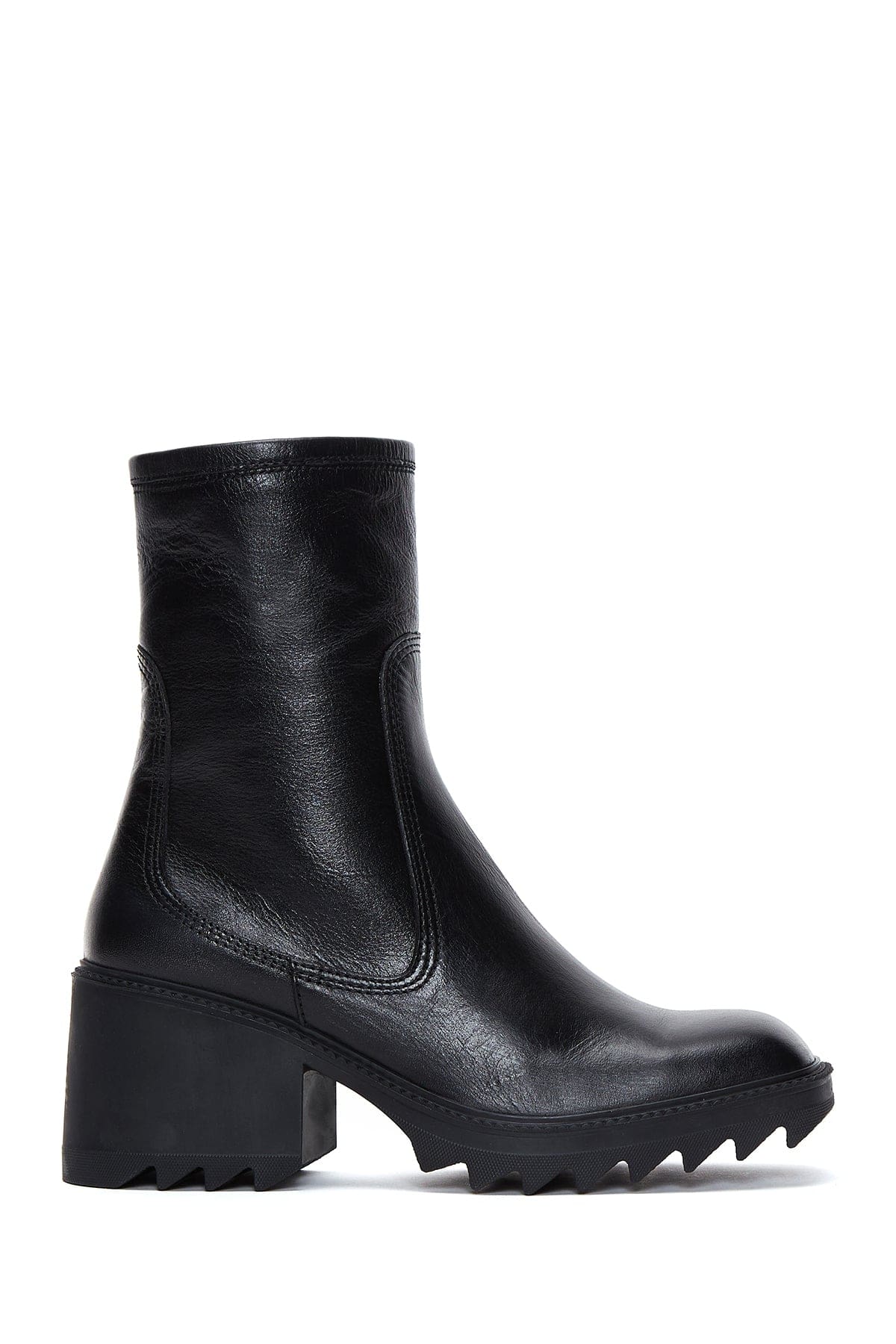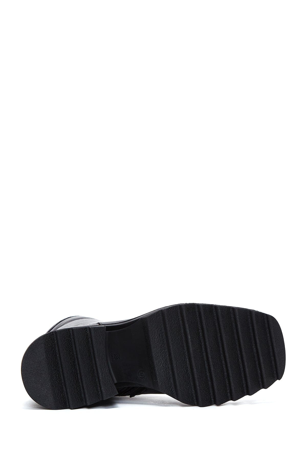Kadın Siyah Fermuarlı Kalın Topuklu Deri Bot