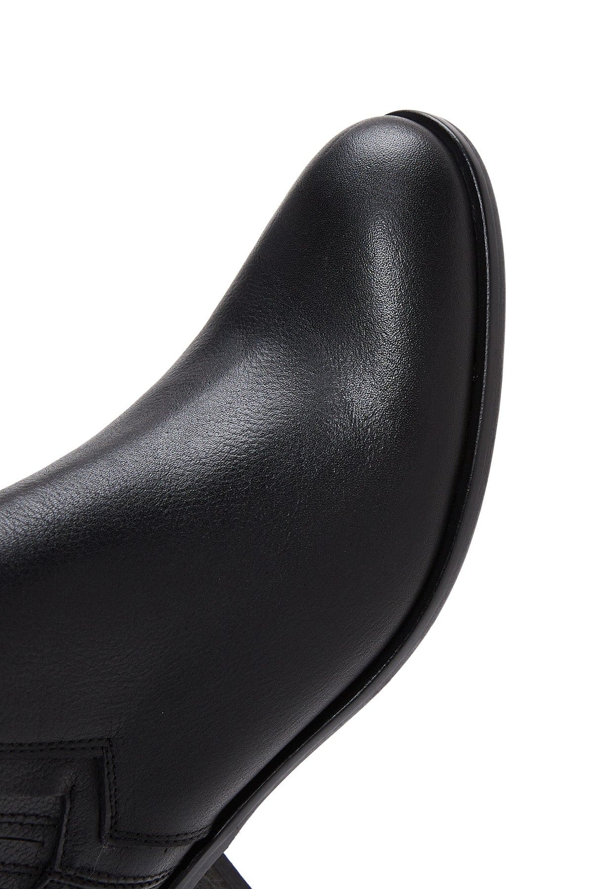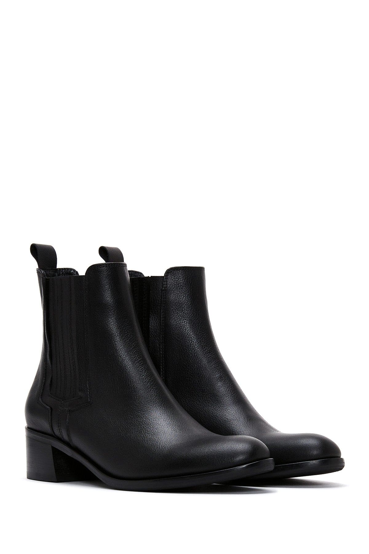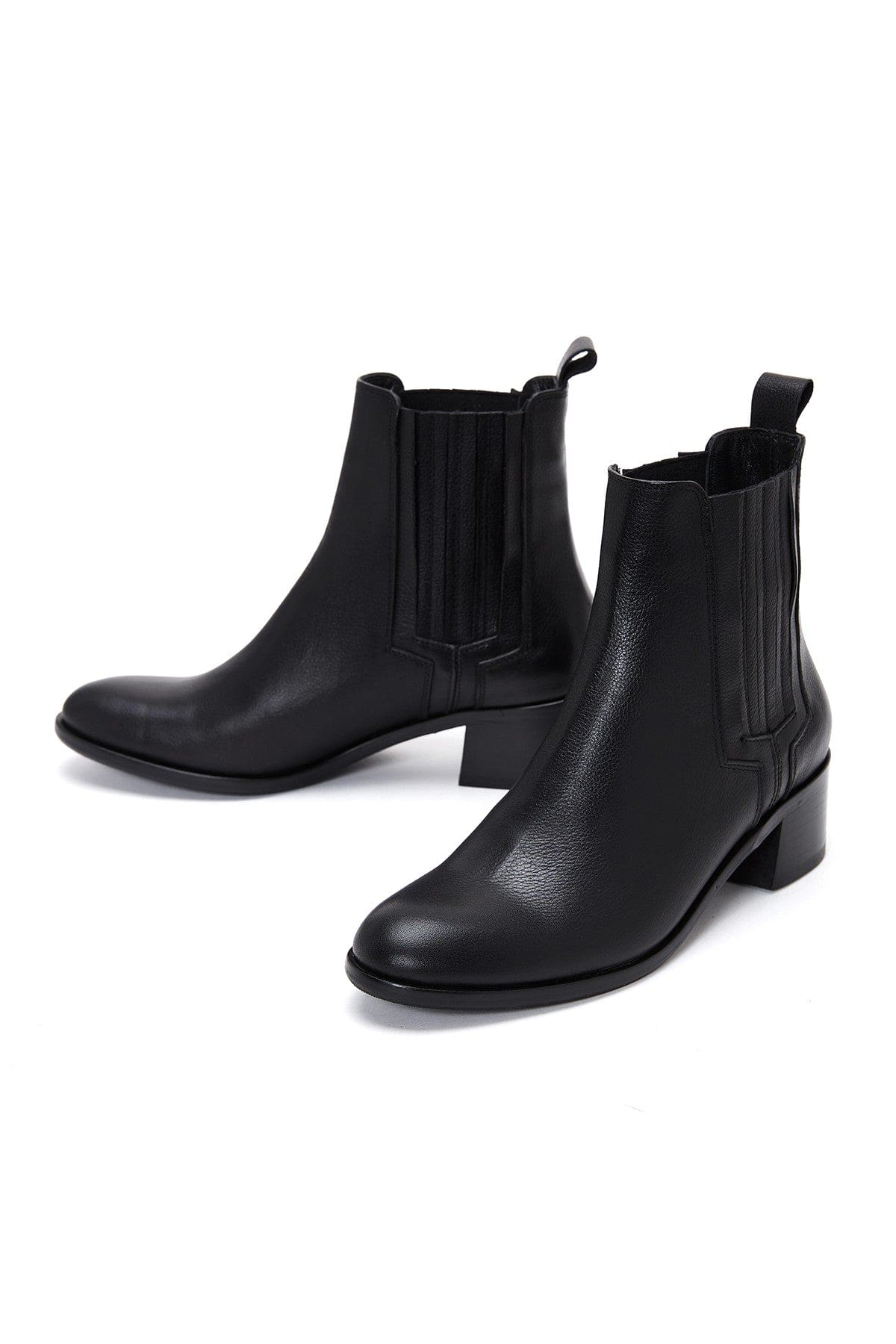 Kadın Siyah Kalın Topuklu Deri Chelsea Bot