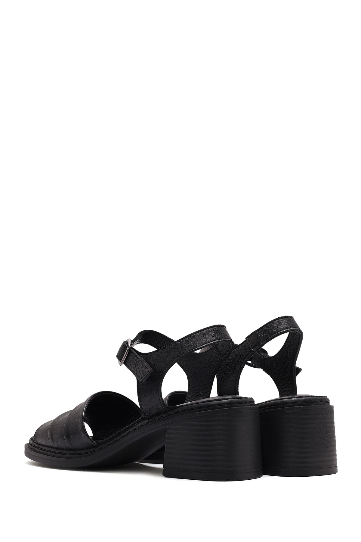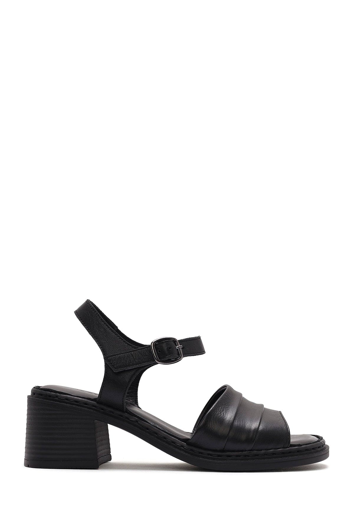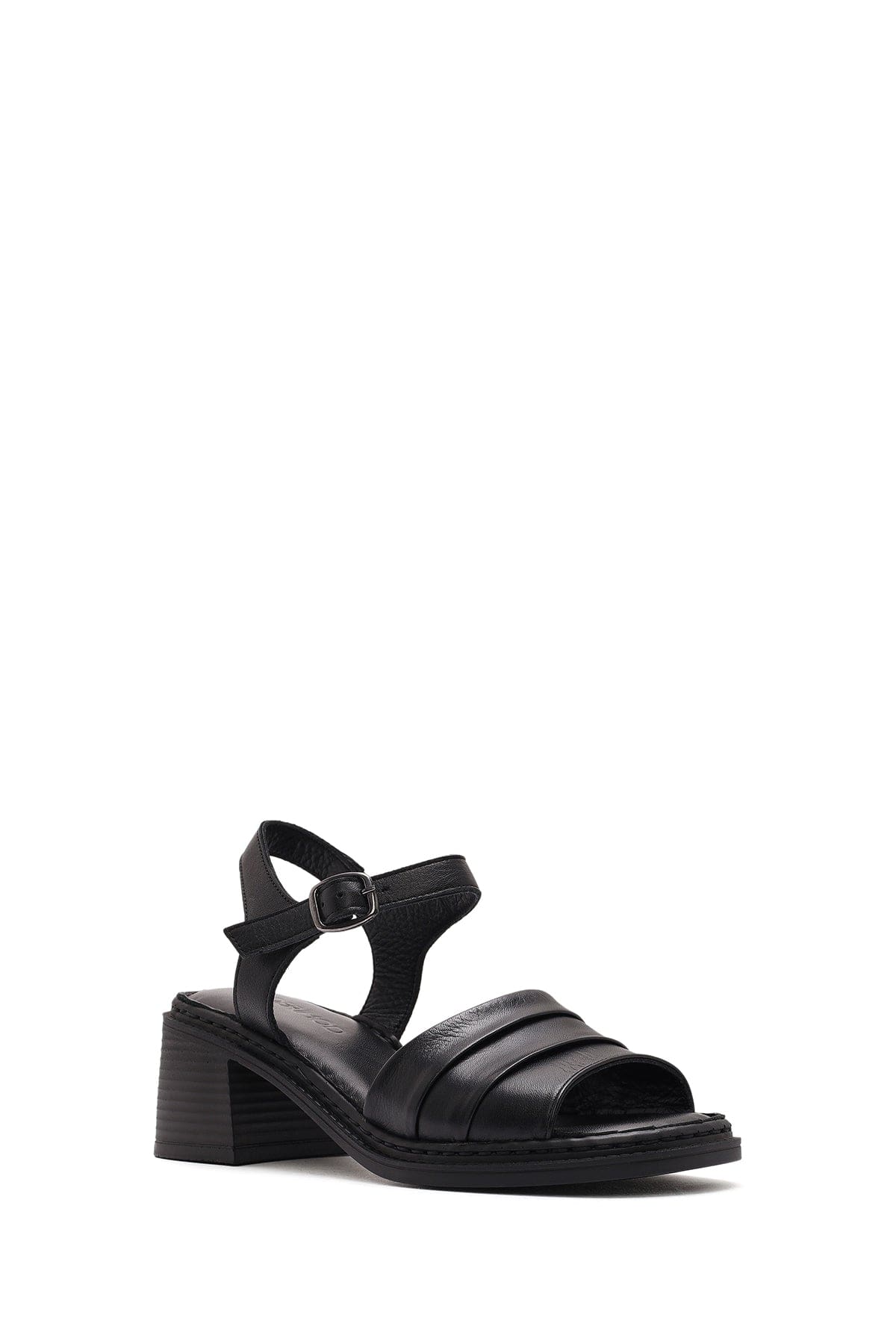 Kadın Siyah Bilekten Bağlamalı Kalın Topuklu Deri Sandalet
