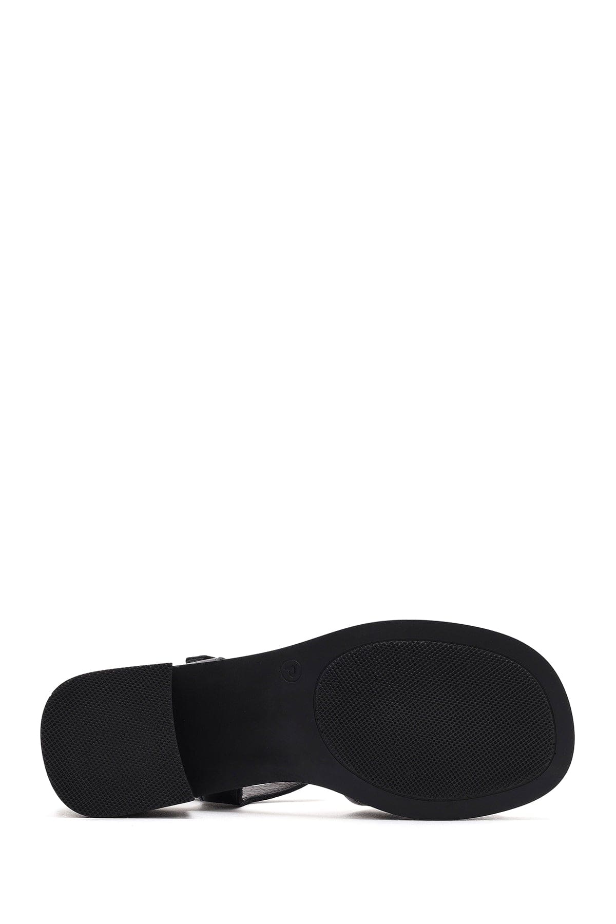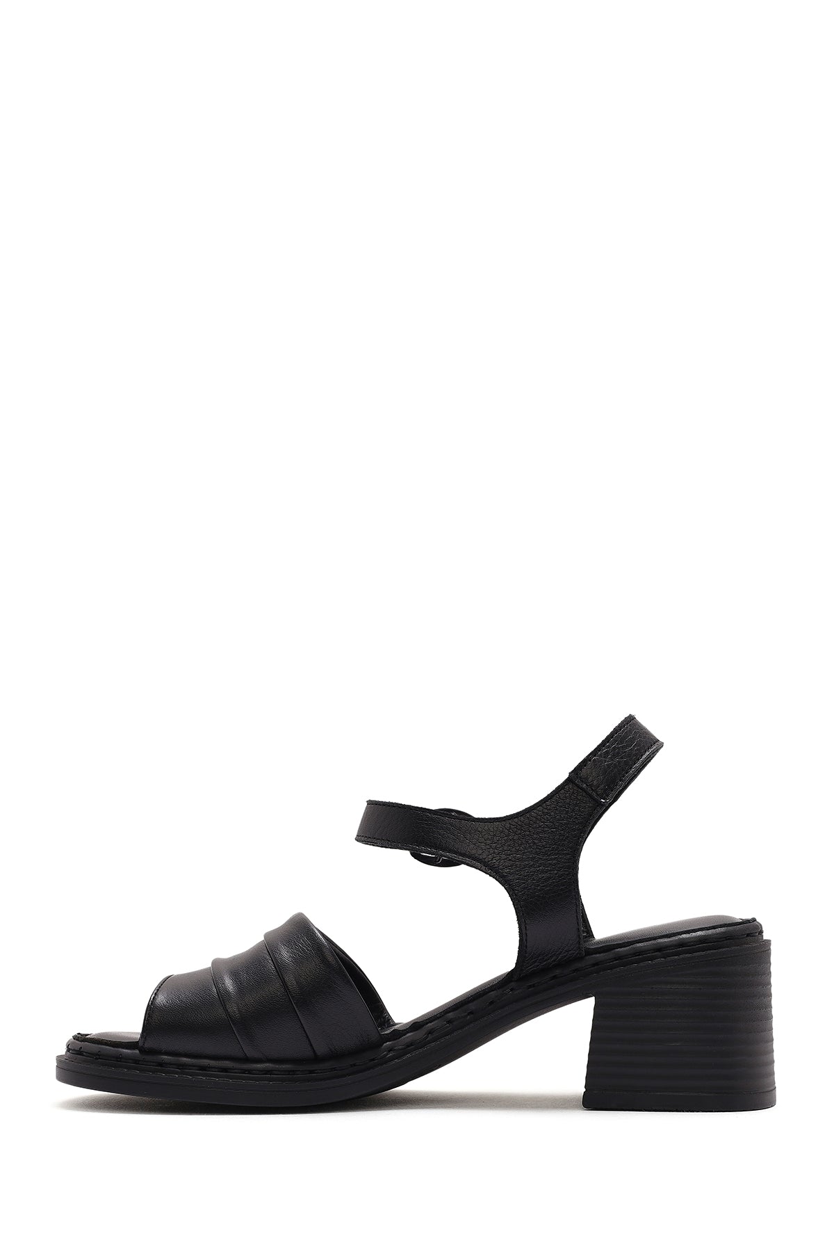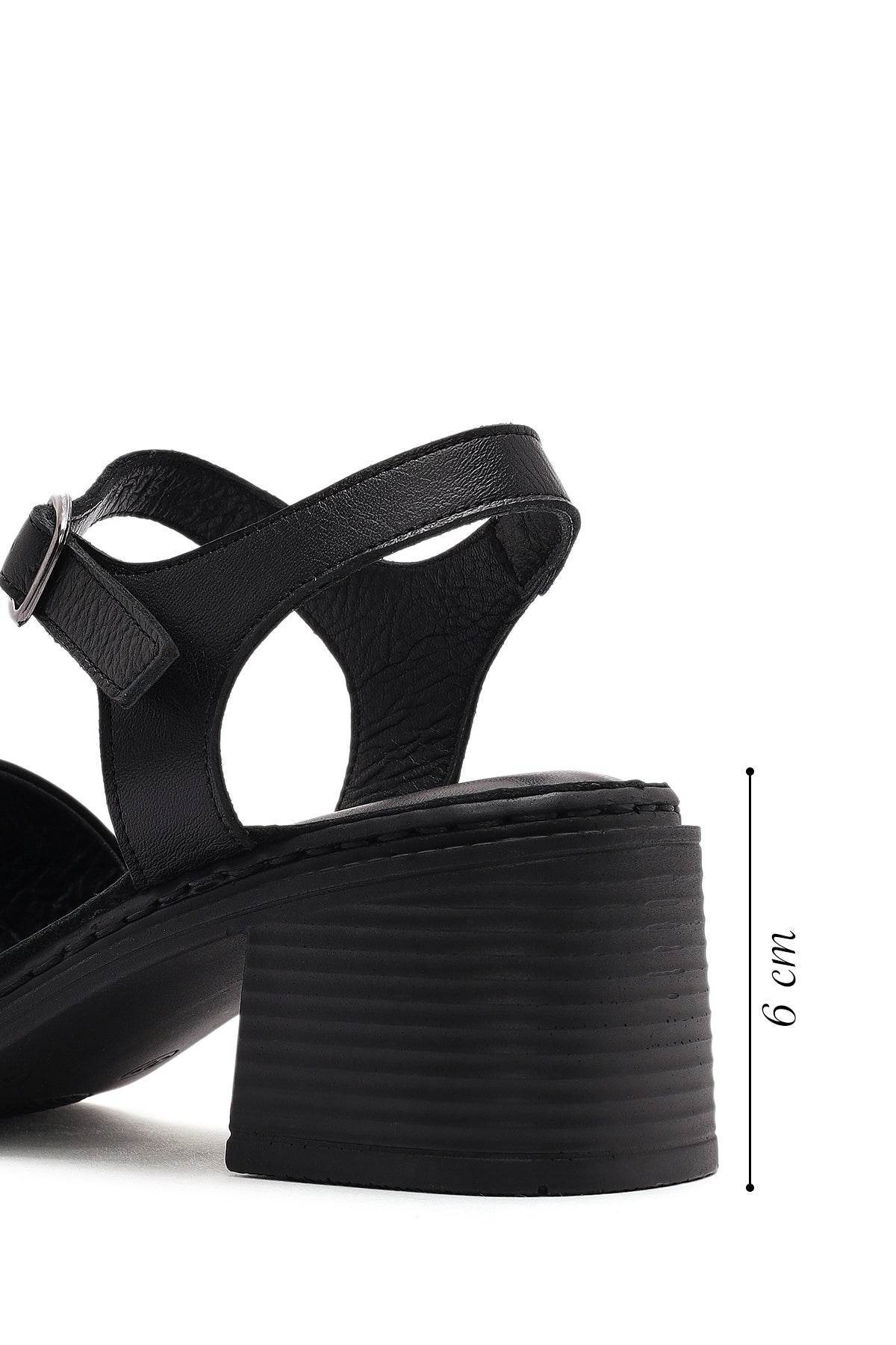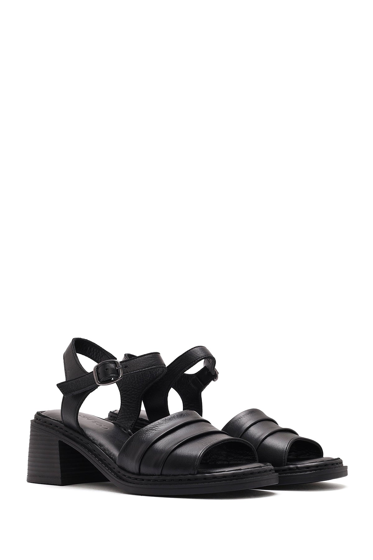 Kadın Siyah Bilekten Bağlamalı Kalın Topuklu Deri Sandalet