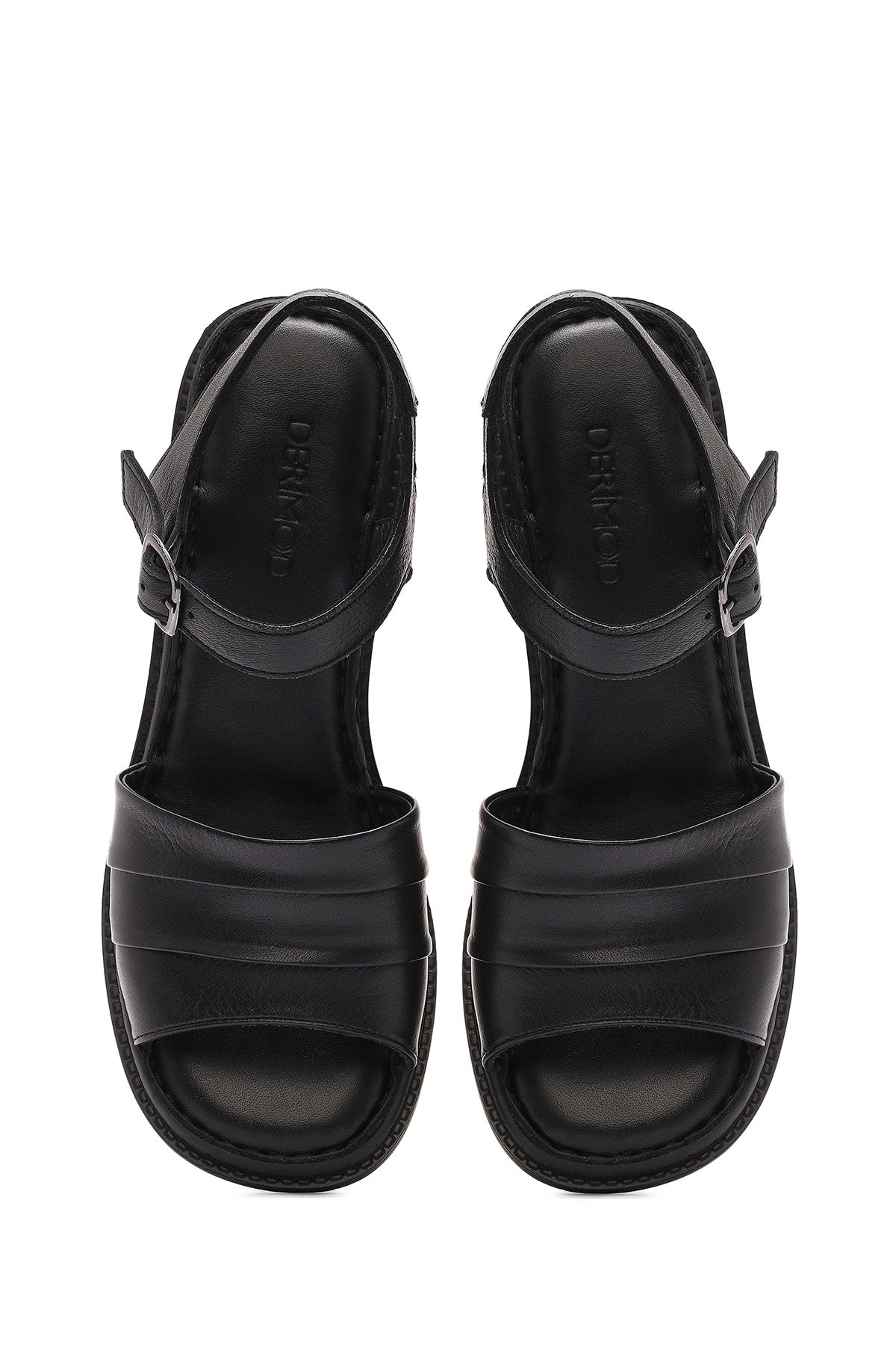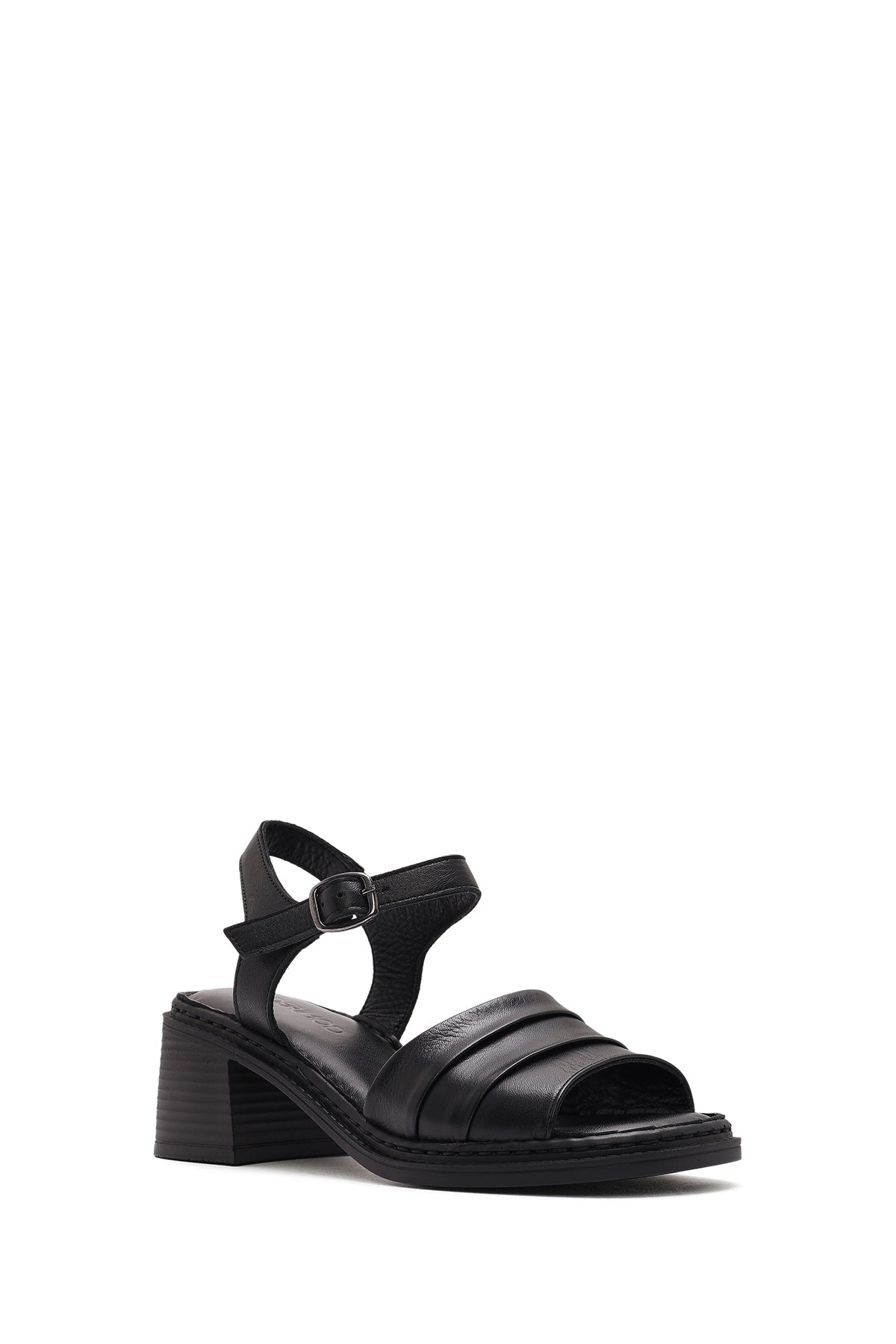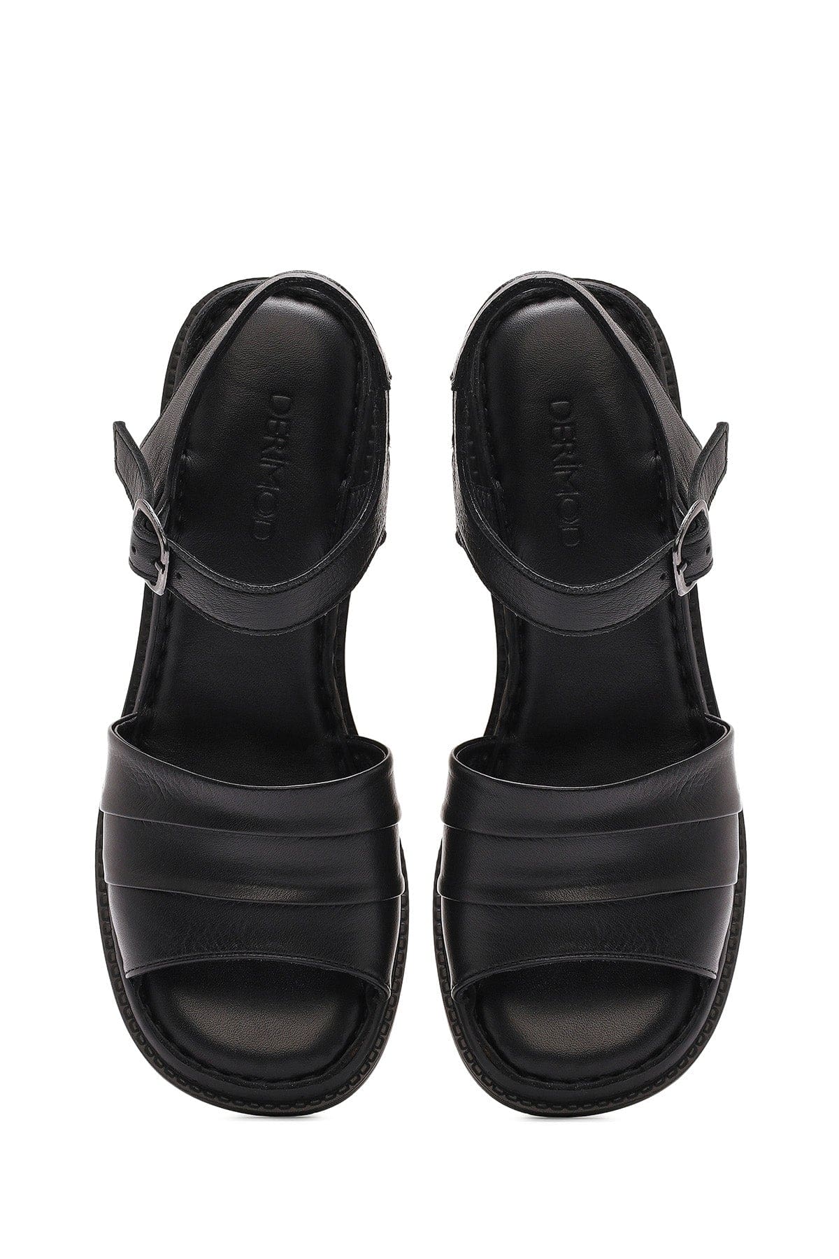 صندل زنانه مشکی چرم پاشنهضخیم بنددار دری مد