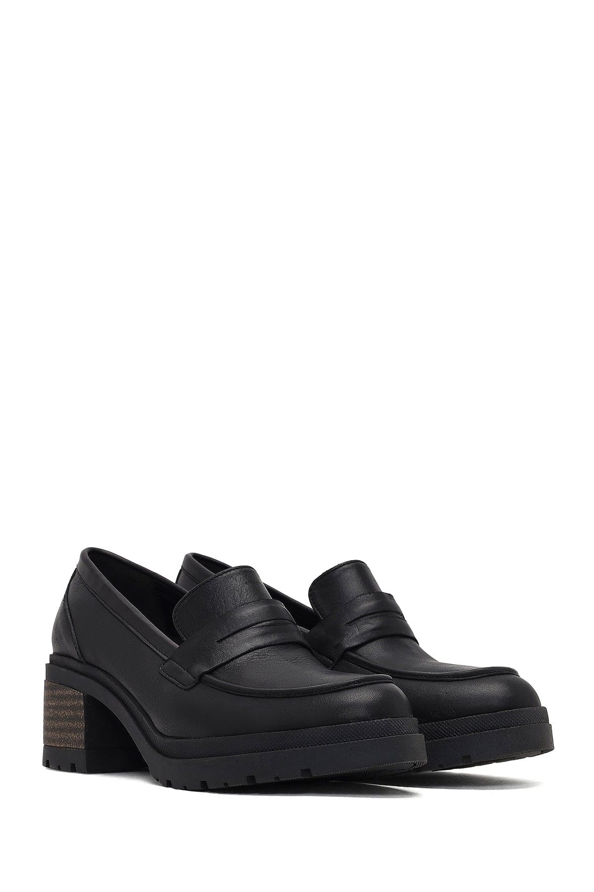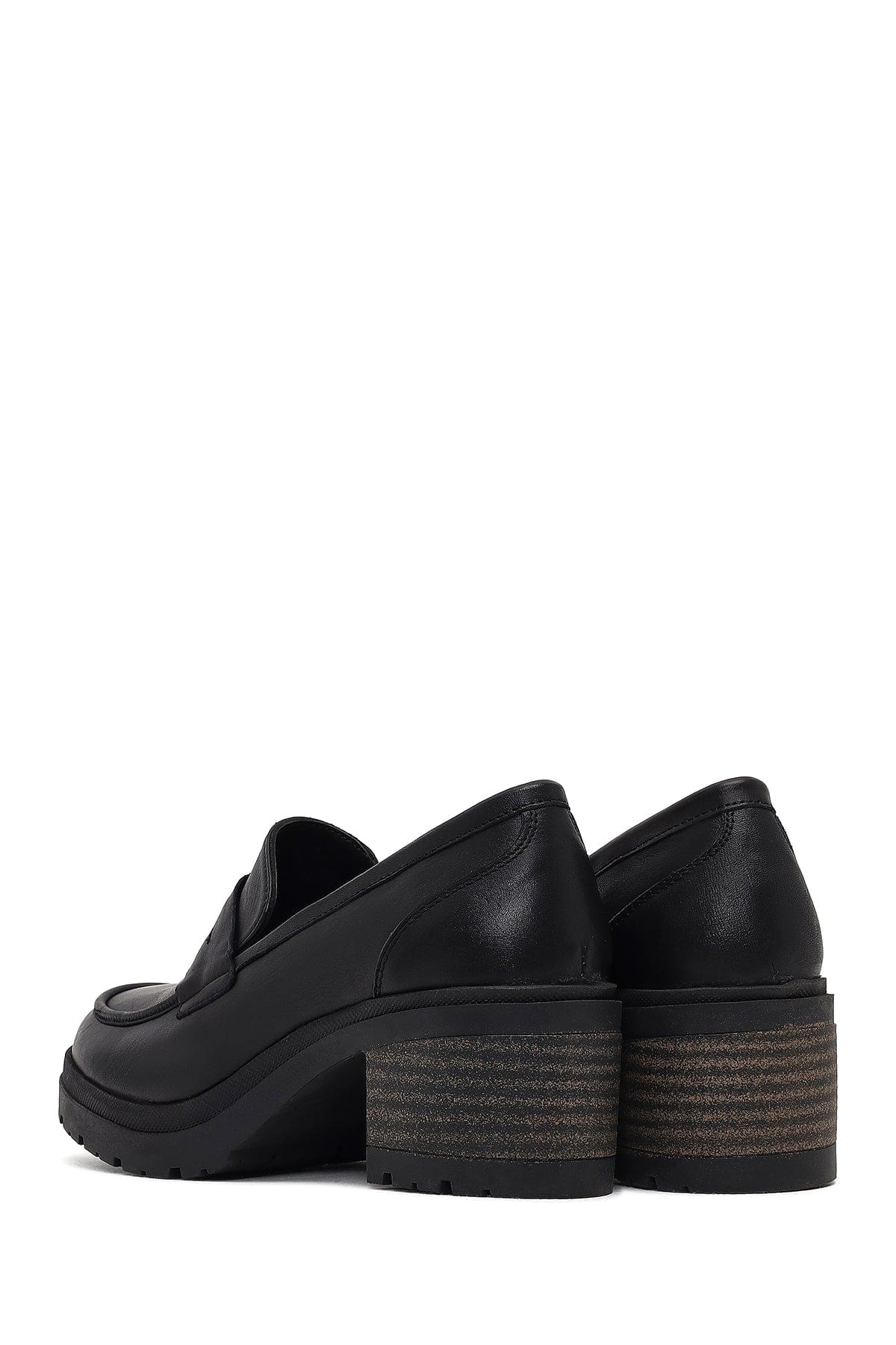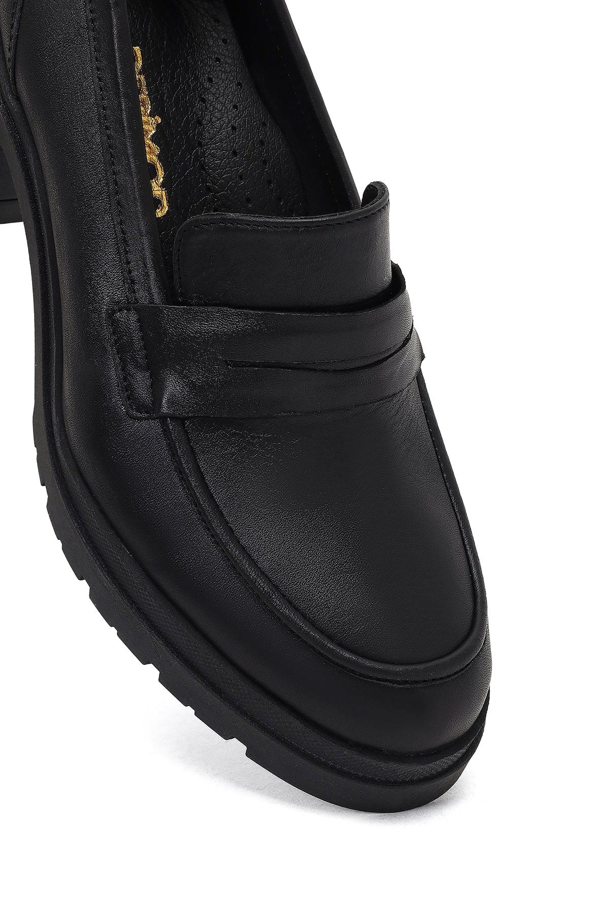 Kadın Siyah Kalın Topuklu Deri Maskülen Loafer