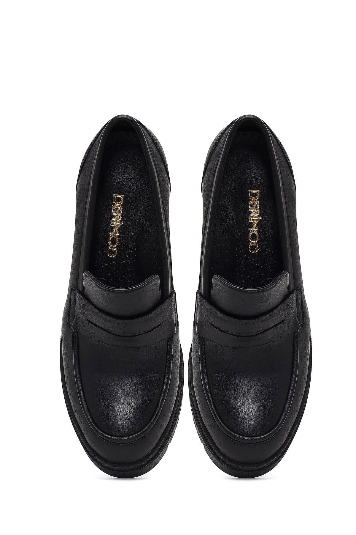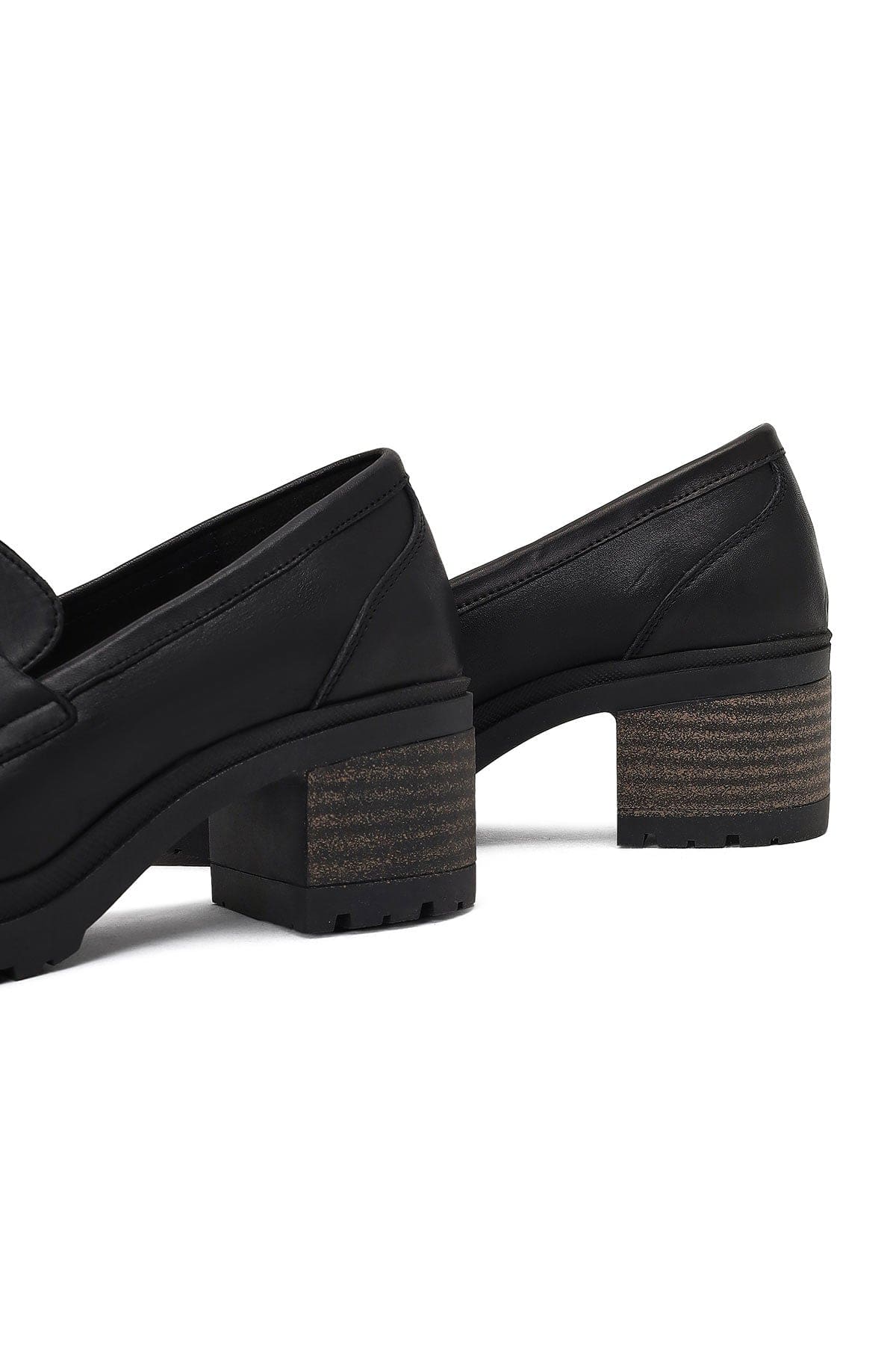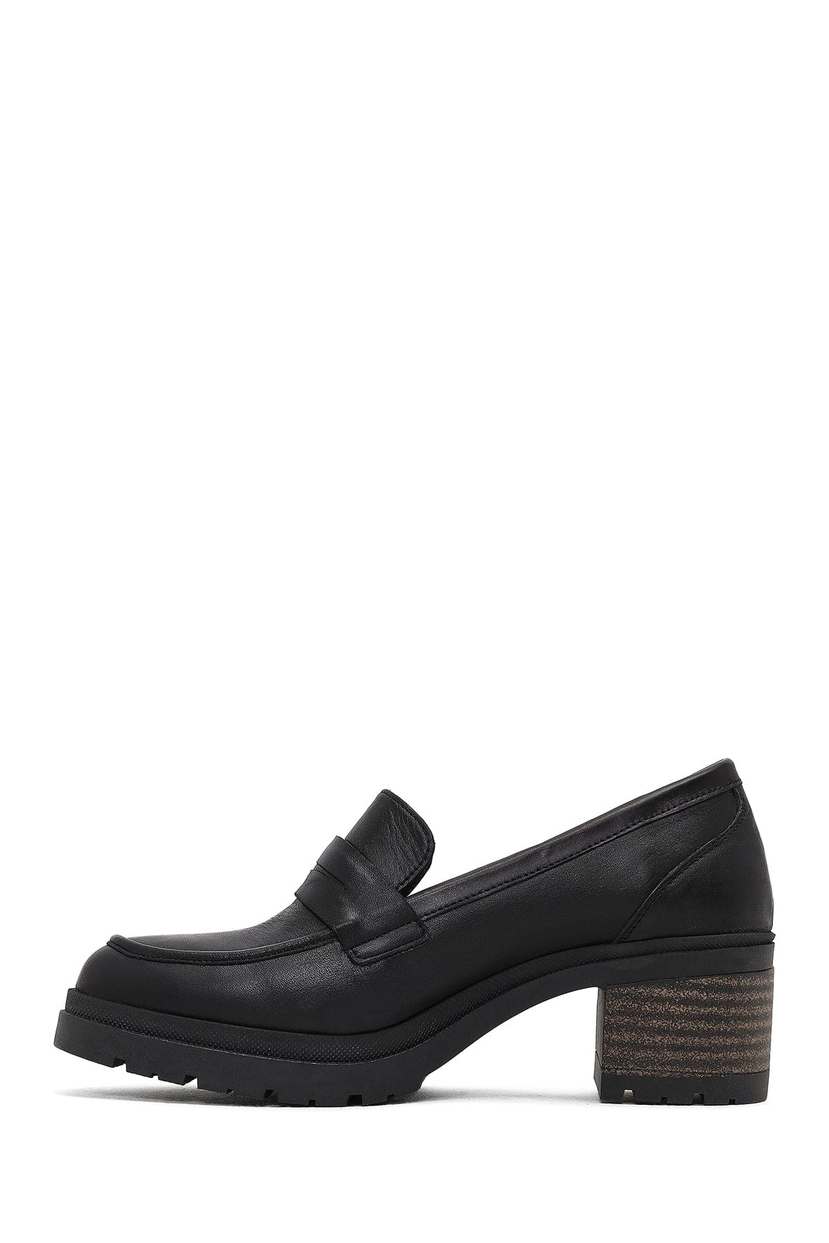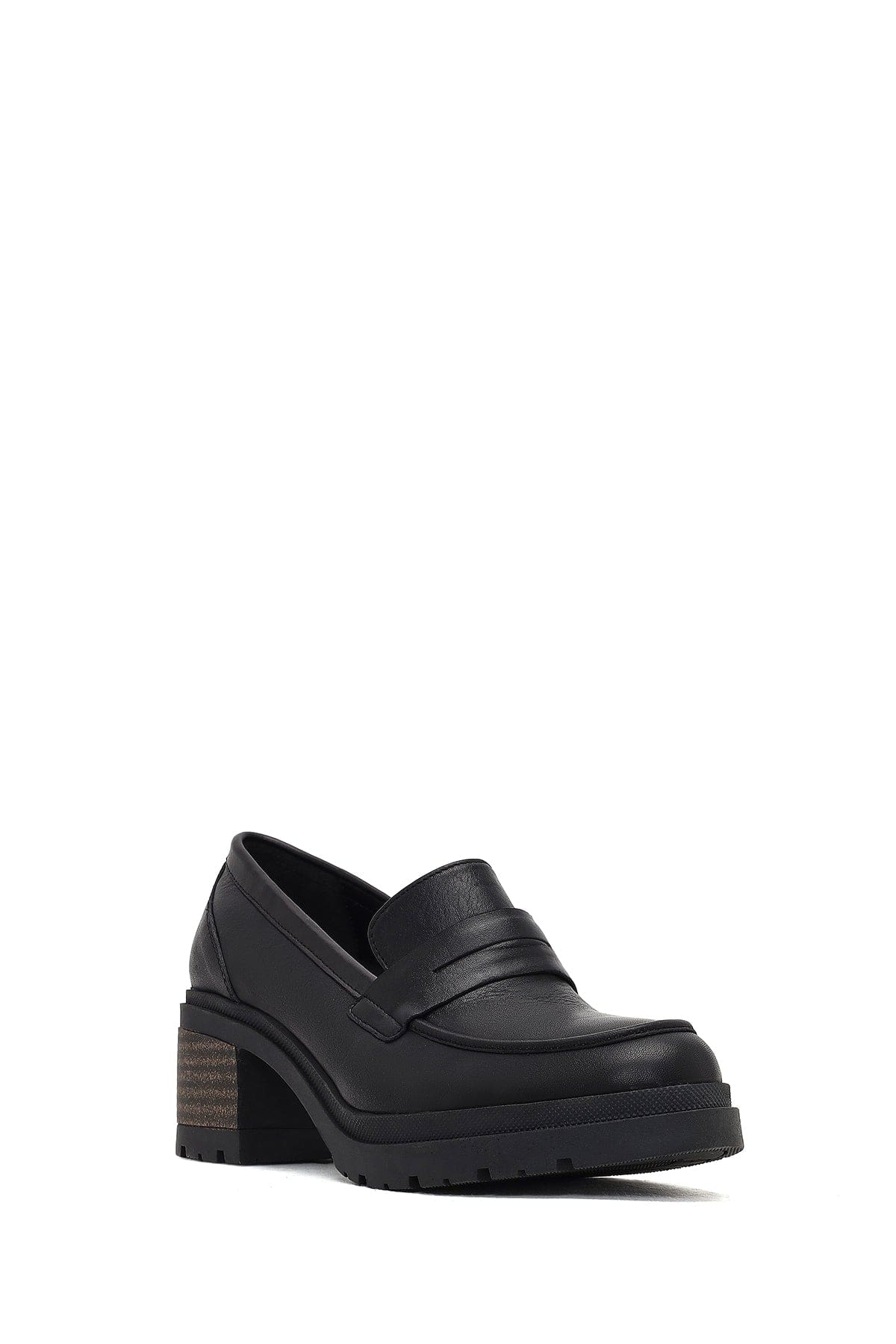 Kadın Siyah Kalın Topuklu Deri Maskülen Loafer